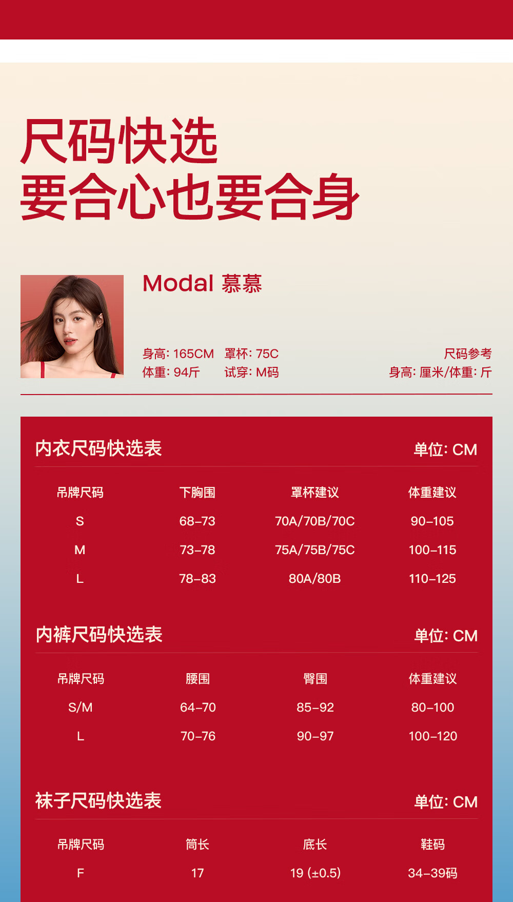 China (cm) 160-165/84-86 165-170 / 88-90 167-172 / 92-96 168-173 / 98-102 170-176 / 106-110