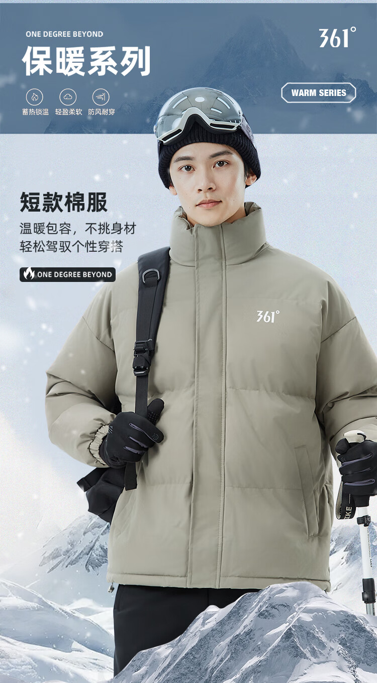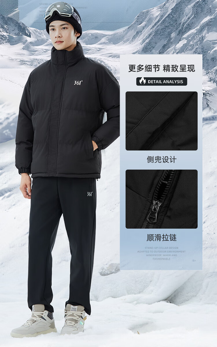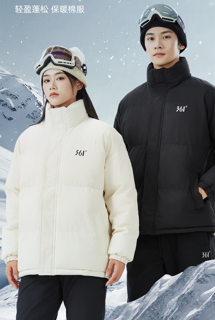 361 Men's and Women's Warm Thickened Casual Winter Jacket Short Cotton Jacket 652434739F Super Black M