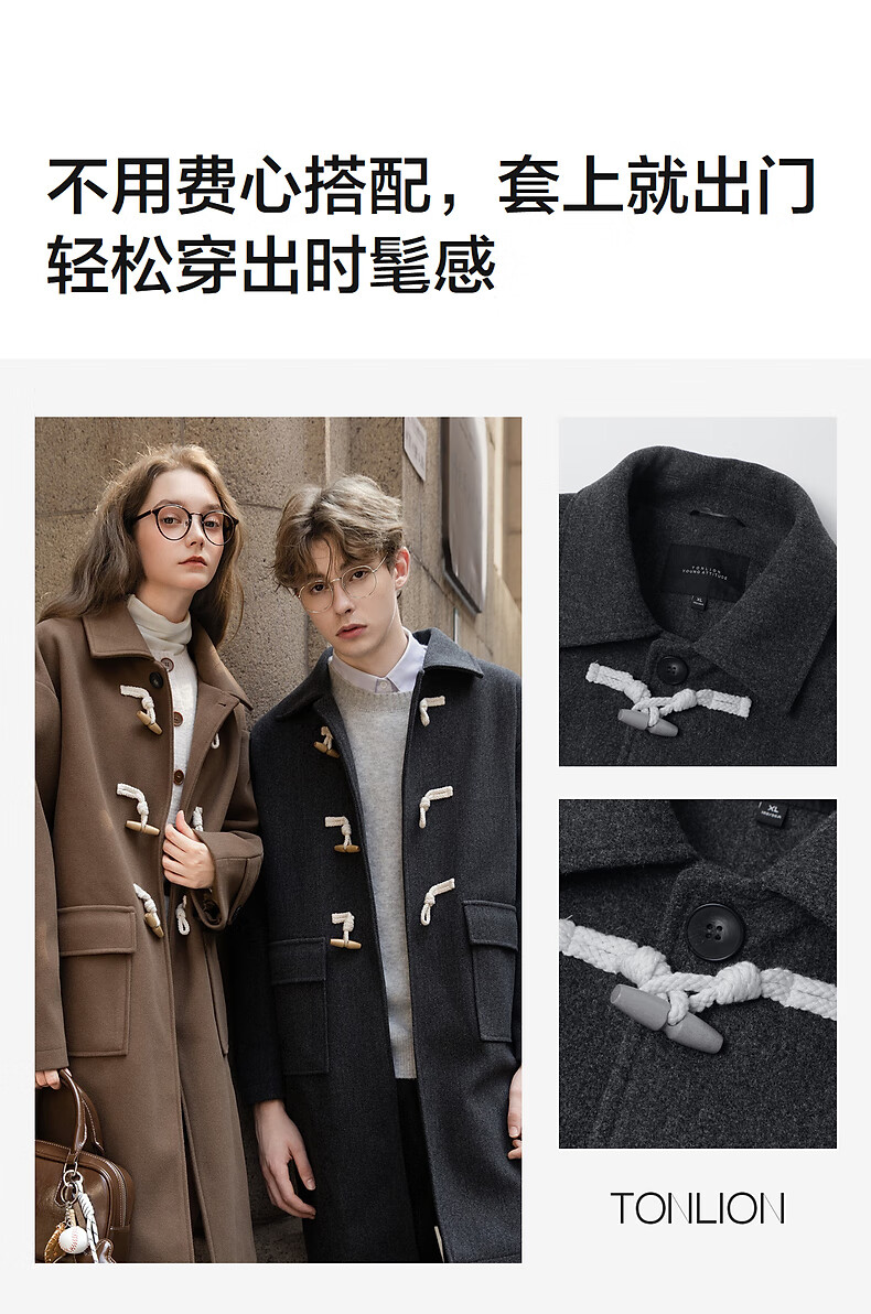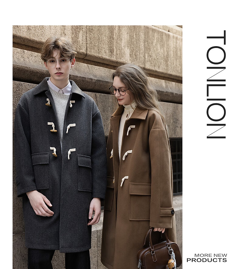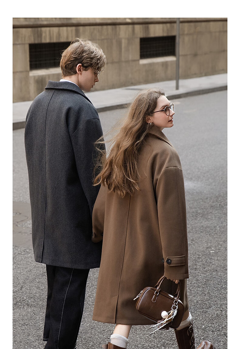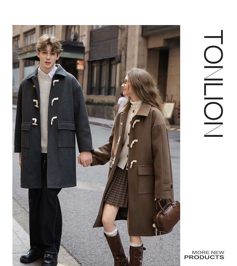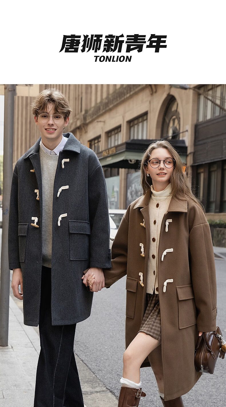 TonLion 2025 winter couple's same size lapel mid-length woolen coat