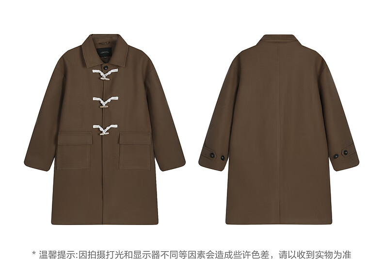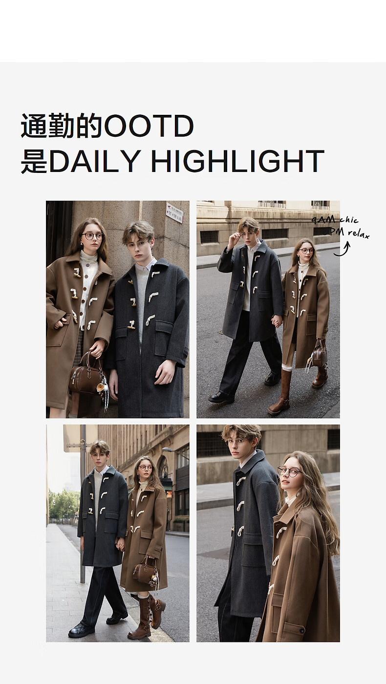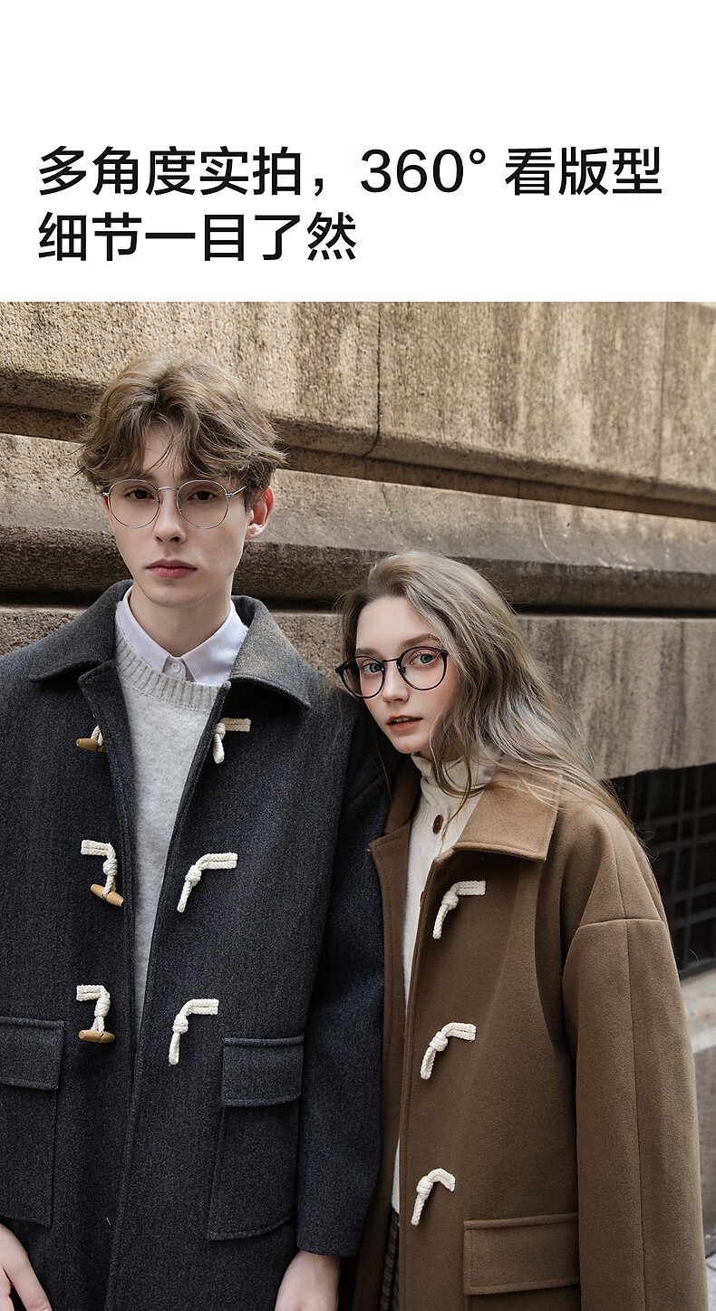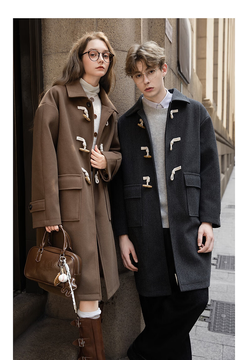 TonLion 2025 winter couple's same size lapel mid-length woolen coat