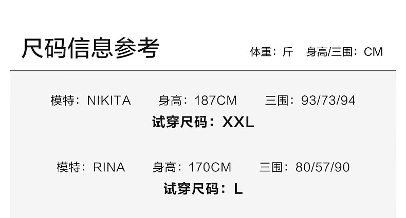 China (cm) 160-165/84-86 165-170 / 88-90 167-172 / 92-96 168-173 / 98-102 170-176 / 106-110