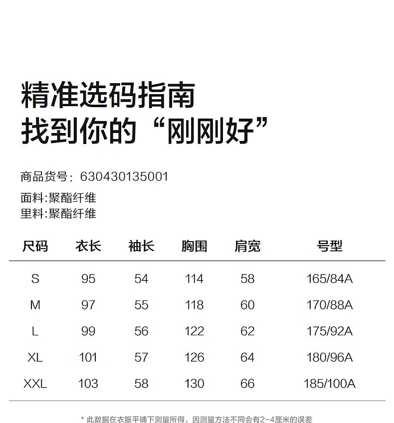 China (cm) 165 / 88-90 170 / 96-98 175 / 108-110 180 / 118-122 185 / 126-130