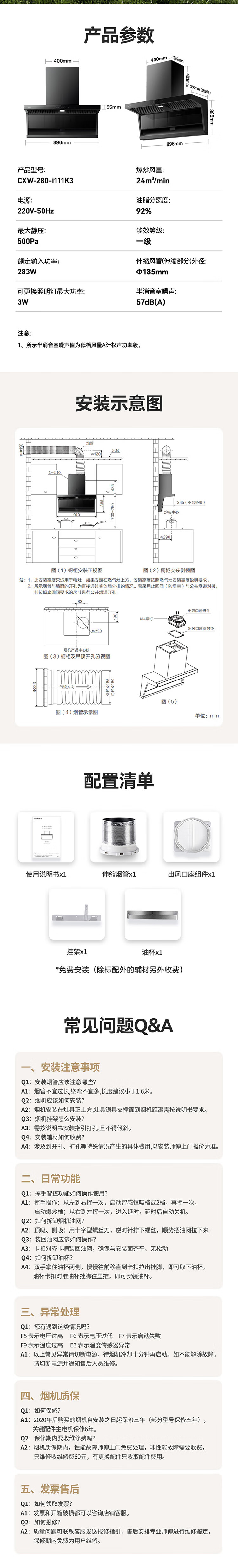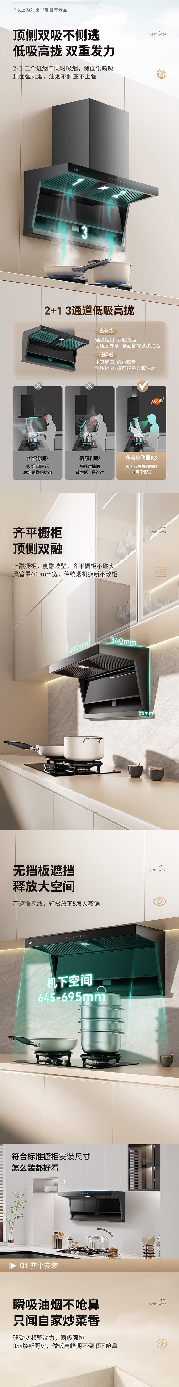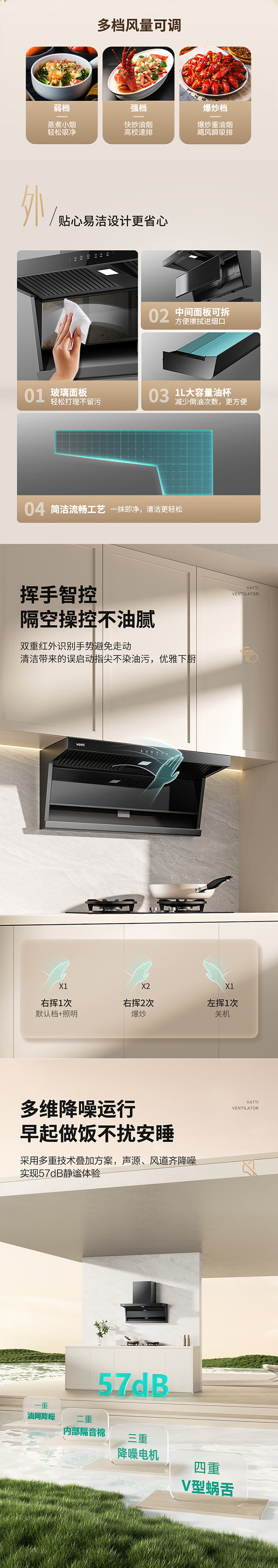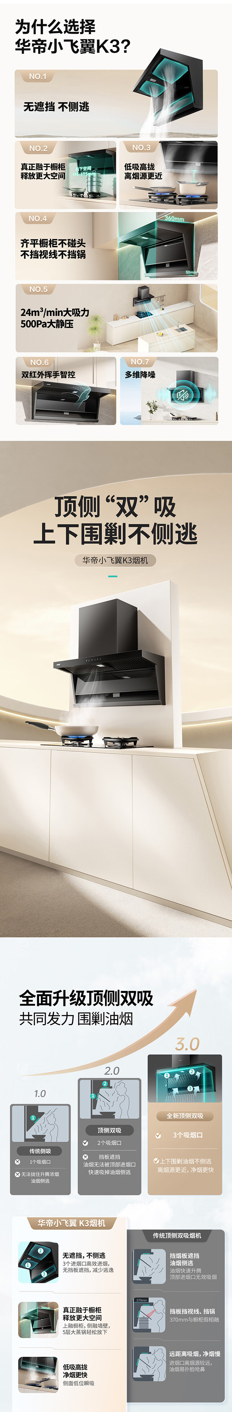Vantage Xiaofeiyi K3 state-subsidized ultra-thin flat-embedded detachable range hood top side double-suction 7-shaped 24 air volume large suction silent first-level energy efficiency i111K3