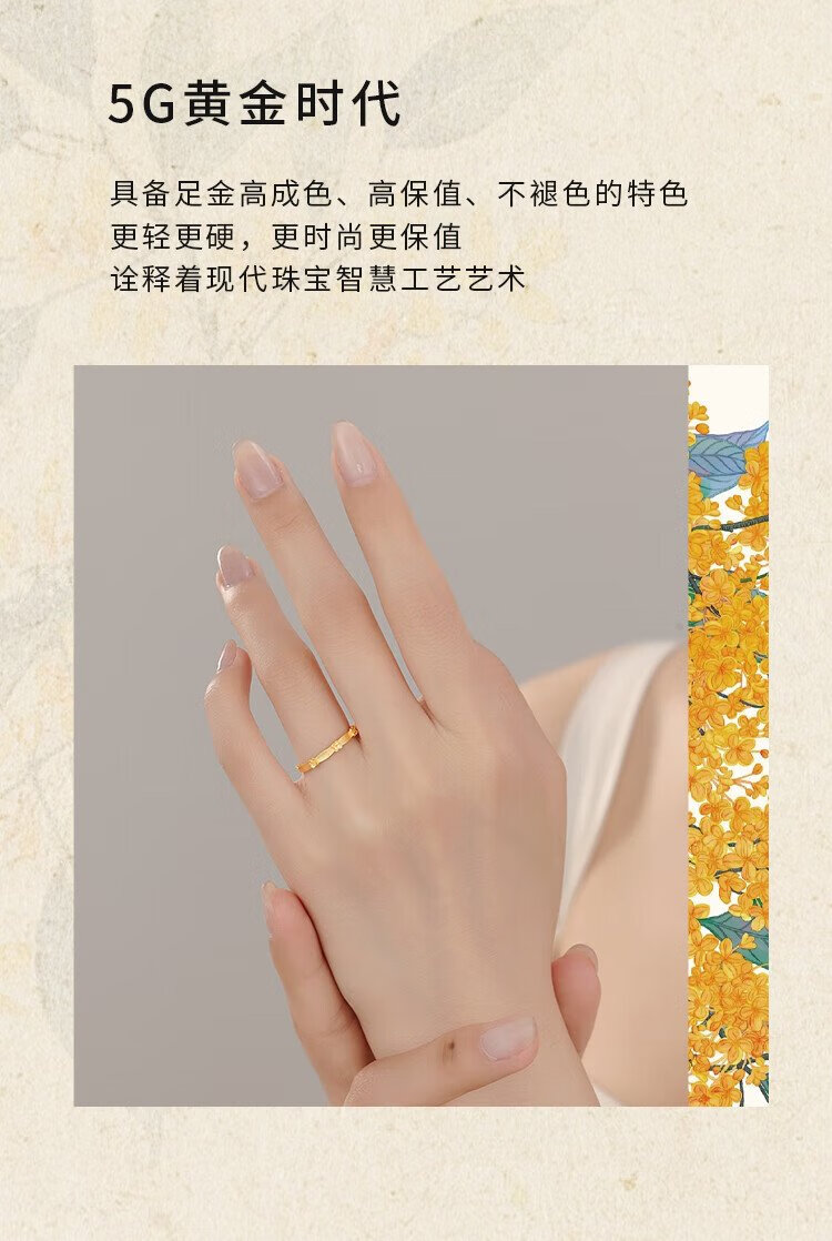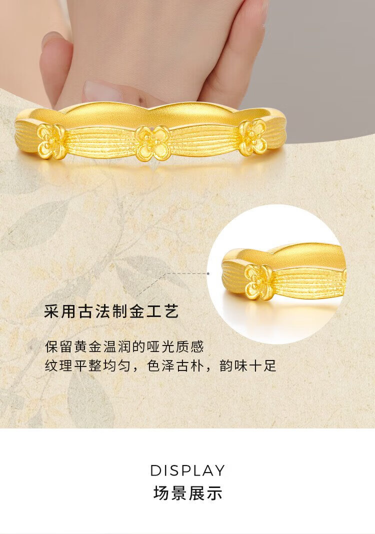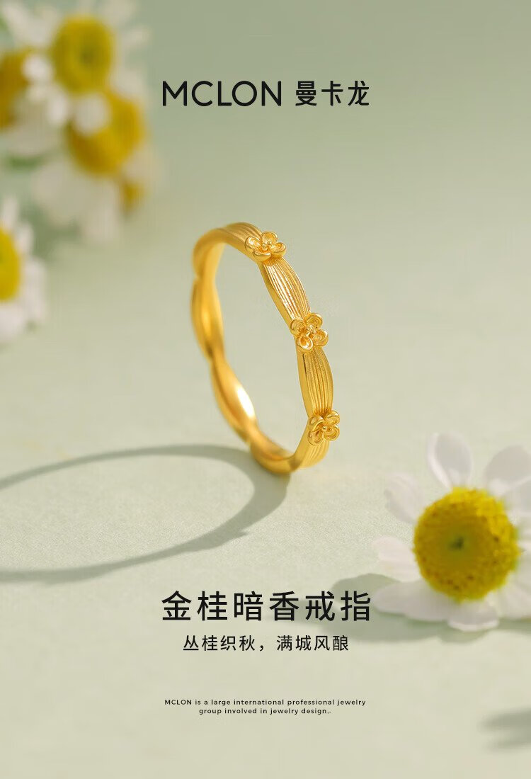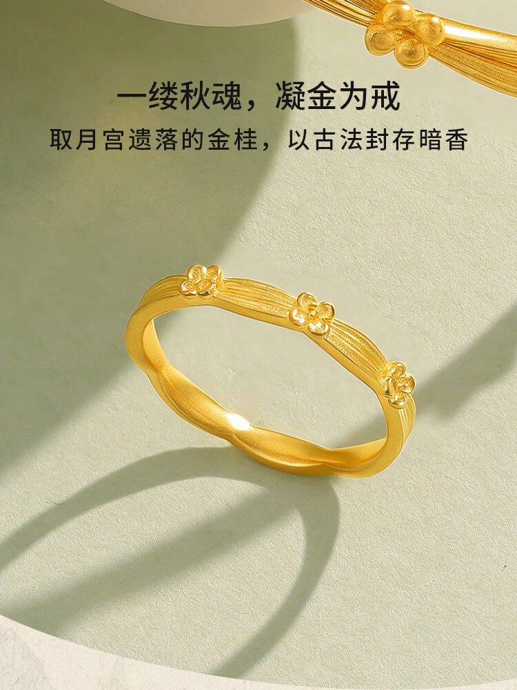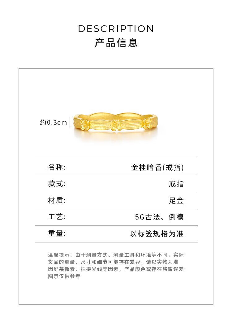Mankalong gold ring, golden osmanthus dark fragrance, pure gold ring, women's osmanthus shape, simple pure gold price, 13# 2.56g