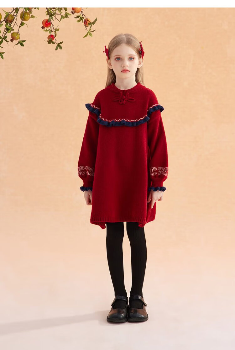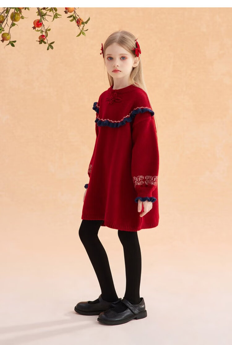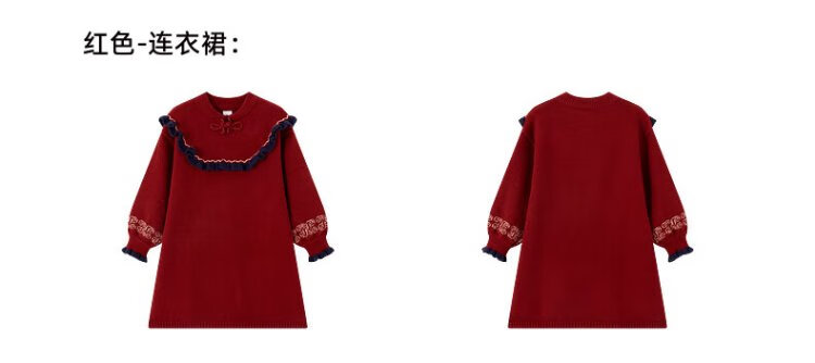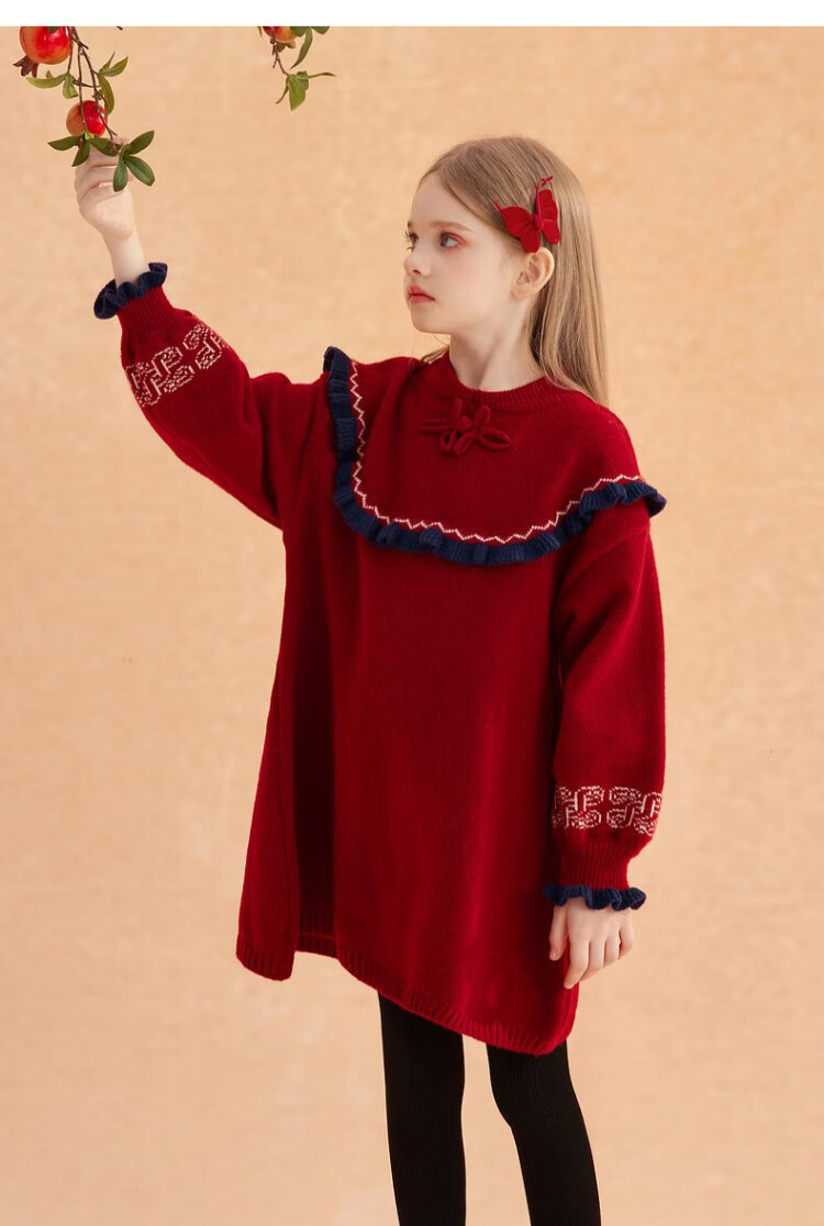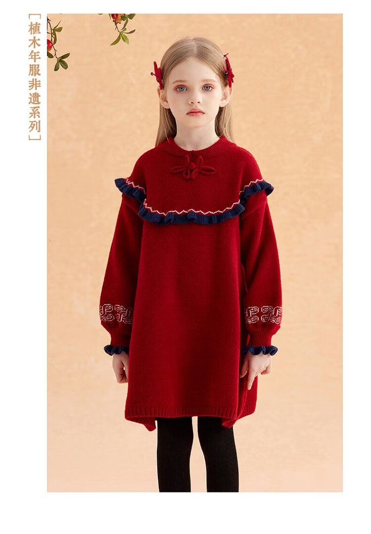 Ueki children's clothing girls' red New Year's greetings sweater dress autumn winter New Year red 170