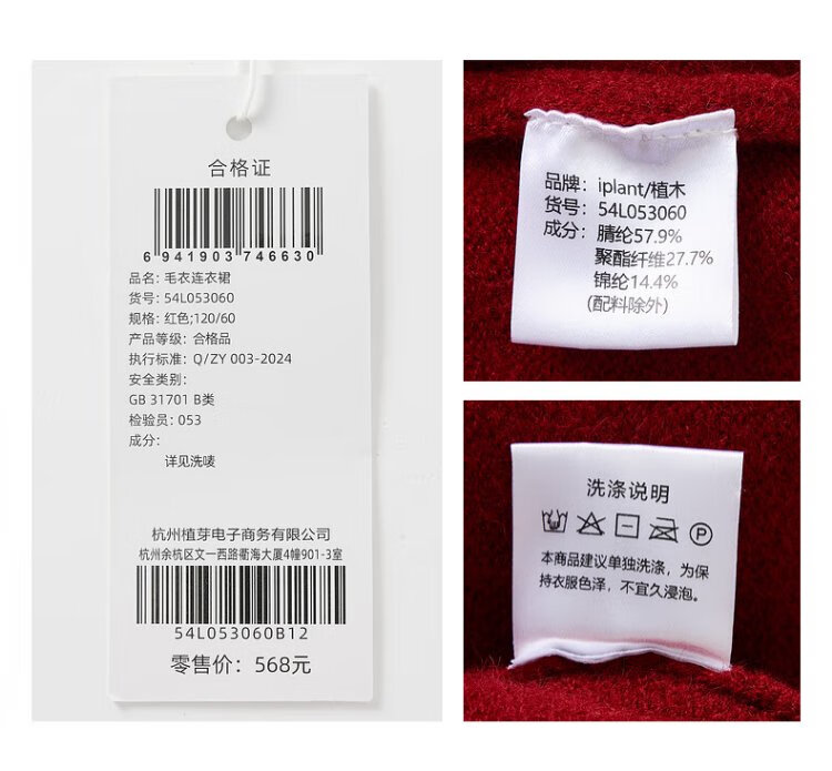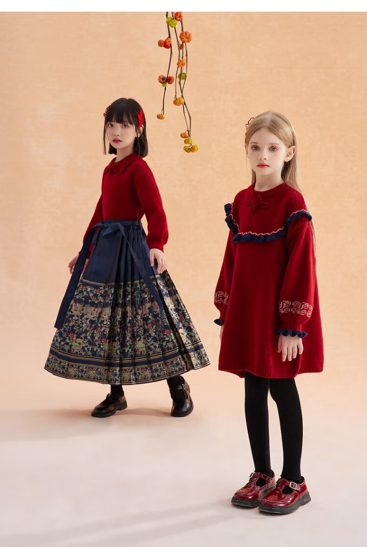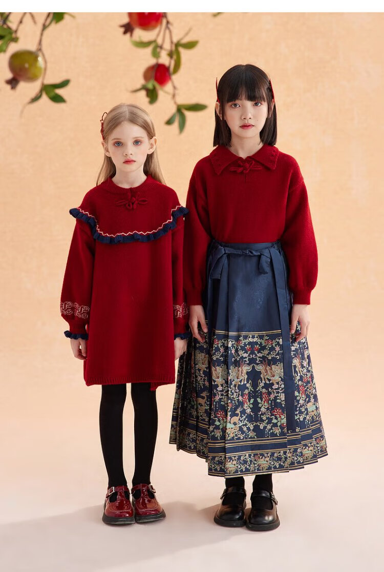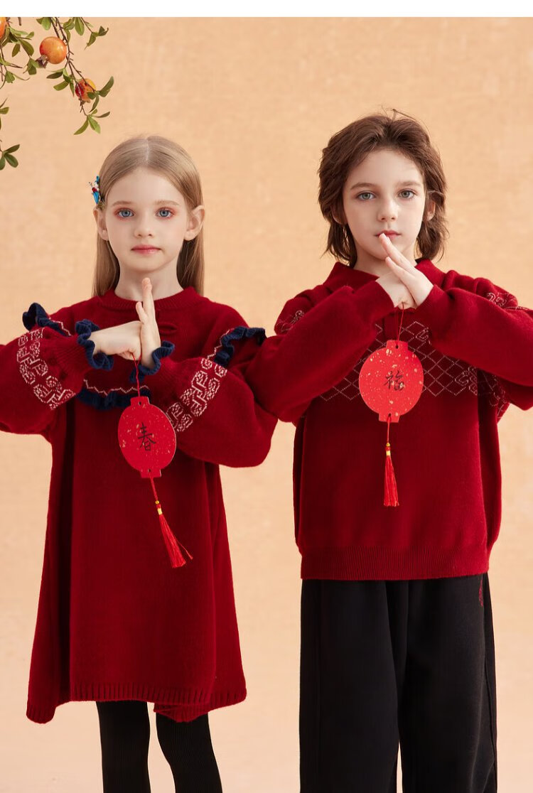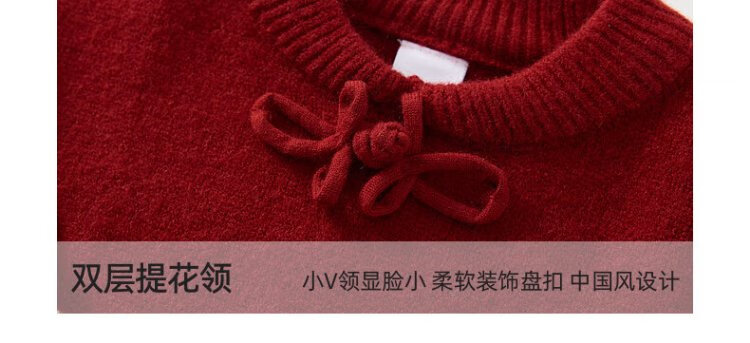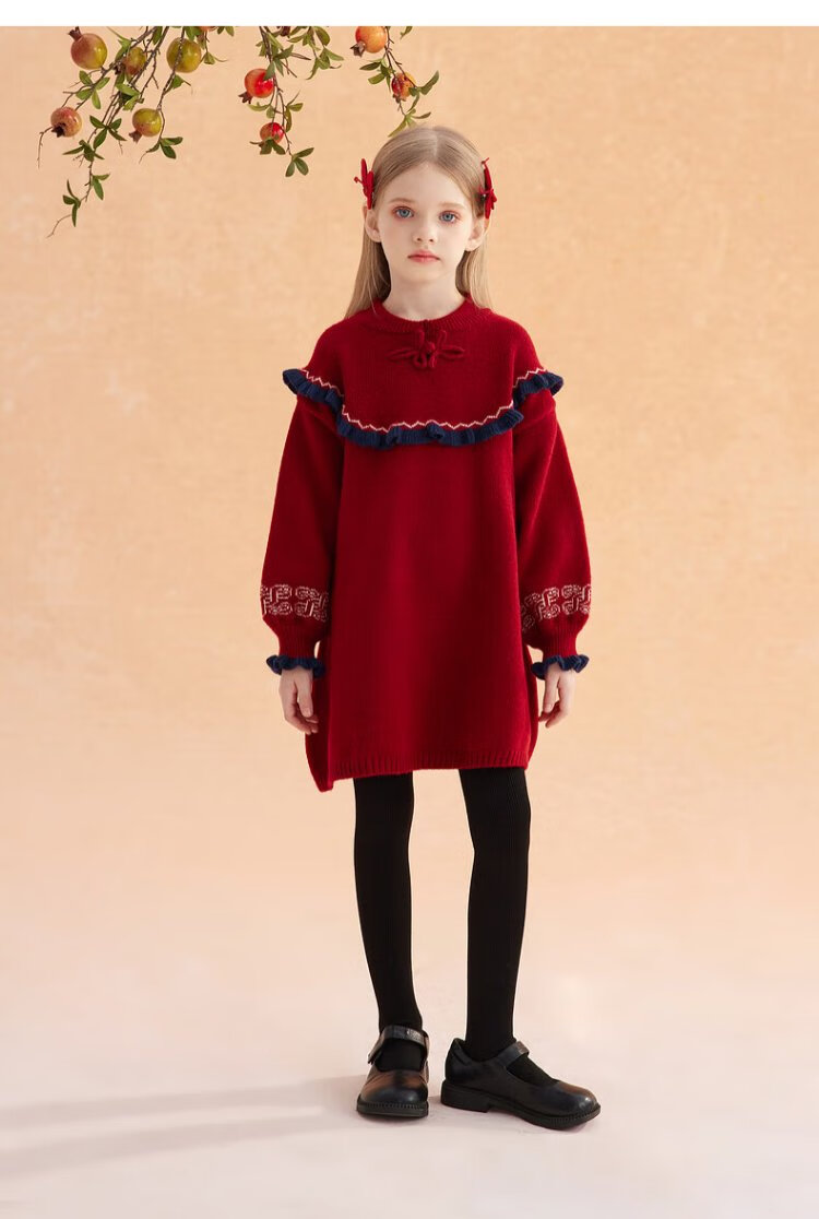 Ueki children's clothing girls' red New Year's greetings sweater dress autumn winter New Year red 170