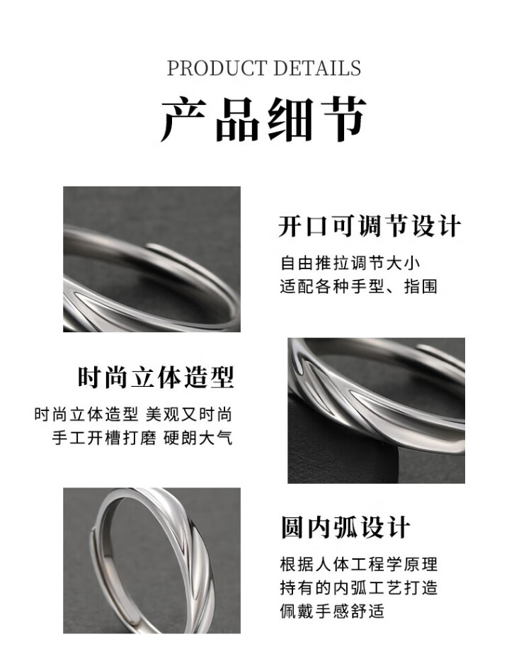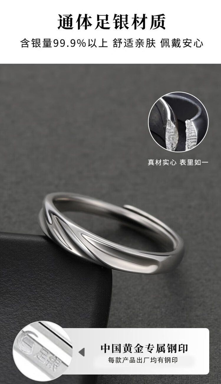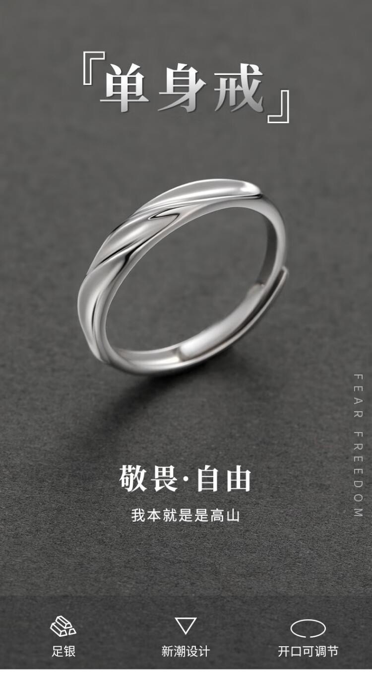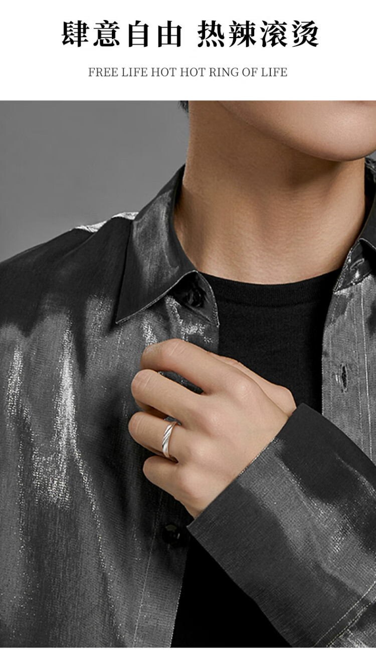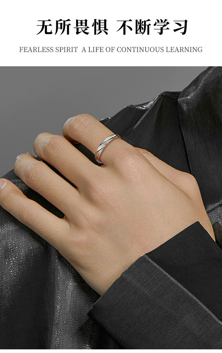 Chinese gold solid silver 999 silver ring for men, single ring, self-discipline male ring, birthday gift for boyfriend, boyfriend, husband