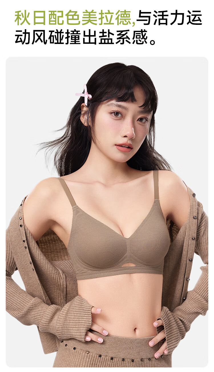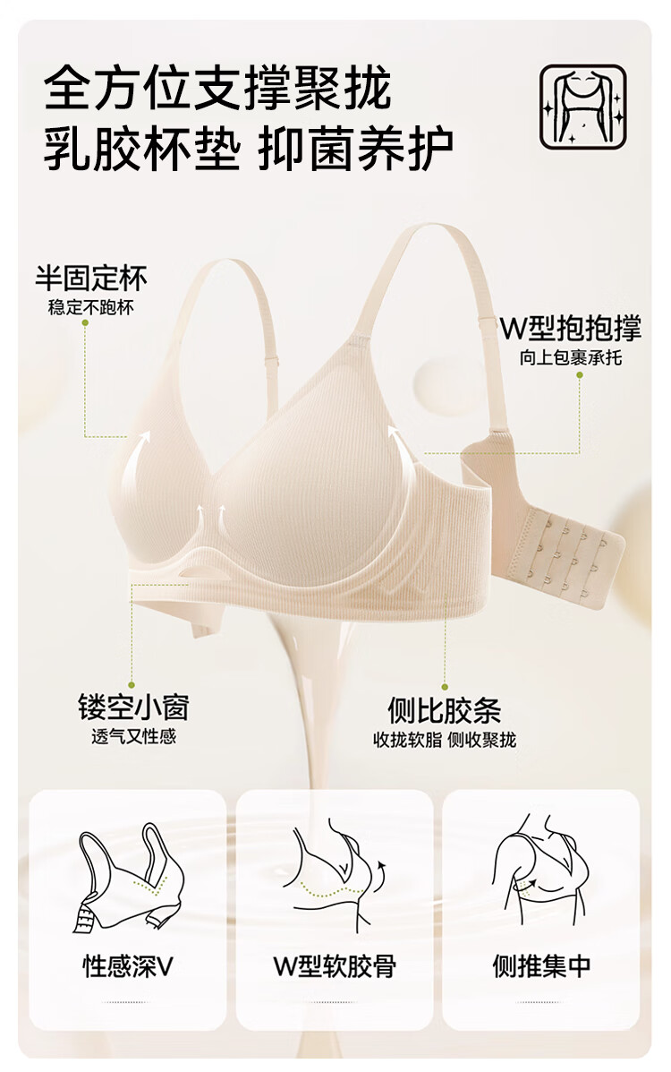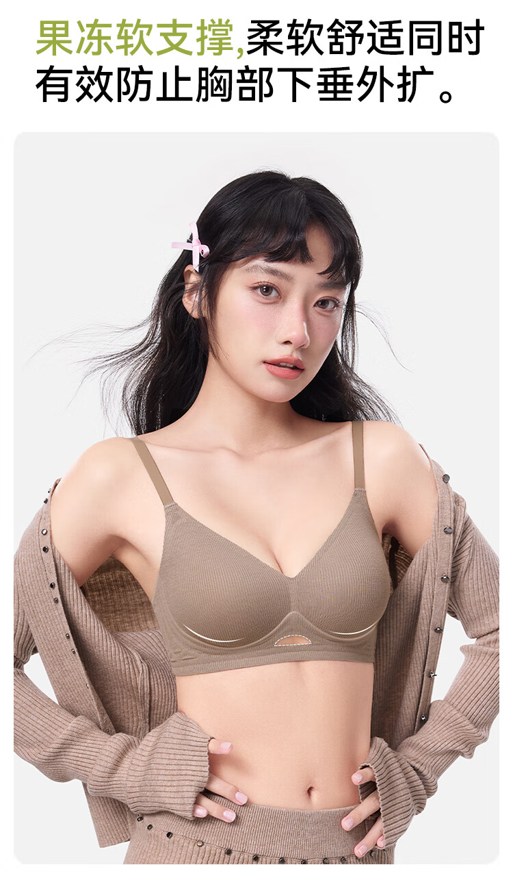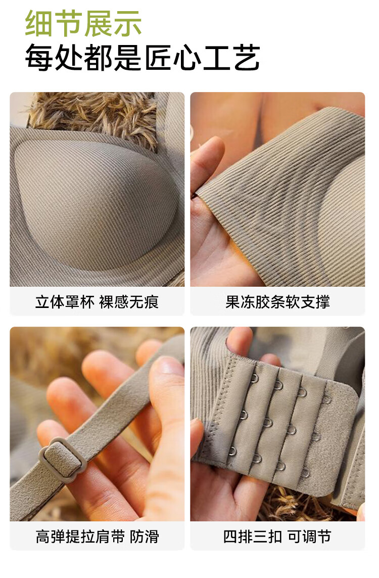 FitonTon 2-piece seamless underwear women's pull-up anti-sagging bra without rims threaded brushed autumn and winter latex sports bra