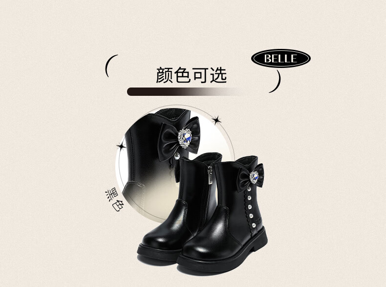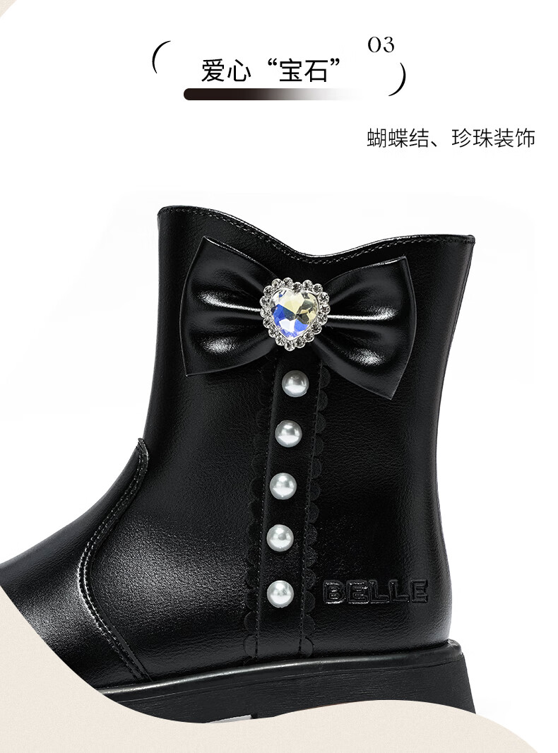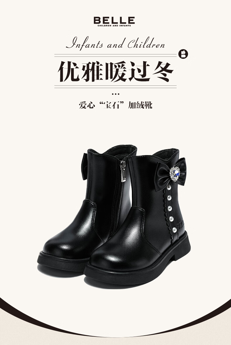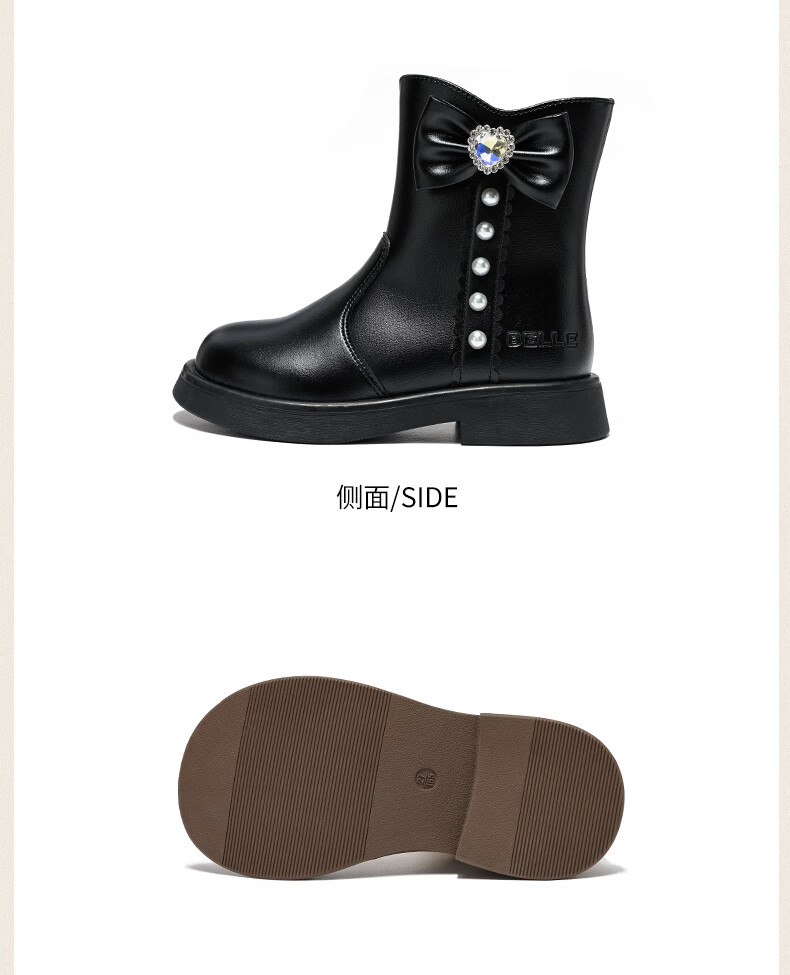 Belle Children's Shoes Winter Children's Velvet Boots Girls Fashion Boots Princess Leather Boots Warm Short Boots Black 35