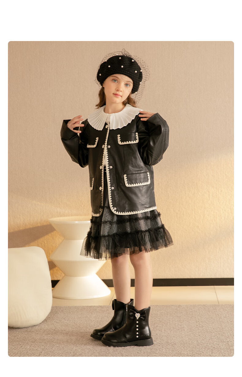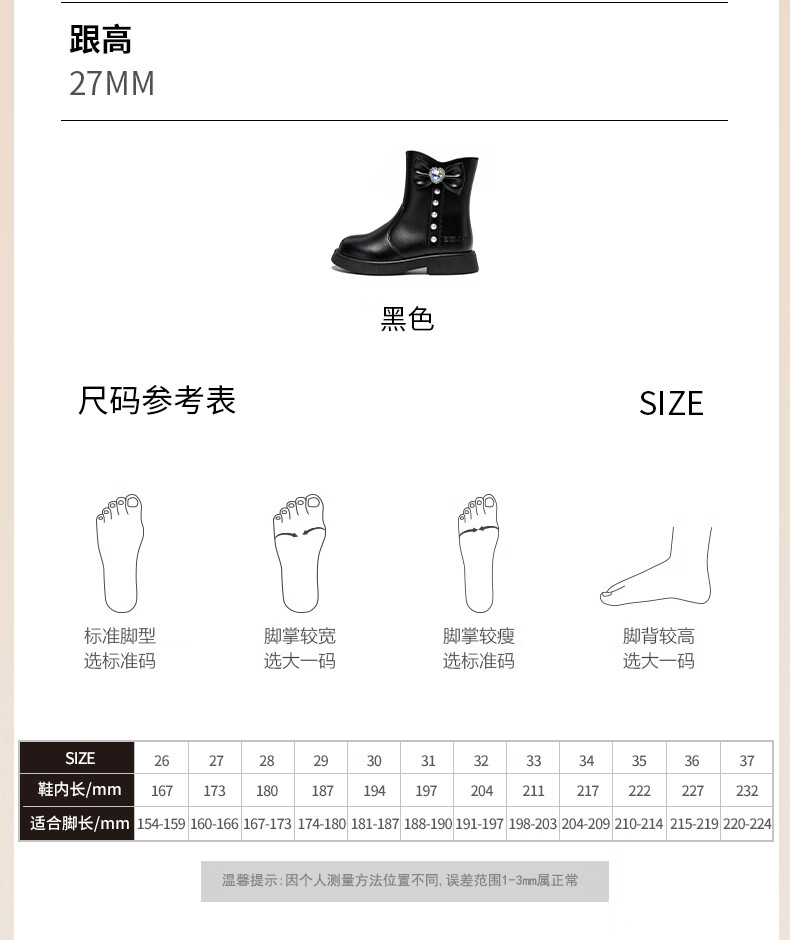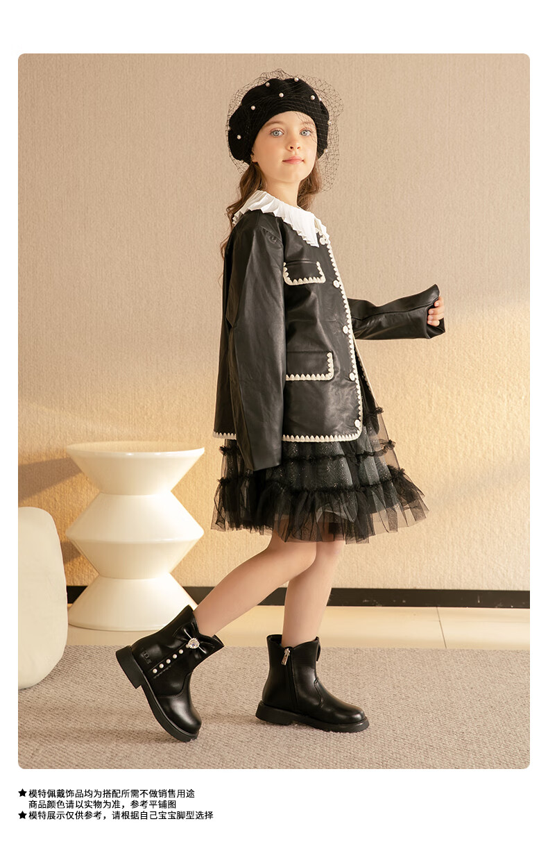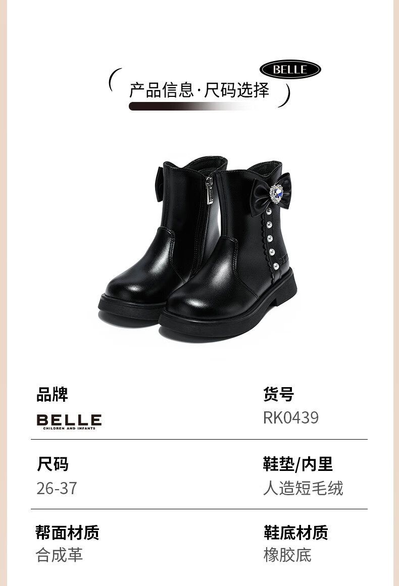 Belle Children's Shoes Winter Children's Velvet Boots Girls Fashion Boots Princess Leather Boots Warm Short Boots Black 35