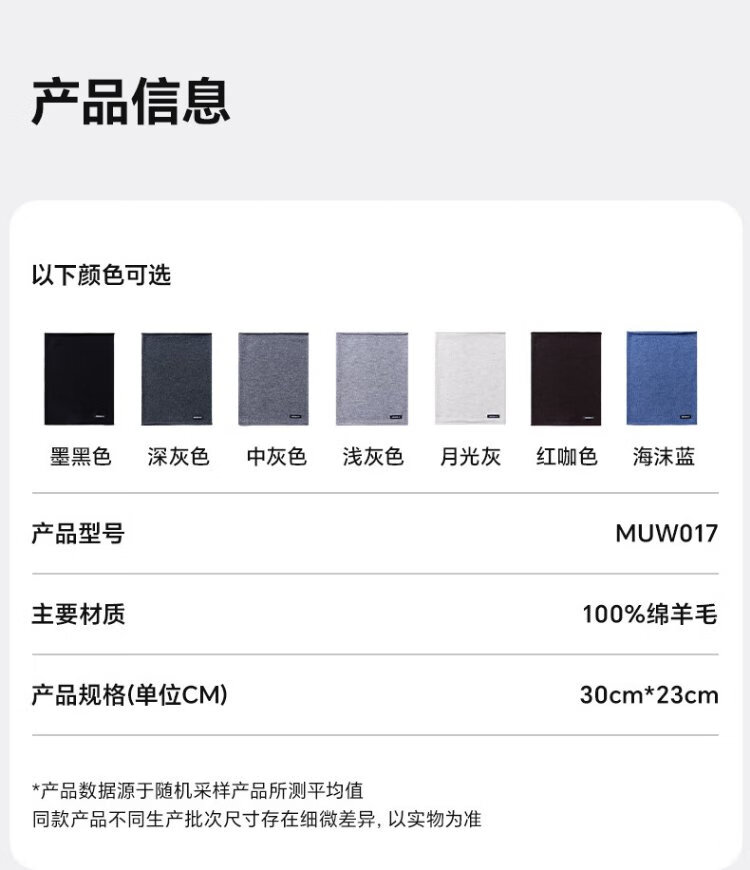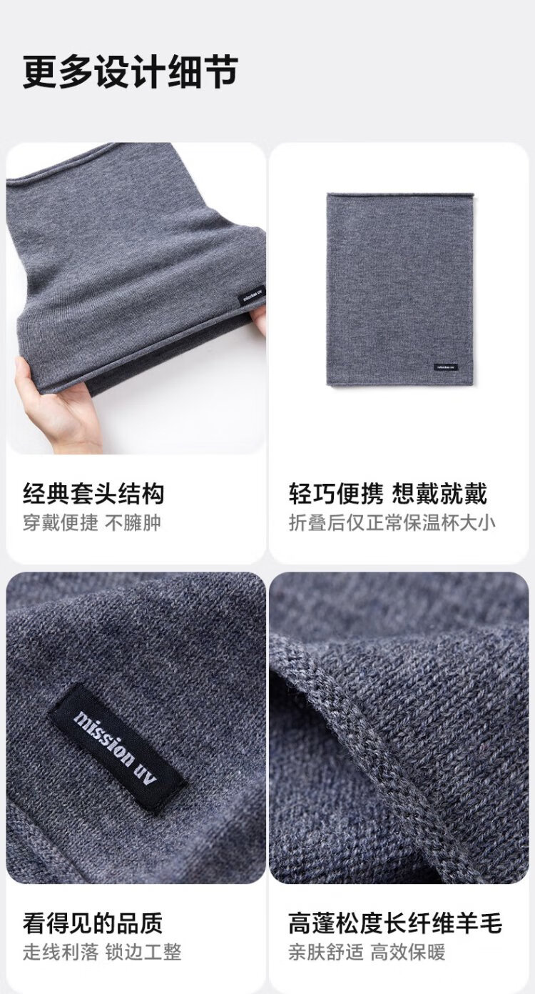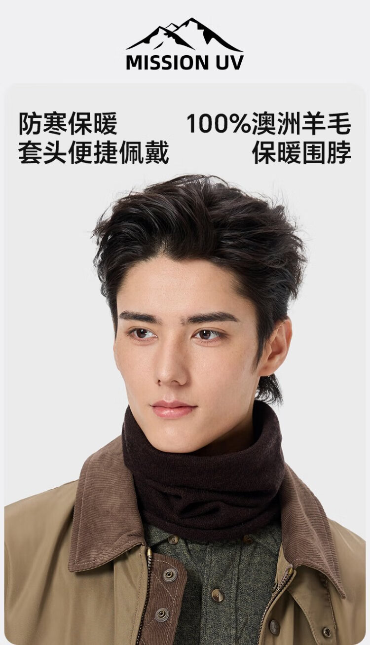 MISSION UV pure wool scarf men's autumn and winter outdoor hiking and cycling mountaineering mask cold protection neck hood warm neck hood