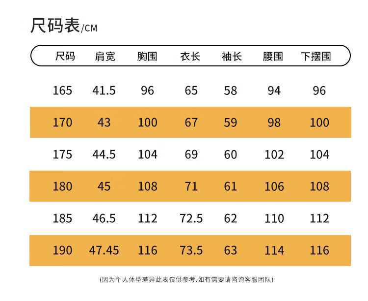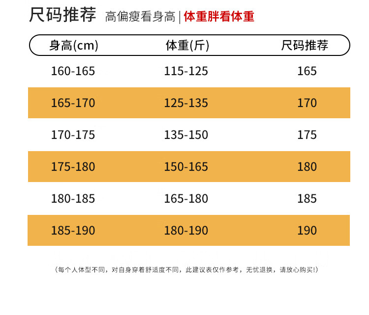 China (cm) 160-165/84-86 165-170 / 88-90 167-172 / 92-96 168-173 / 98-102 170-176 / 106-110