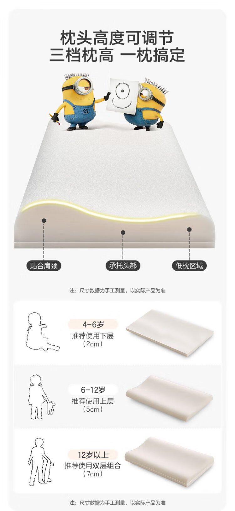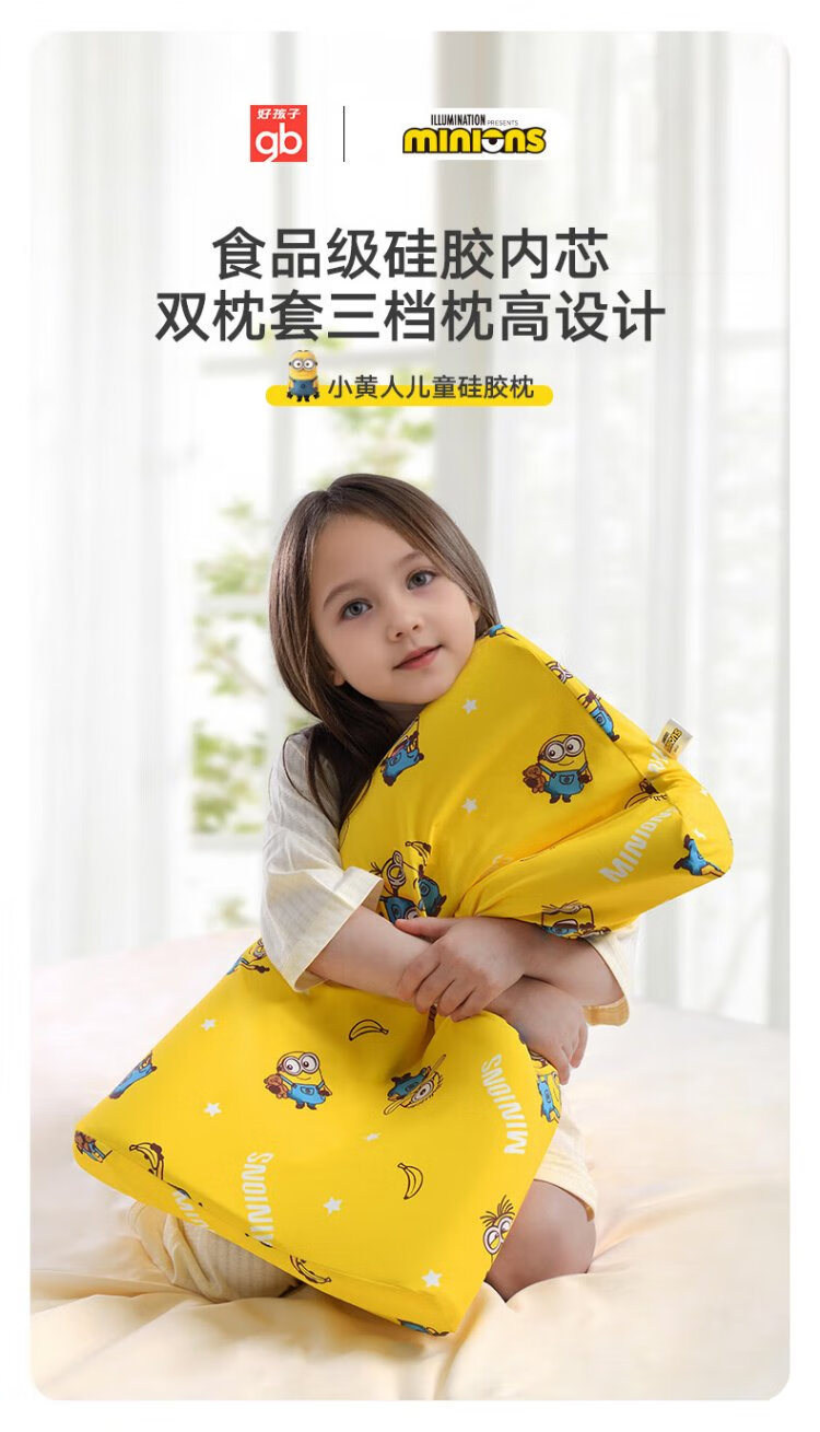 Goodbaby (gb) baby and children's pillow washable neck protection 3-6-12 years old silicone student nap pillow Minion gift box