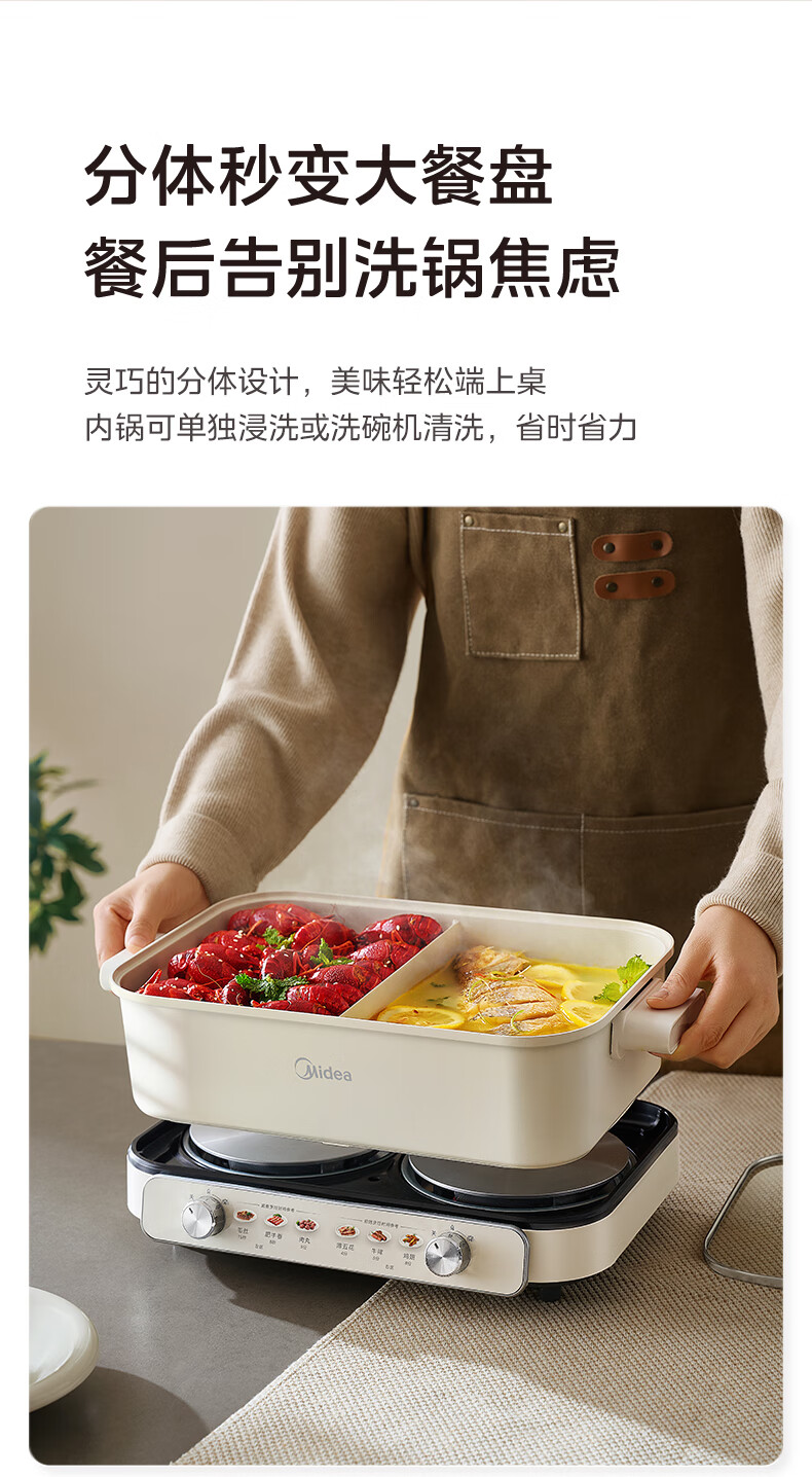 Midea electric hot pot Yuanyang pot hot pot special pot ultra-thin titanium ceramic quick boiling split type 0 fluorine 6.5L electric cooking pot electric heating pot multi-function pot HGS3322R1