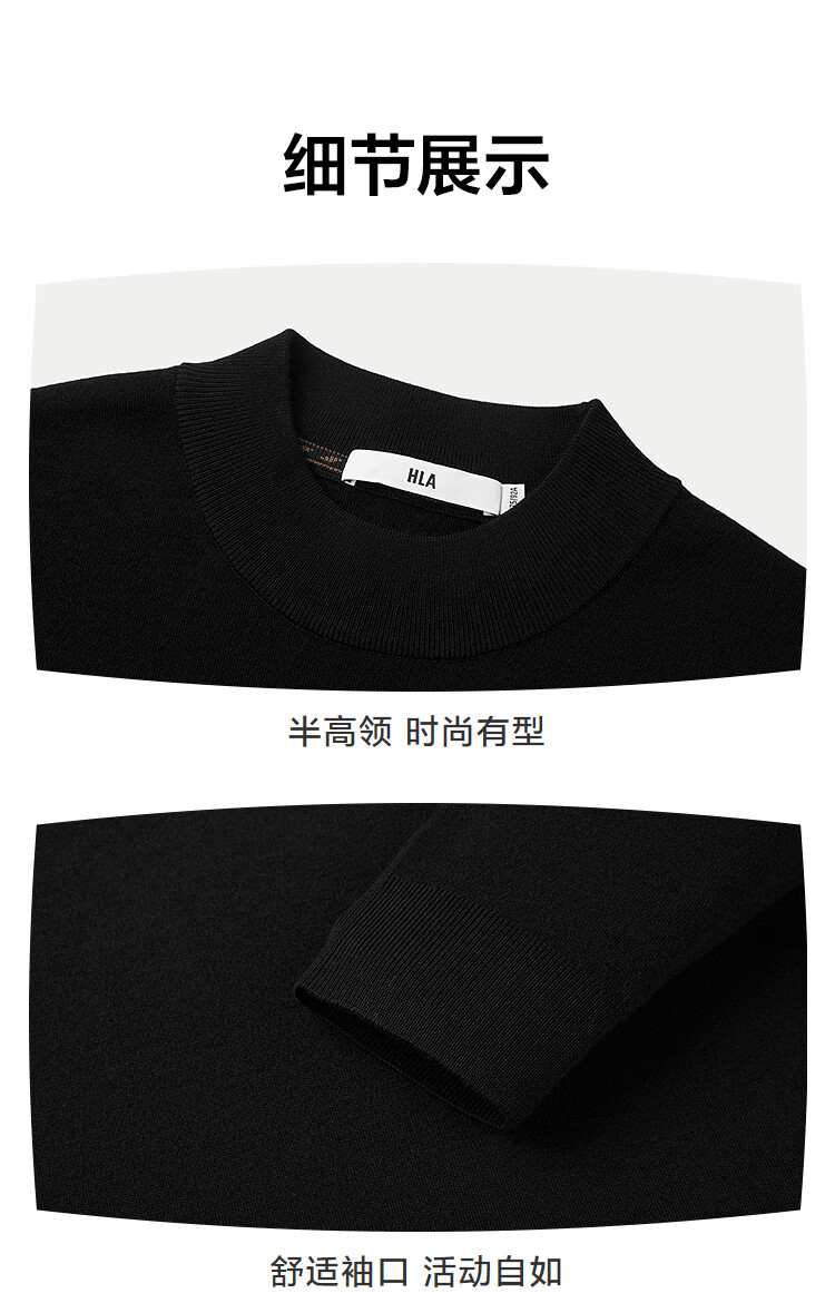 HLA Heilan long-sleeved sweater men's pure wool half turtleneck slim sweater men