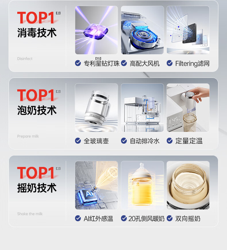 Little White Bear Sterilized Milk Shaker Three-in-one Bottle Sterilizer Cabinet Baby Dryer All-in-One Machine Quantitative Milk Shaker 5110