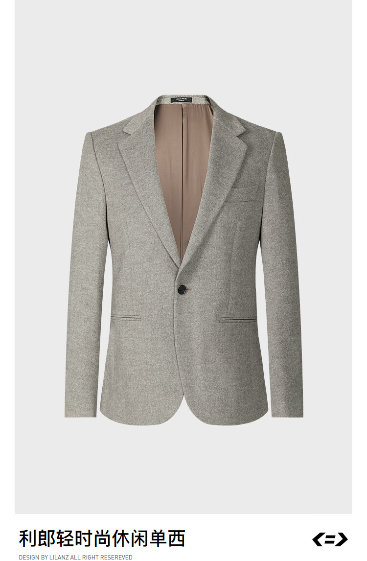 Lilang Wool Blended Suit Men's Young Business Comfortable One-Button Suit Jacket Gray Coffee 180A