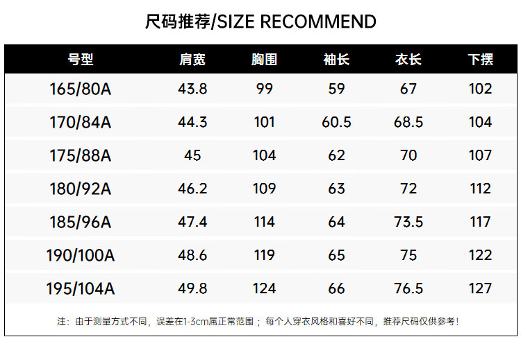 China (cm) 160-165/84-86 165-170 / 88-90 167-172 / 92-96 168-173 / 98-102 170-176 / 106-110