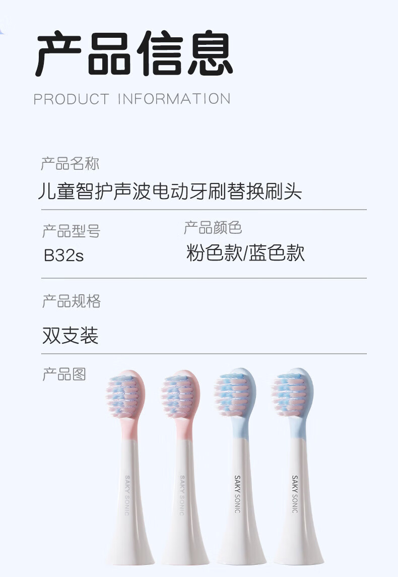 Sakykids children's electric toothbrush brush head B32s series replacement brush head blue 2 pack