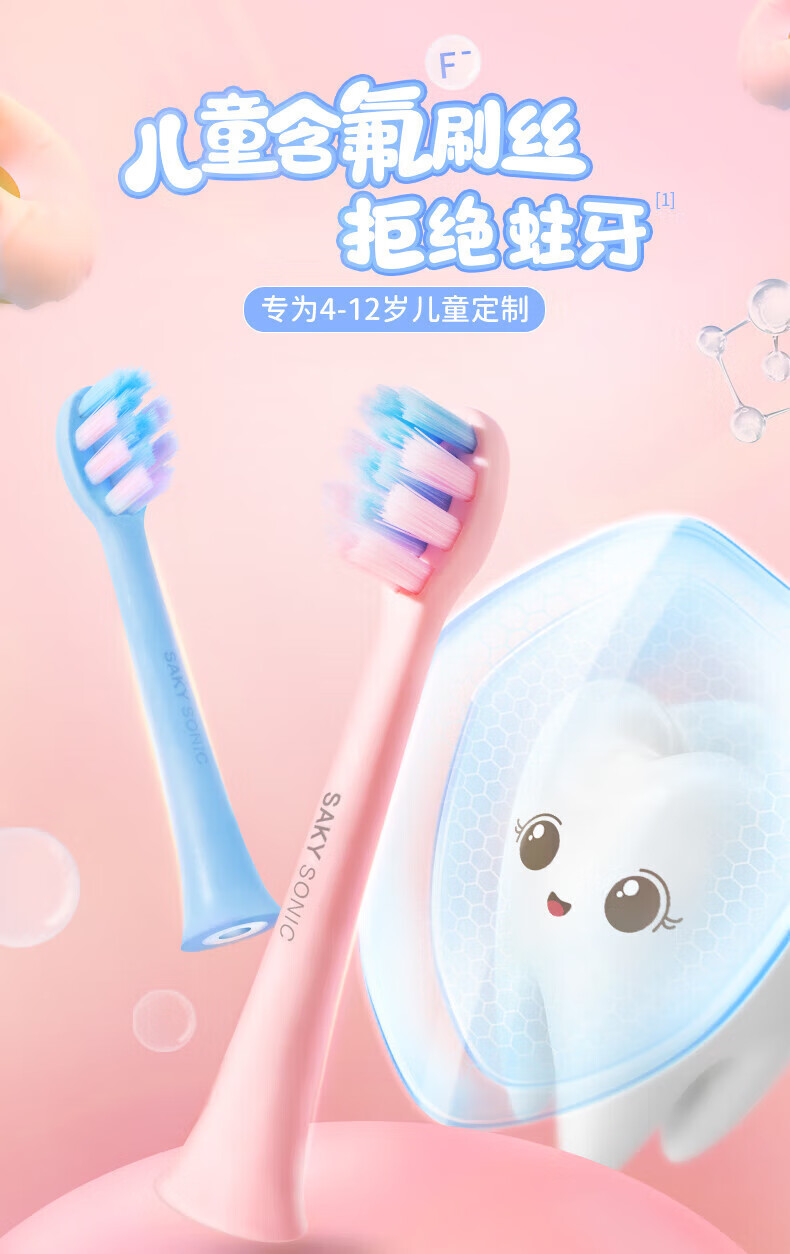 Sakykids children's electric toothbrush head contains fluoride brush filament, anti-moth soft bristles for gum protection, suitable for F2&k2 brush head, blue 2 pack
