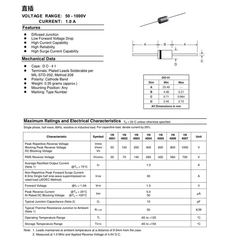 ZAVE rectifier diode plug-in, 10 kinds of commonly used rectifier diodes, 165 pieces in total
