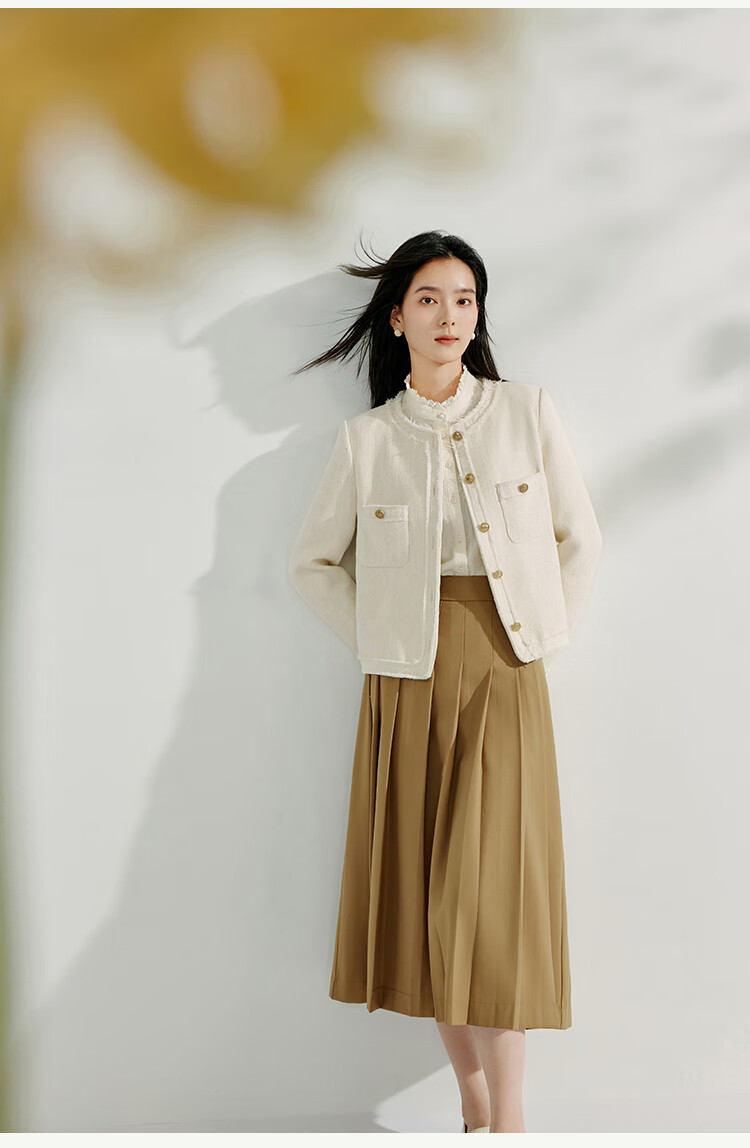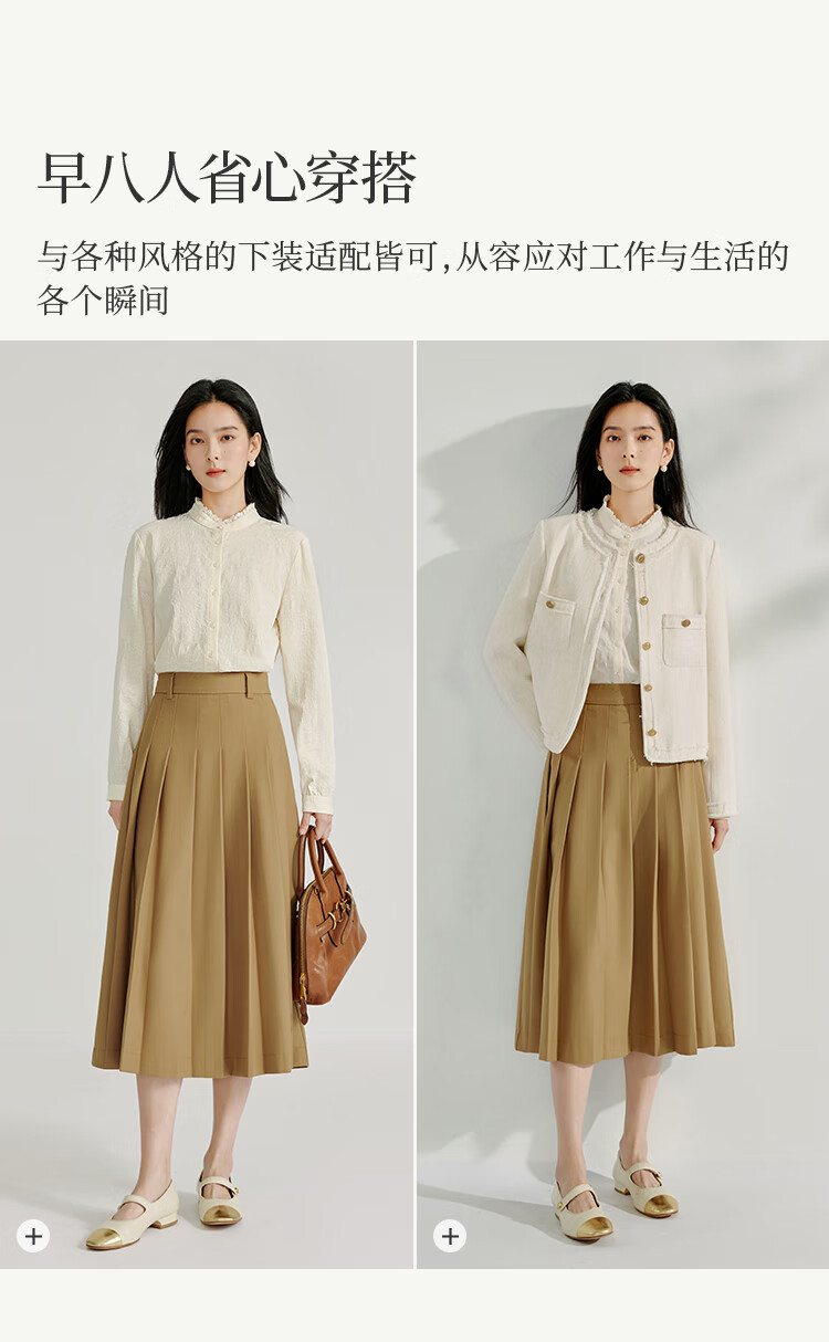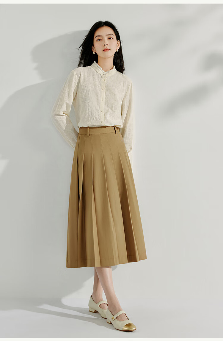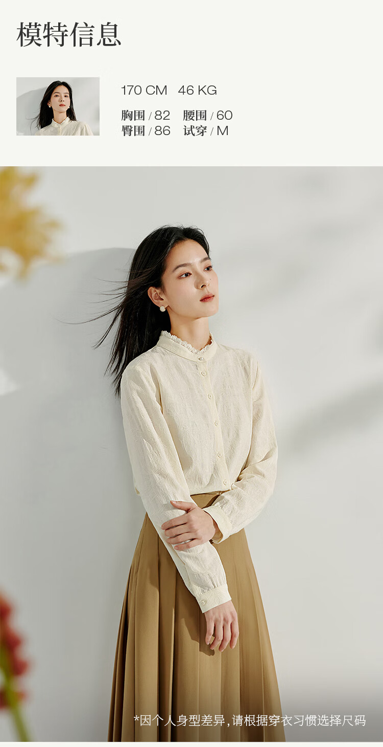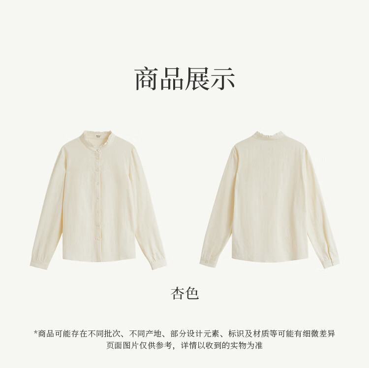 Inman cotton jacquard stand collar shirt spring women's casual commuting loose long-sleeved temperament shirt light apricot S
