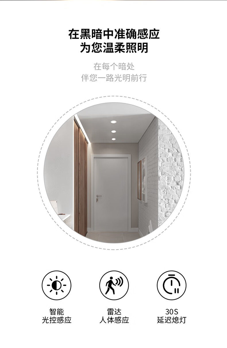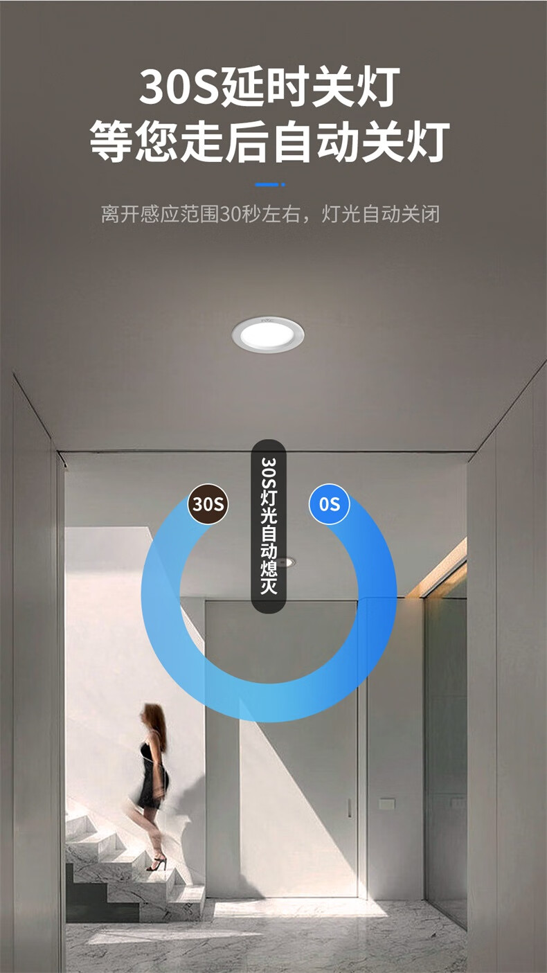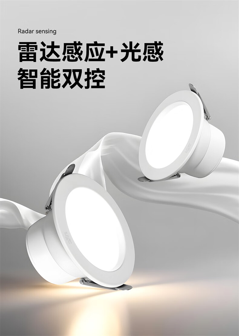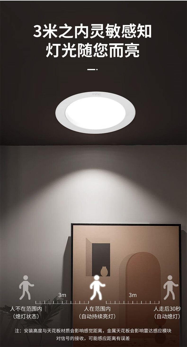 NVC LED downlight embedded radar human body induction home smart corridor aisle ceiling light entrance light 9W white