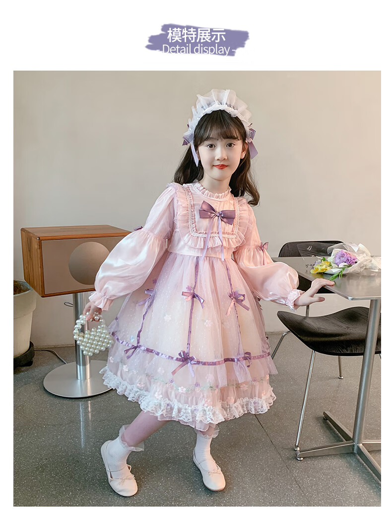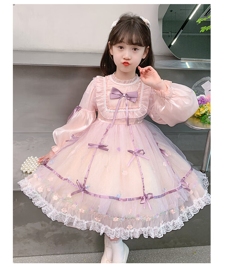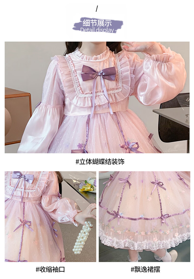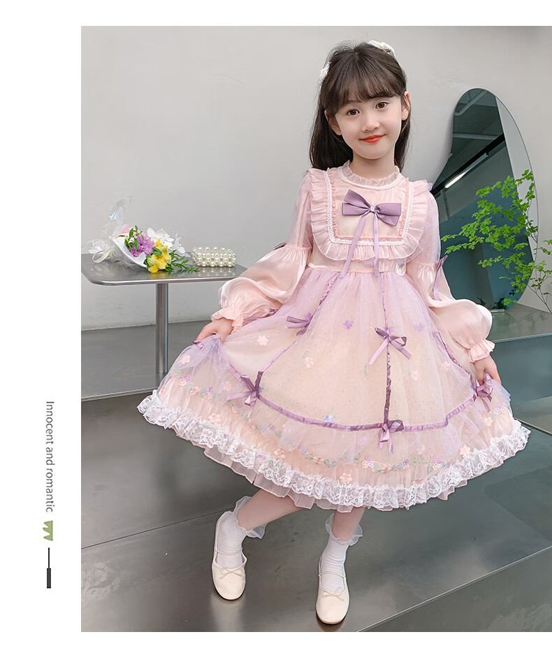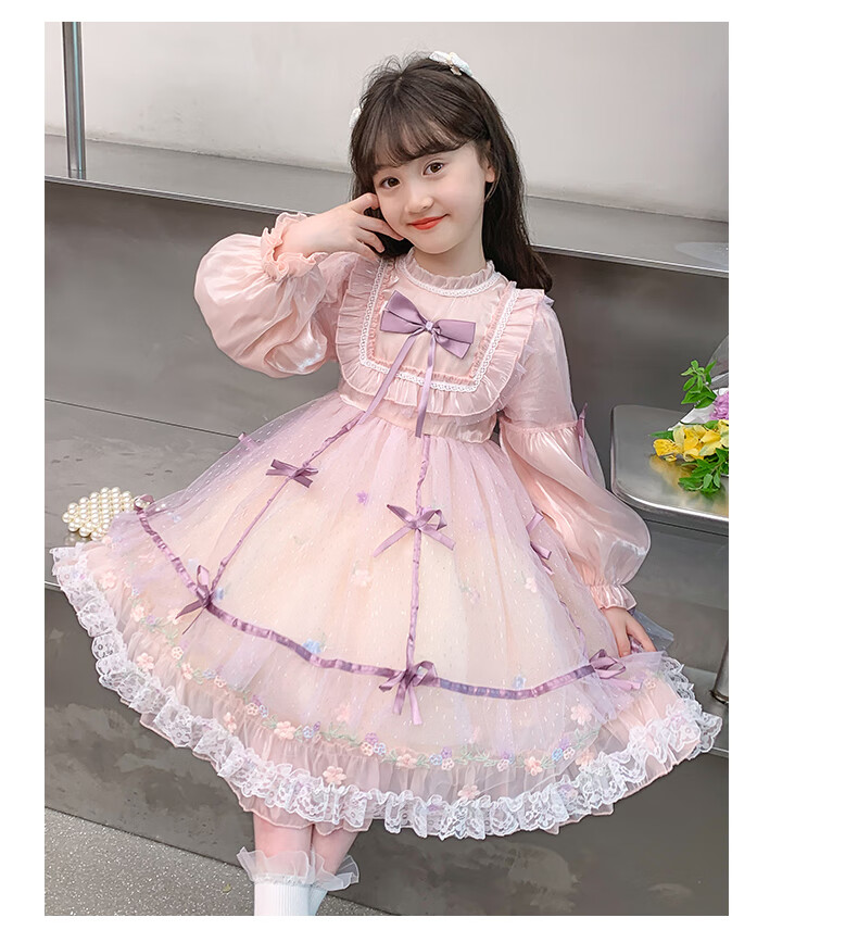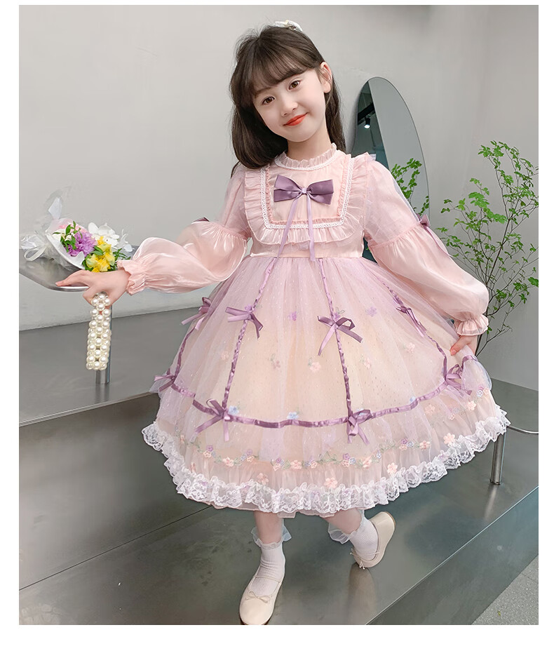 Nisha Beier Girls Lolita Princess Dress Autumn 2025 New Children's Lolita Birthday Dress Pink 140