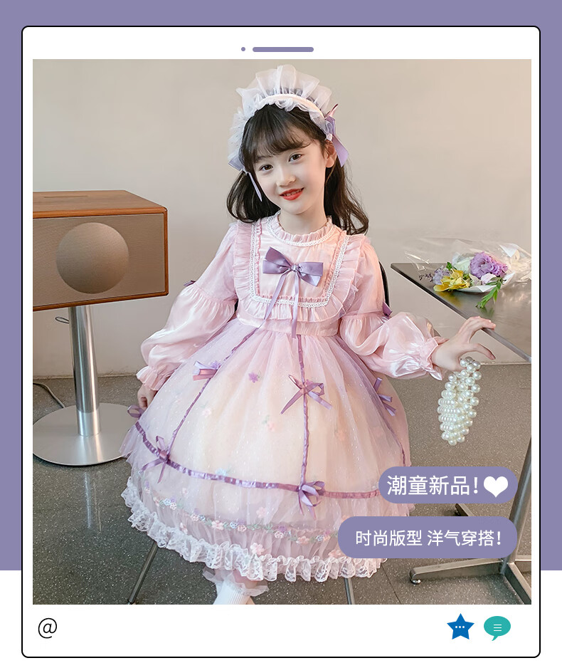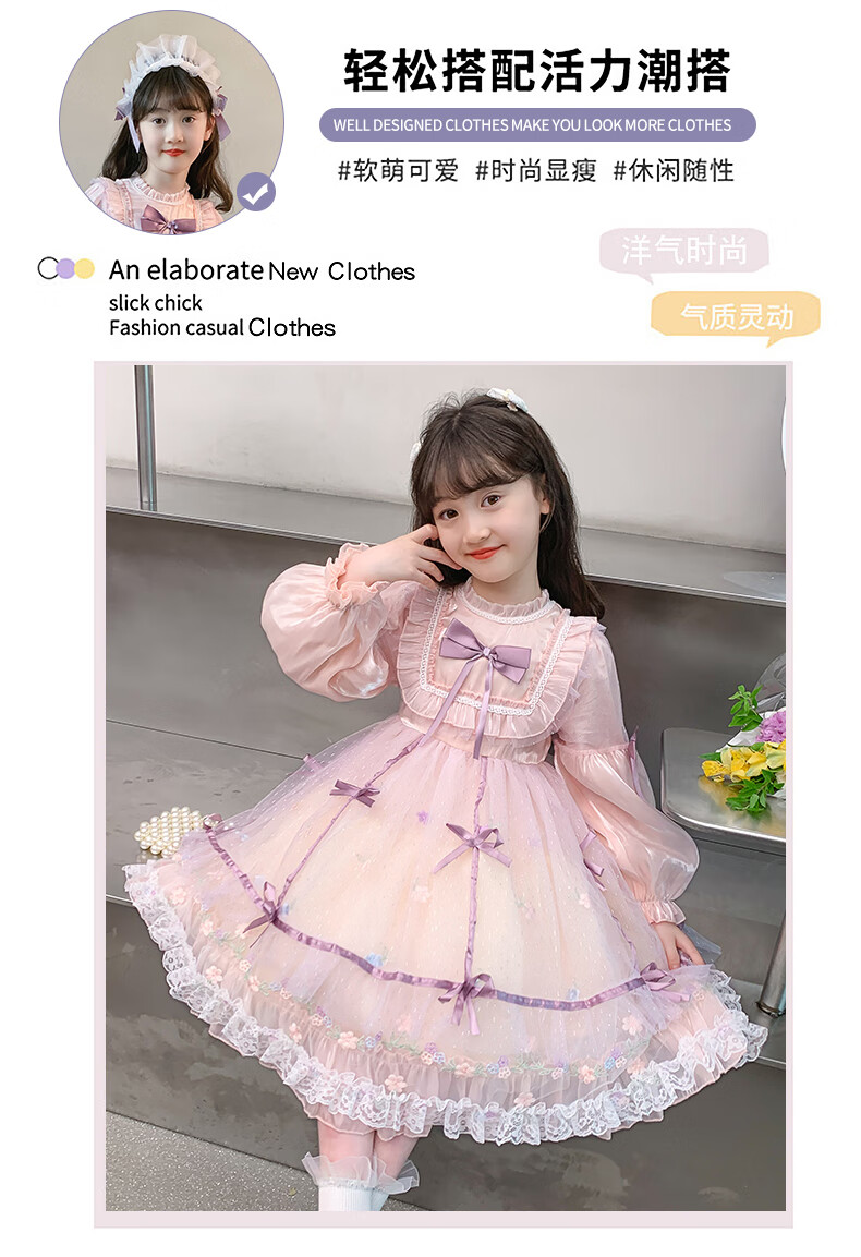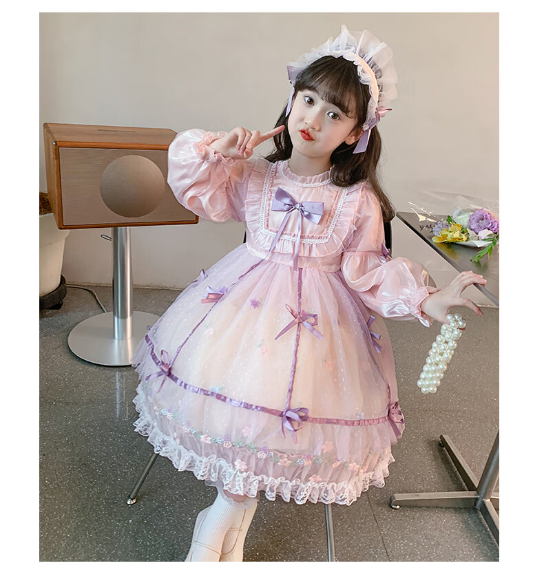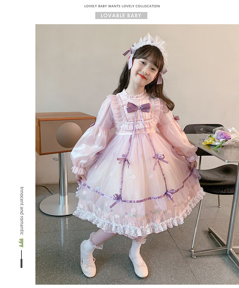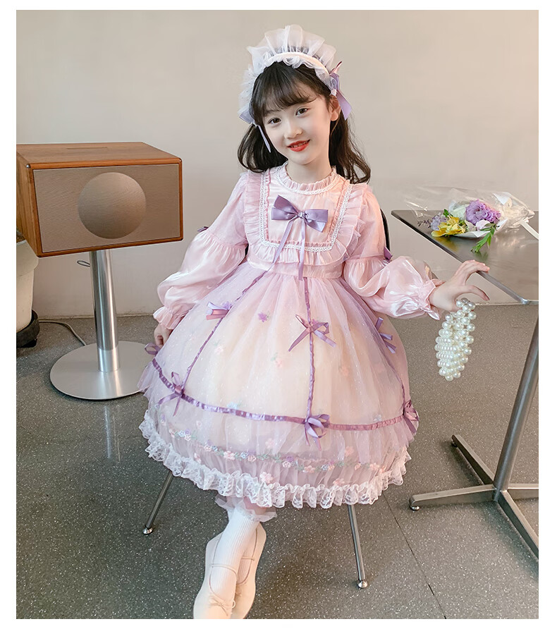 Nisha Beier Girls Lolita Princess Dress Autumn 2025 New Children's Lolita Birthday Dress Pink 140