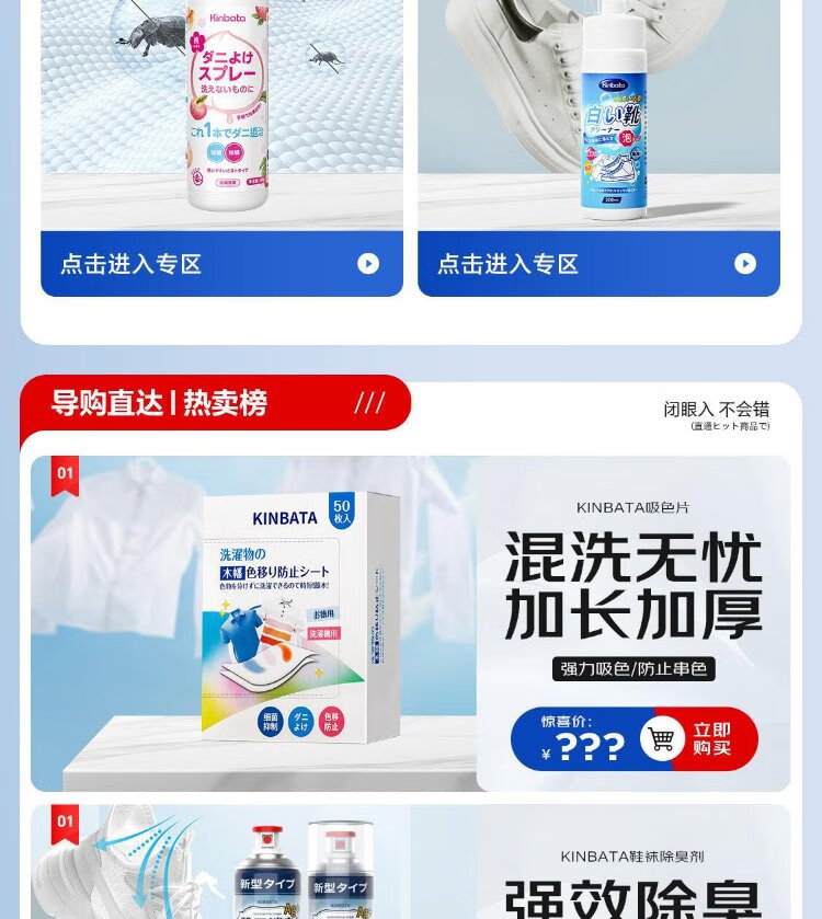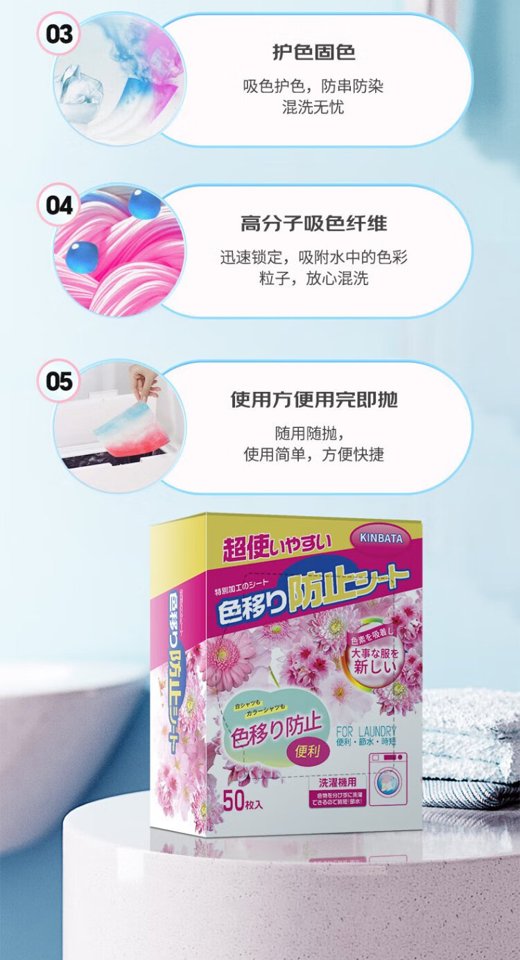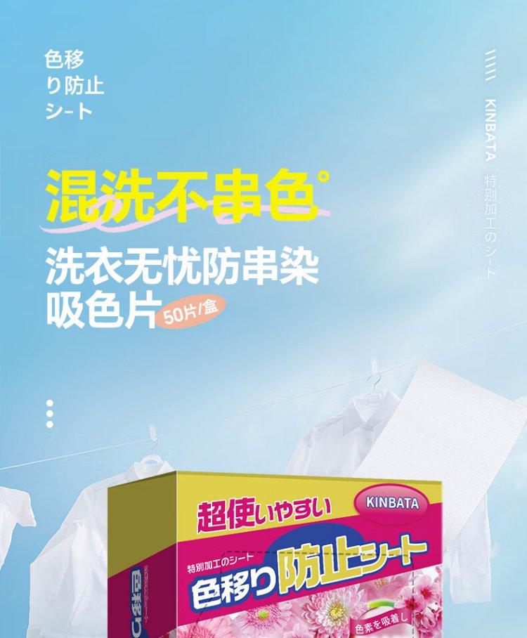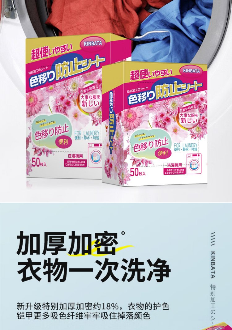 Kinbata anti-color cross-color laundry tablets 50 color-absorbing tablets, anti-staining laundry tablets, antibacterial and anti-mite color master tablets