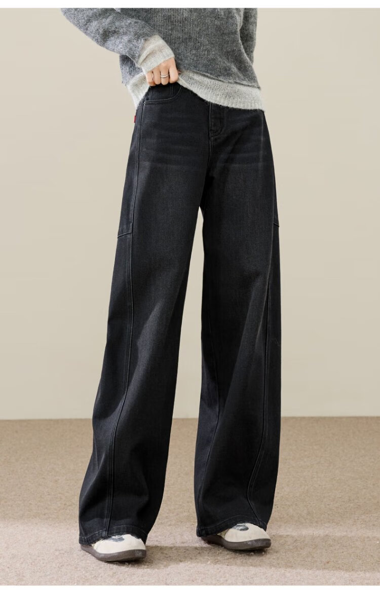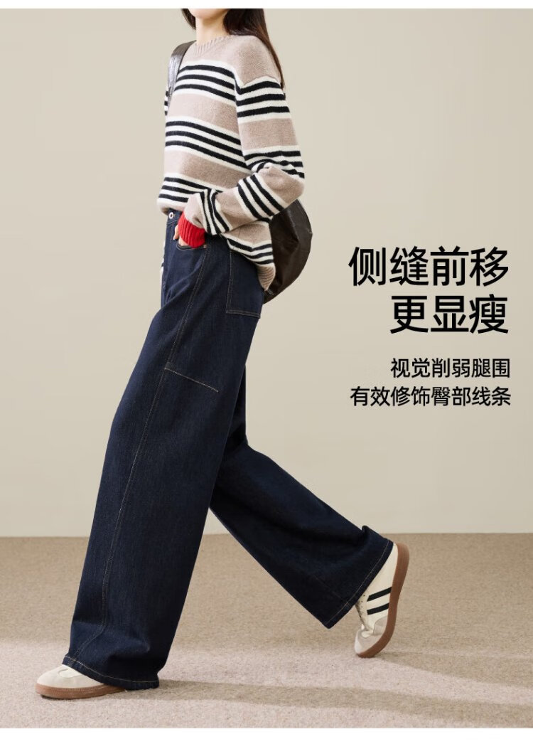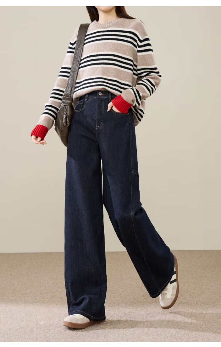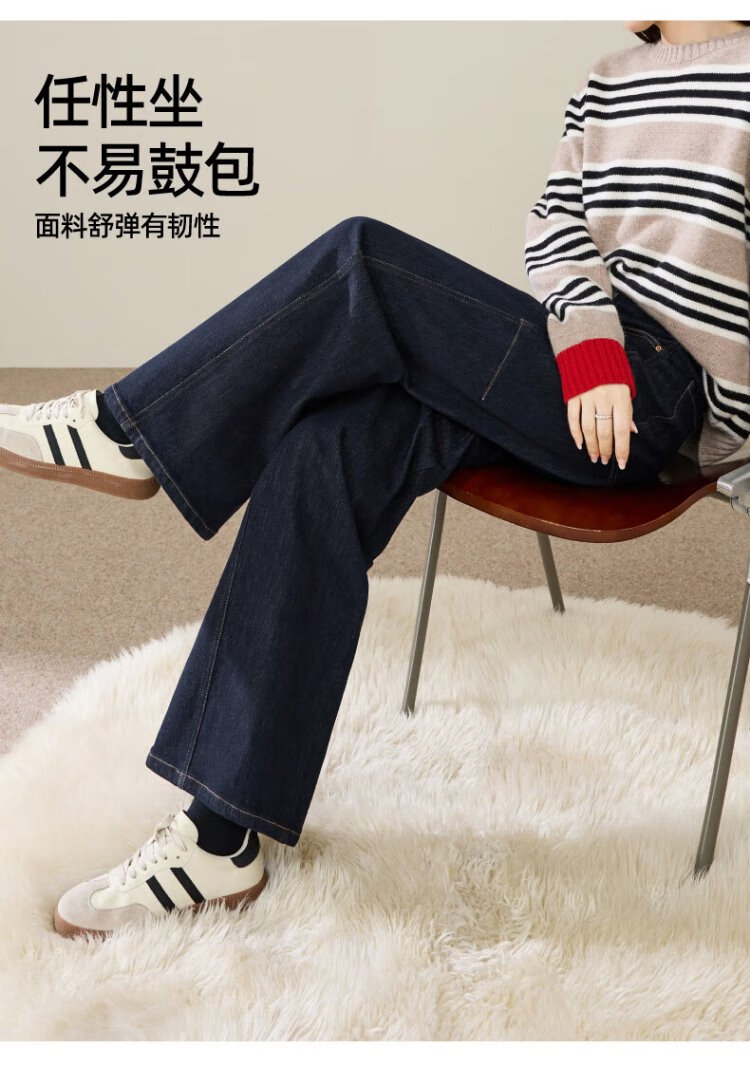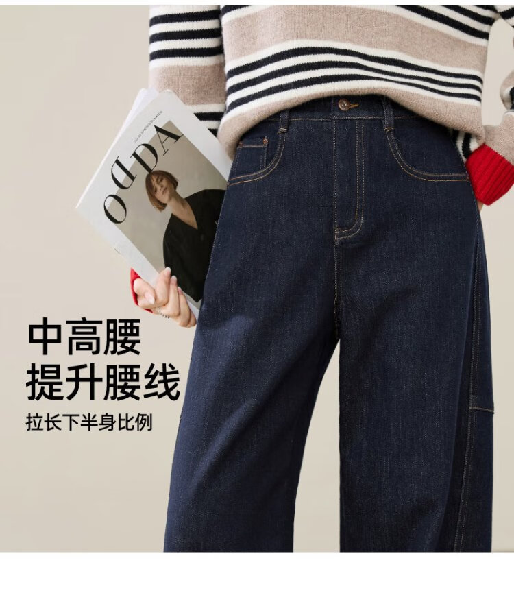 ESE-Y Velvet Scimitar Jeans Women's 2025 Autumn and Winter New Dark Blue Wide Leg Pants Dark Blue 27