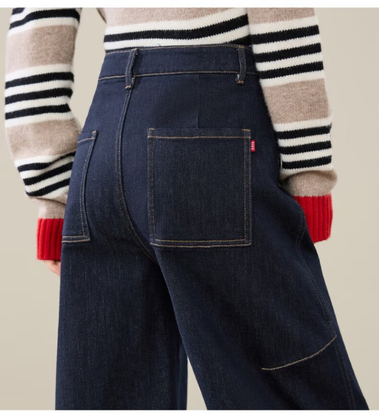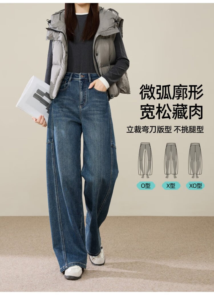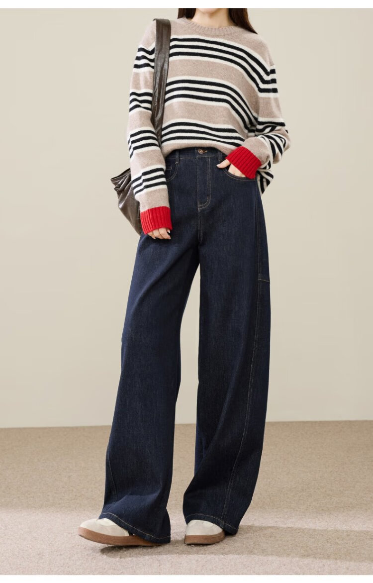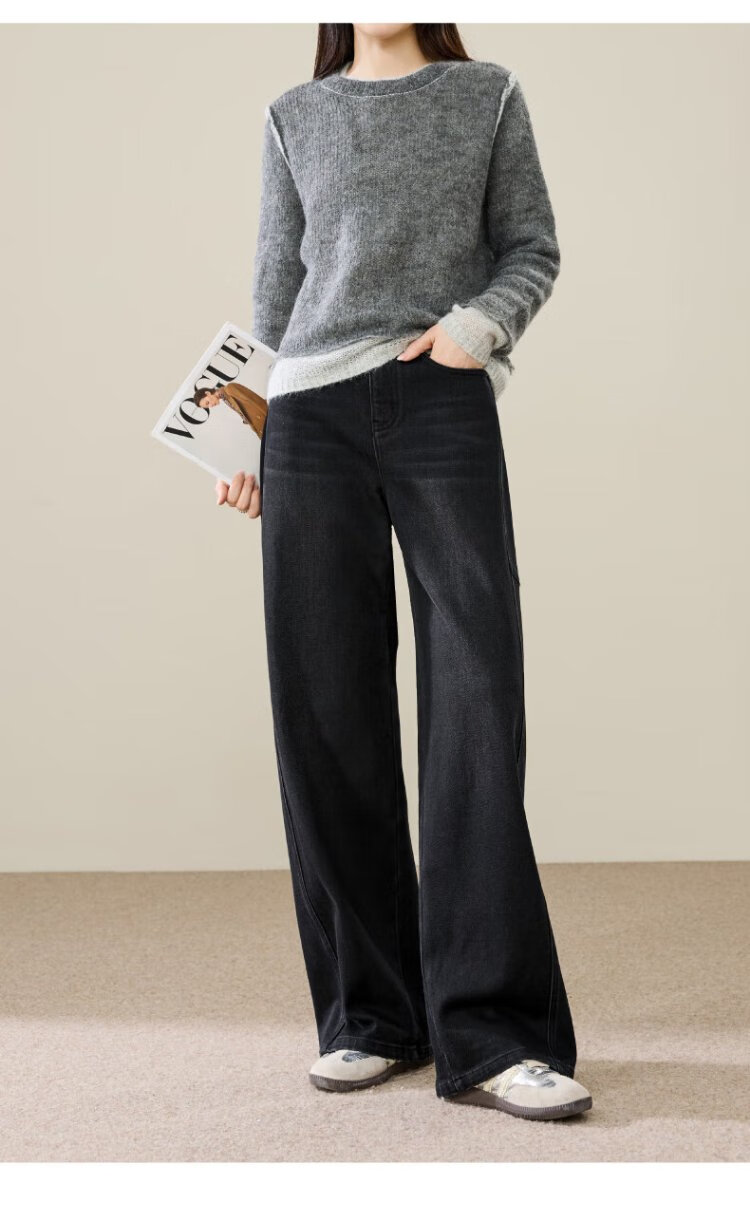 ESE-Y Velvet Scimitar Jeans Women's 2025 Autumn and Winter New Dark Blue Wide Leg Pants Dark Blue 27
