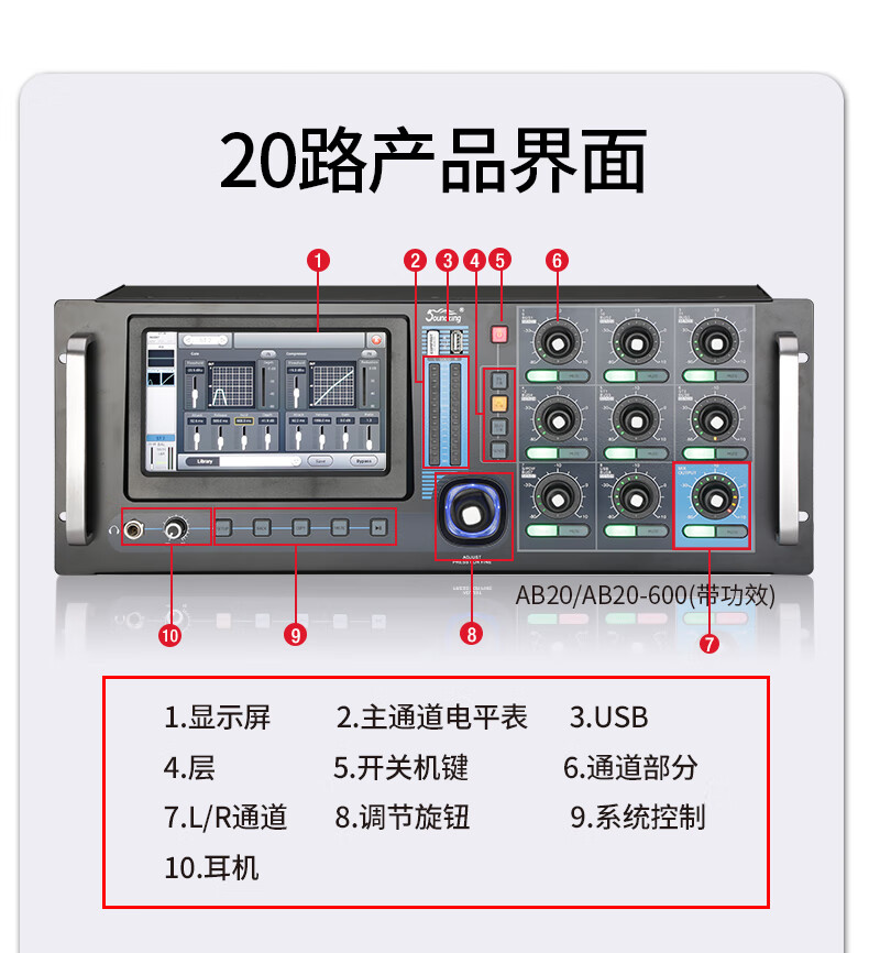 Soundking rack-mounted digital mixer, dedicated digital mixer for stage performances, 20-channel rack-mounted (AB20).