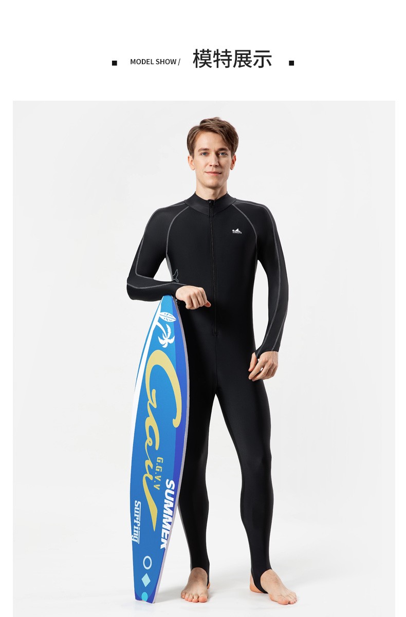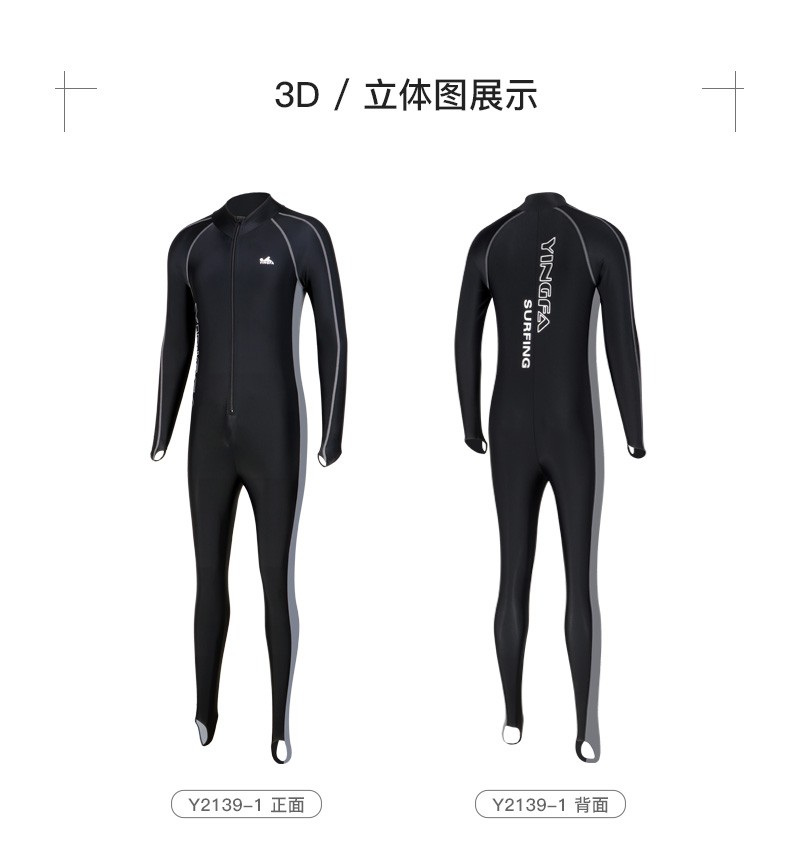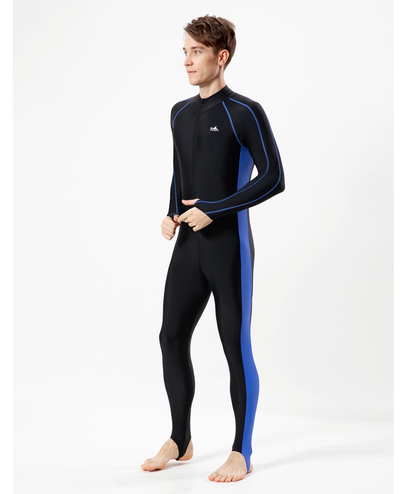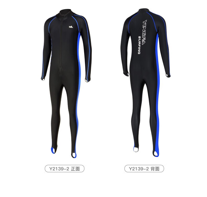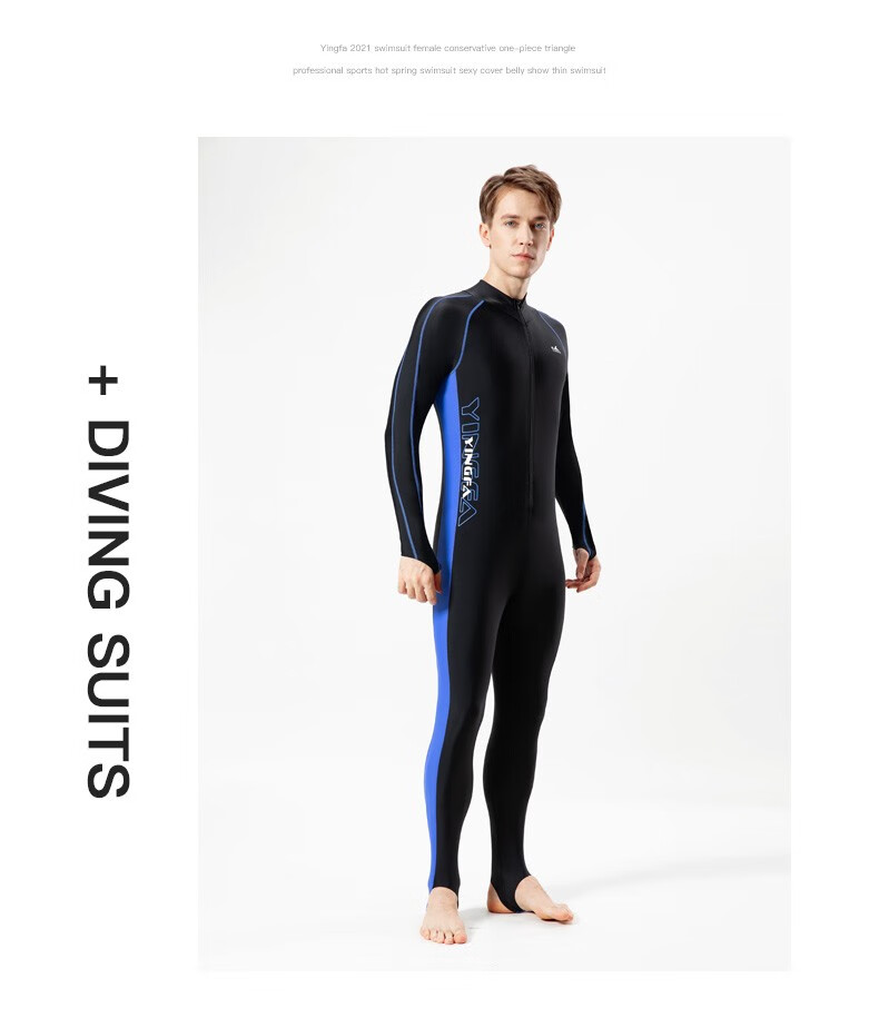 YINGFA Men's full-body one-piece swimsuit, long-sleeved one-piece swimsuit, sun protection jellyfish suit, warm wetsuit Y2139 Y2139-2/black with blue 2XL