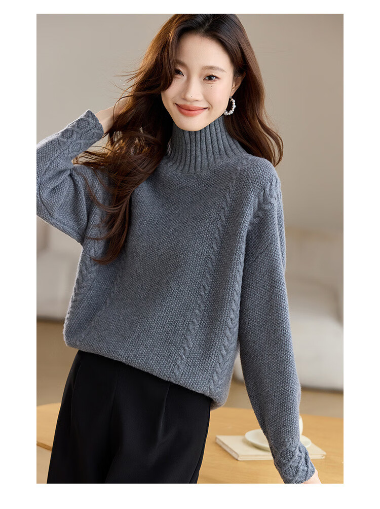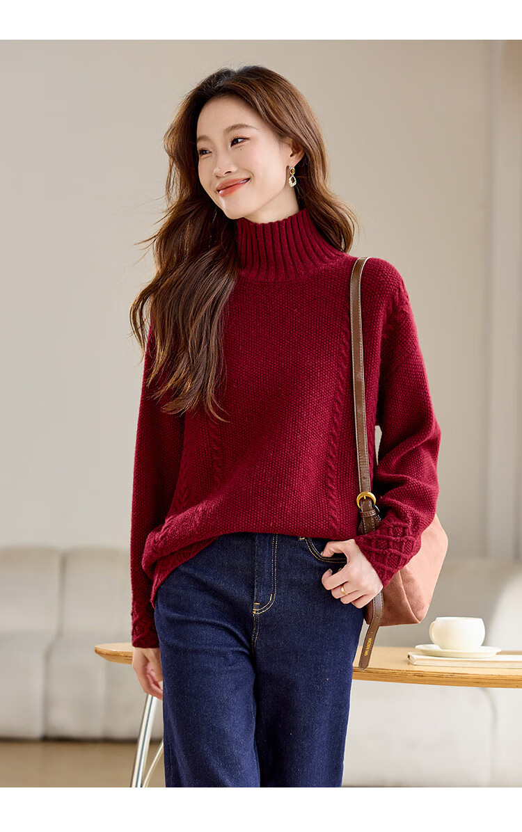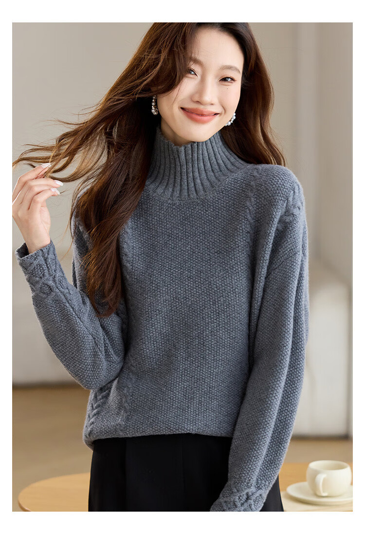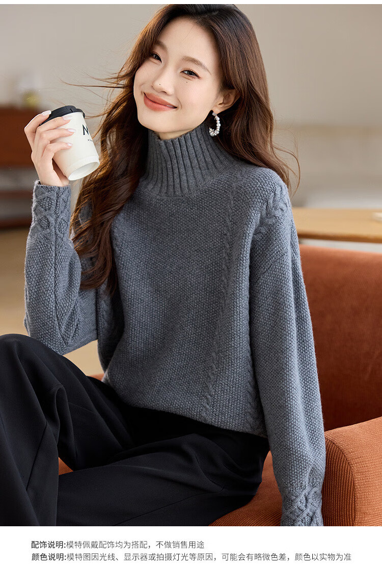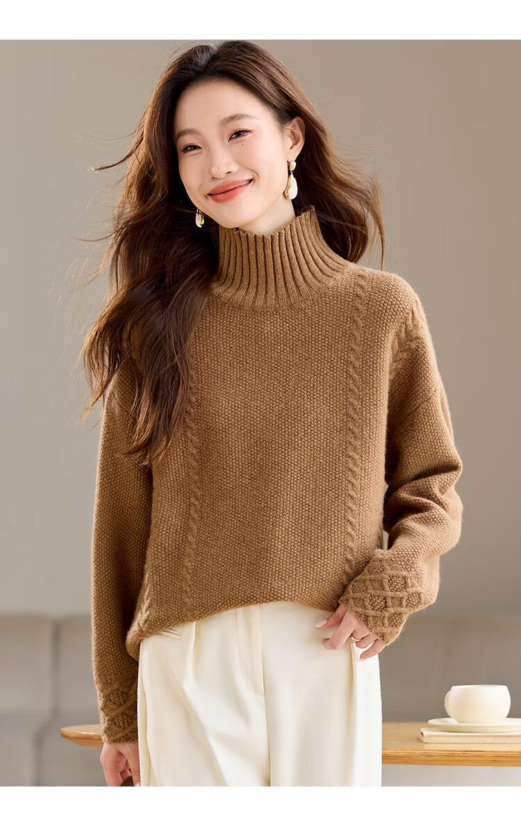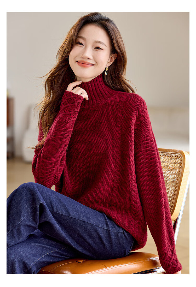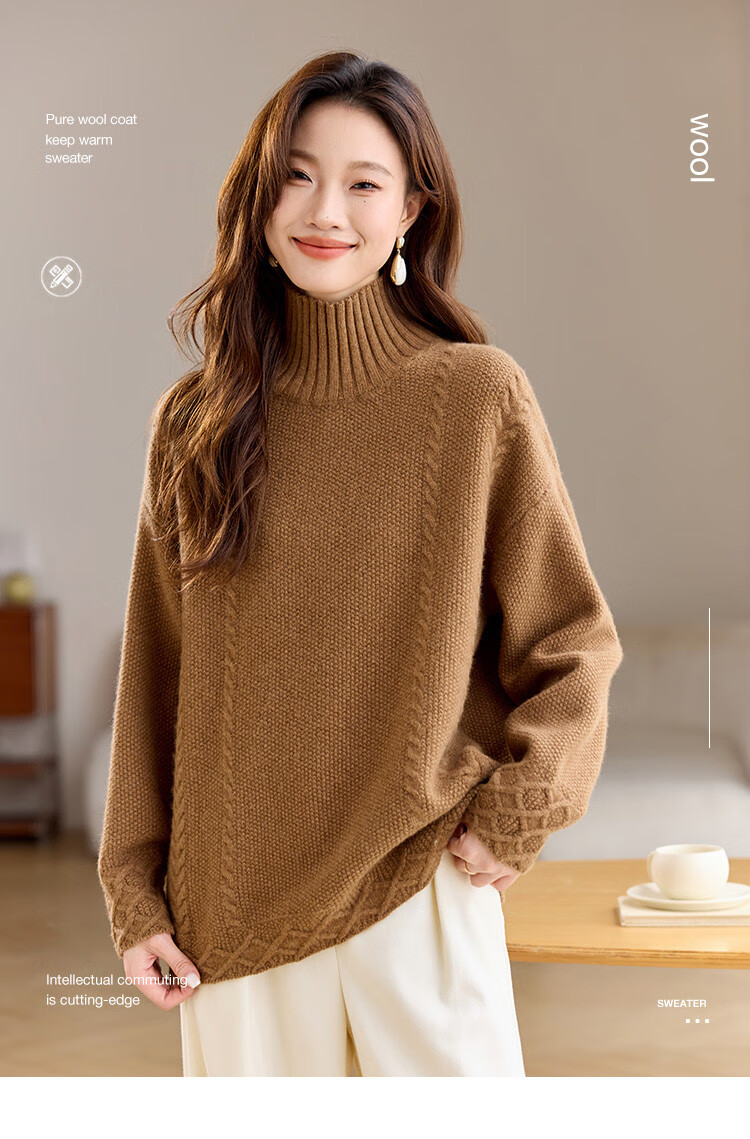 Shexi (Srcr) 500g thick 100% woolen sweater for women, solid color knitted bottoming sweater for autumn and winter wear