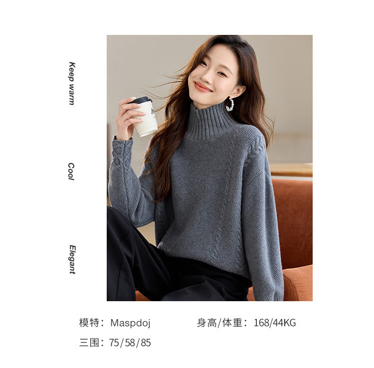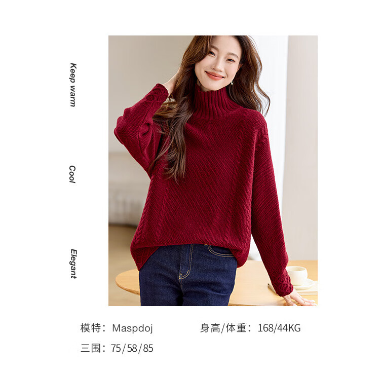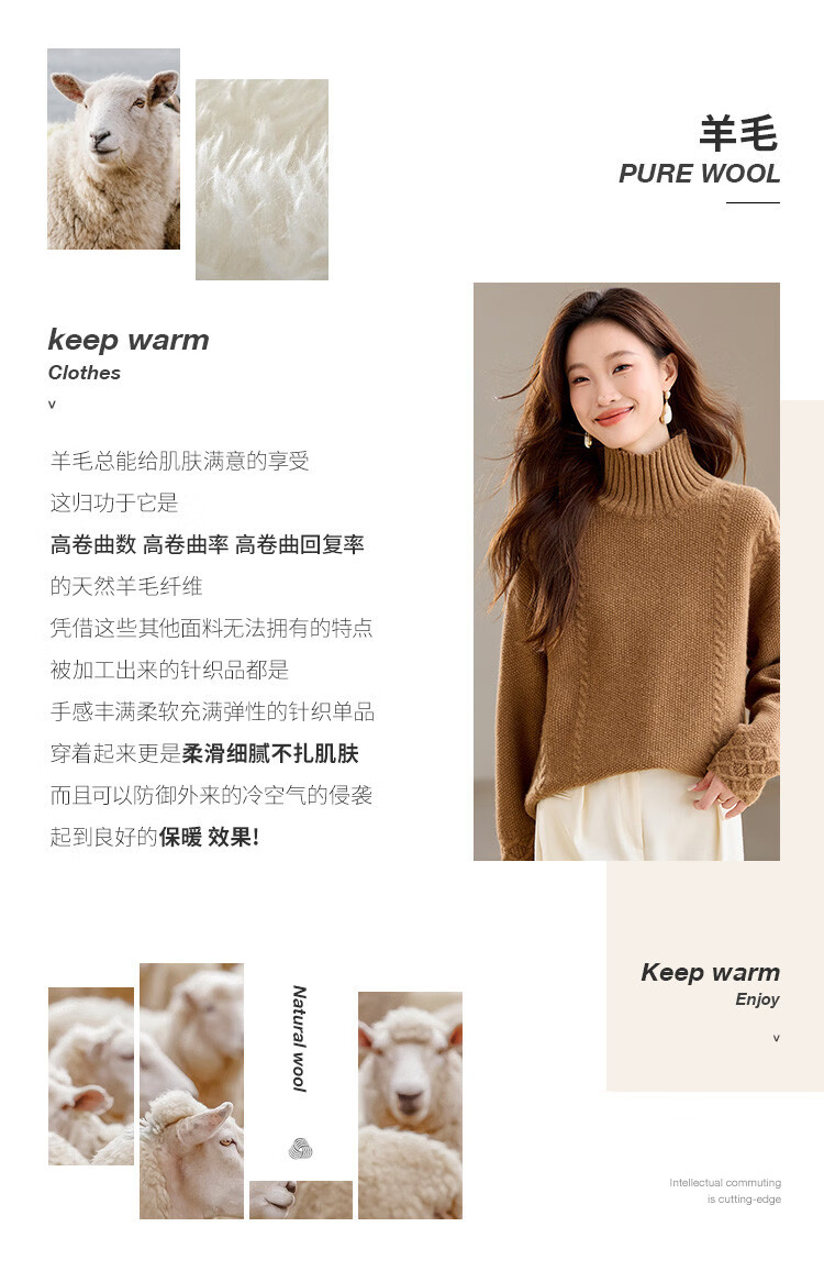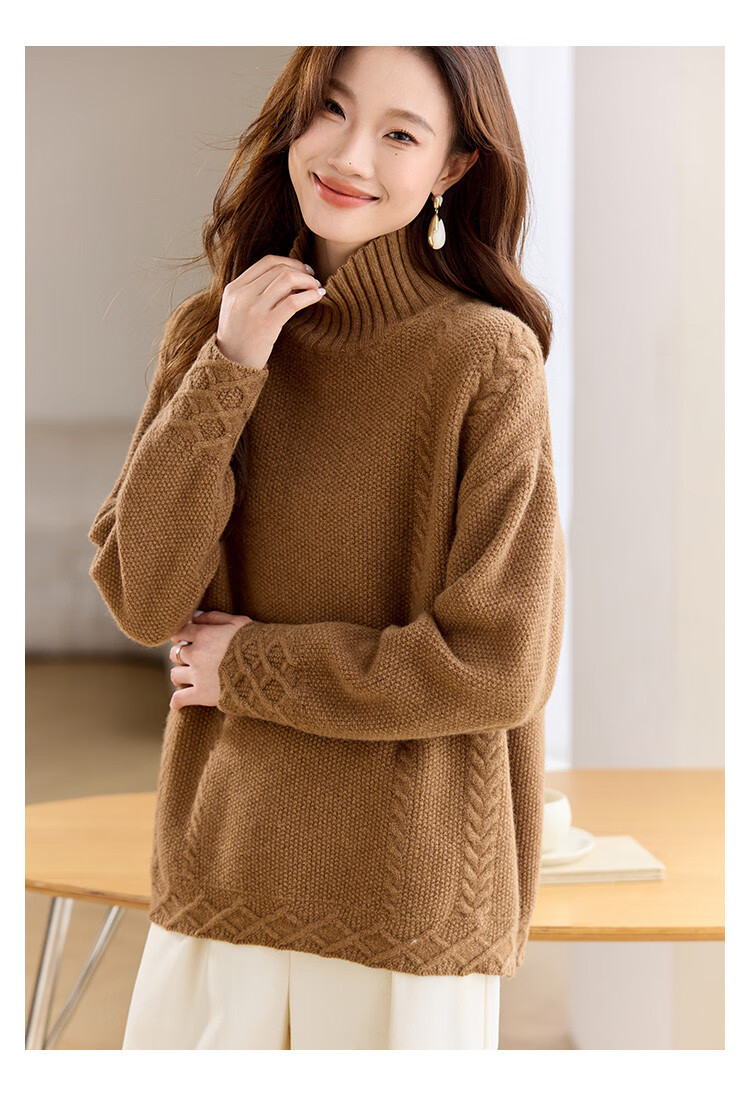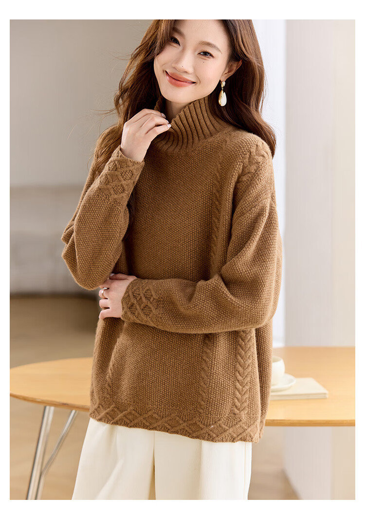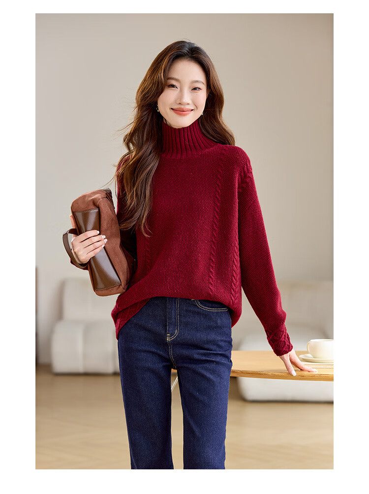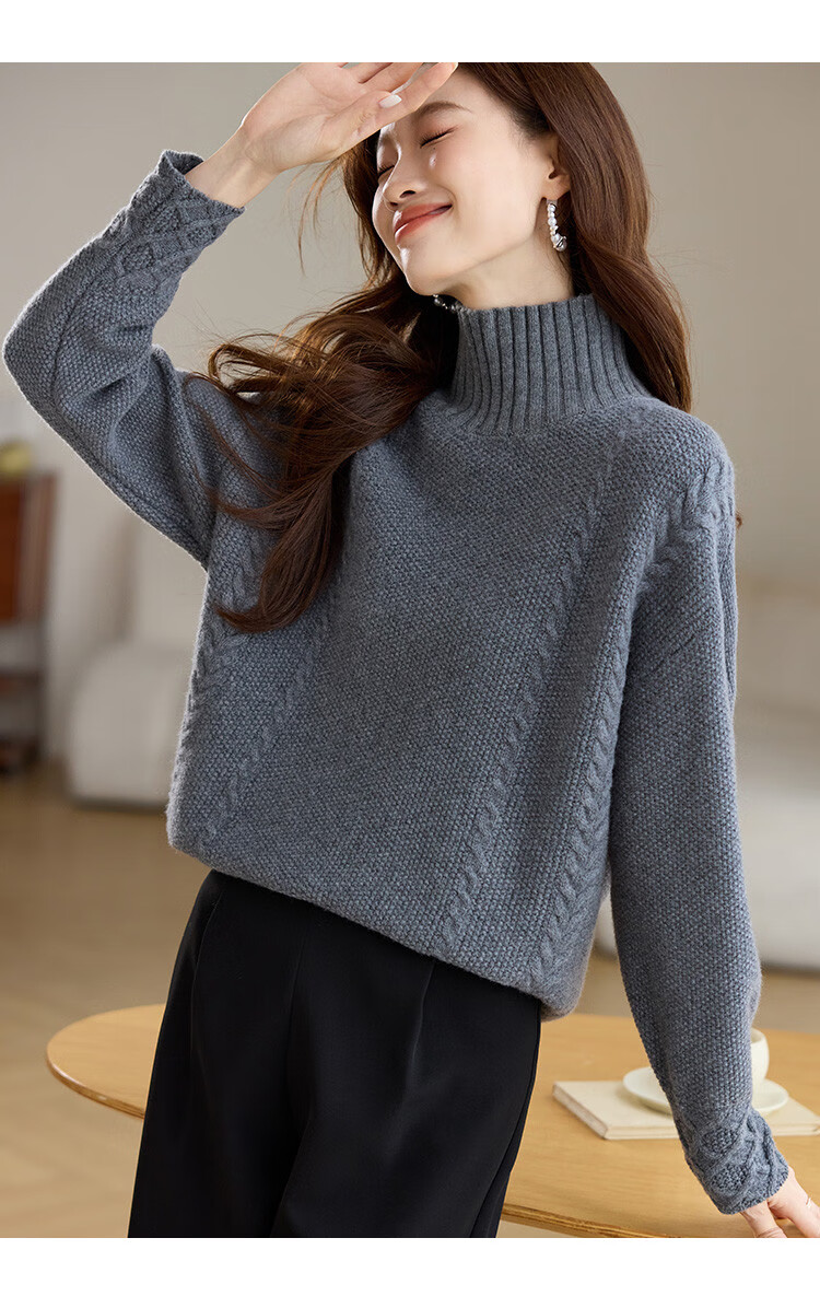 Shexi (Srcr) 500g thick 100% woolen sweater for women, solid color knitted bottoming sweater for autumn and winter wear