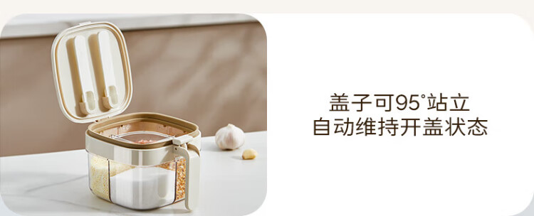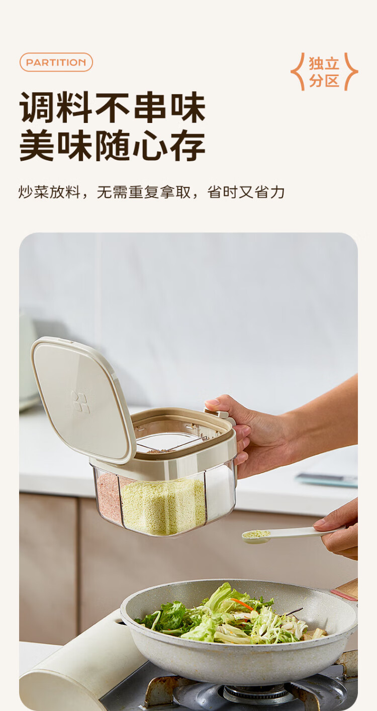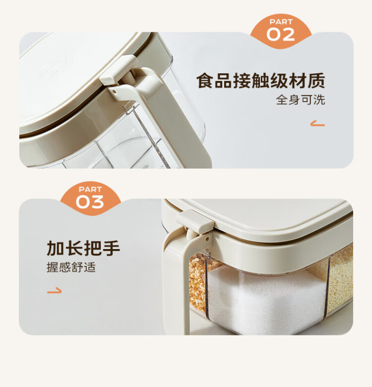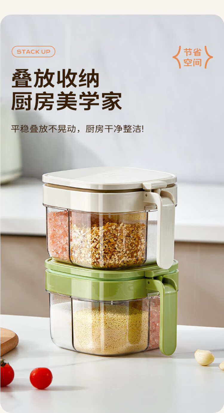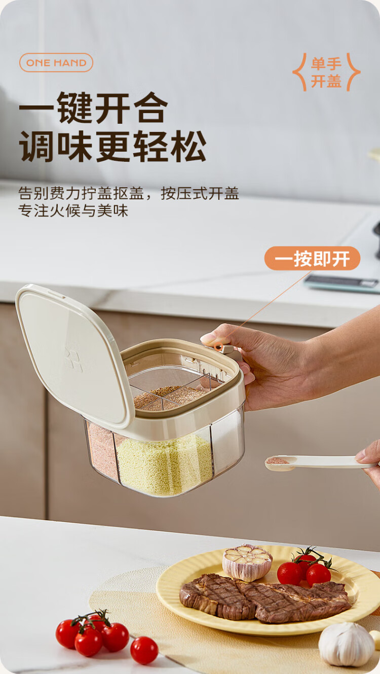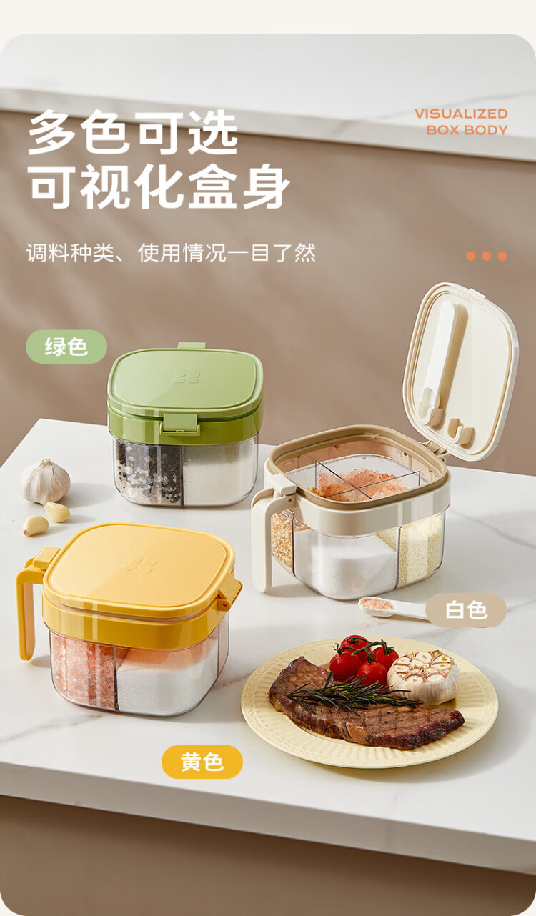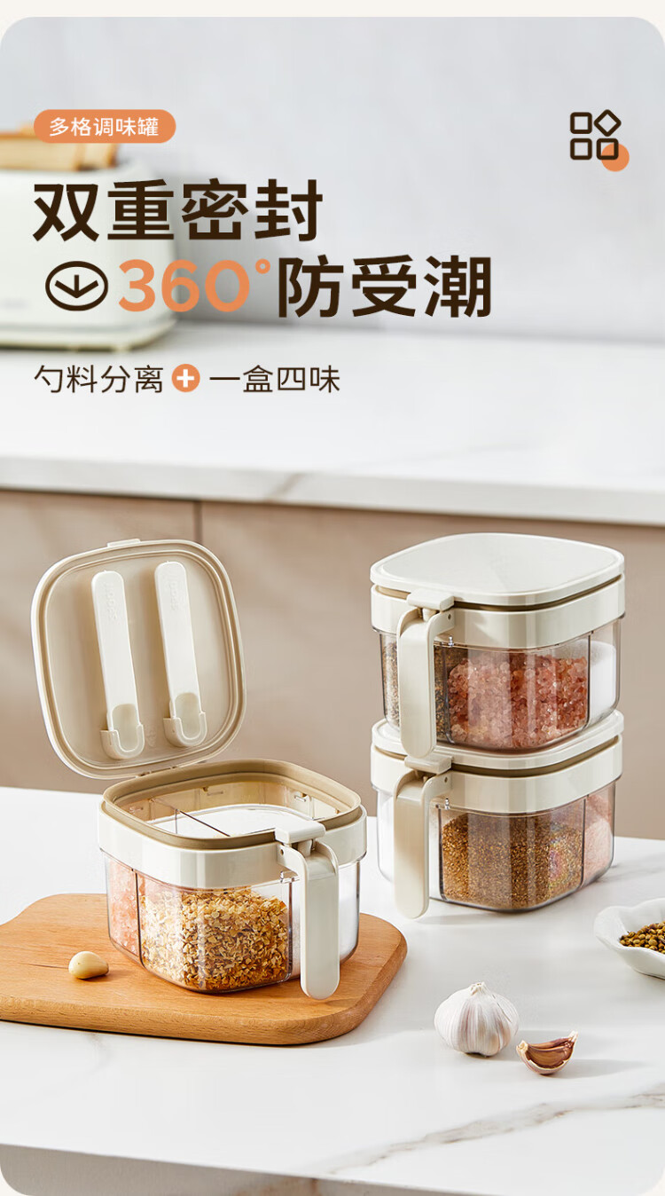 TREEJACK multi-compartment seasoning jar kitchen household salt, sugar, MSG condiment storage square box with lid and spoon moisture-proof seasoning bottle