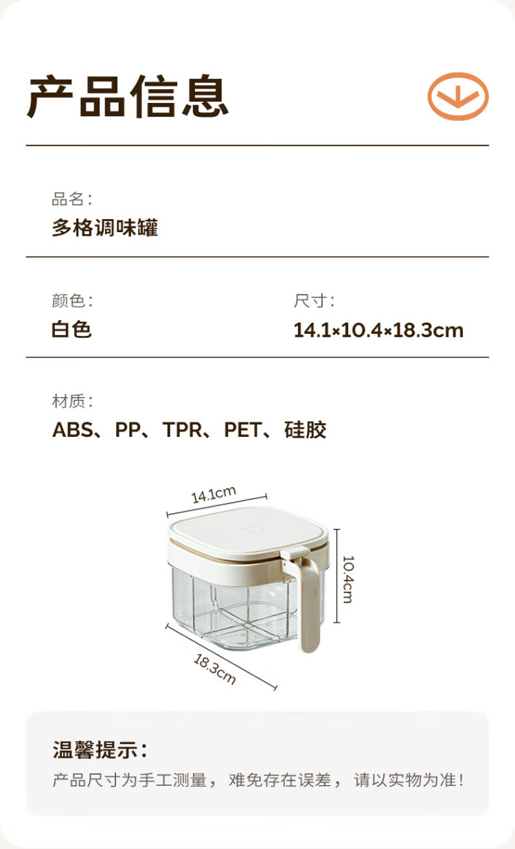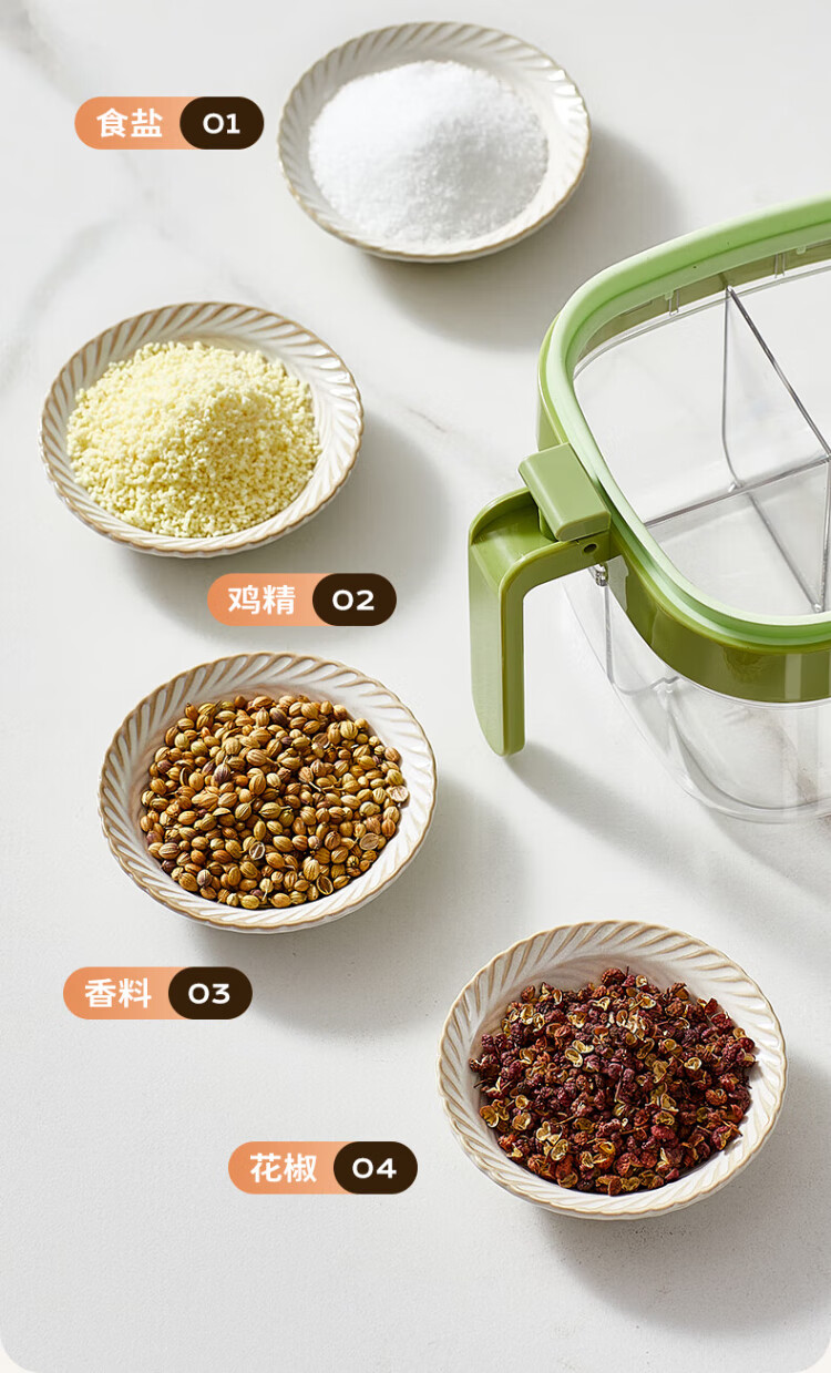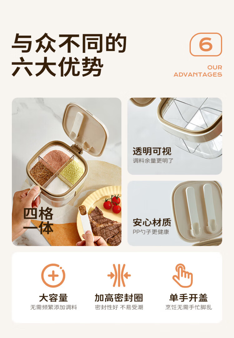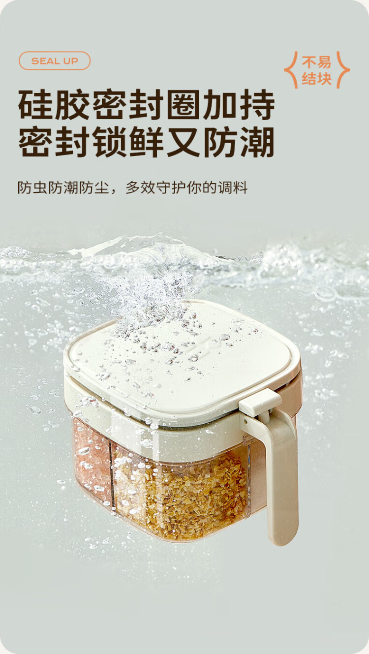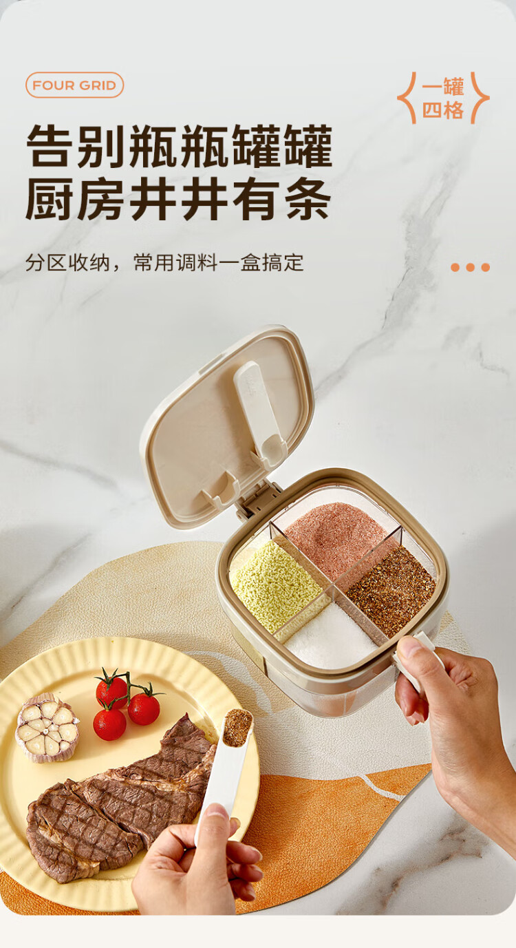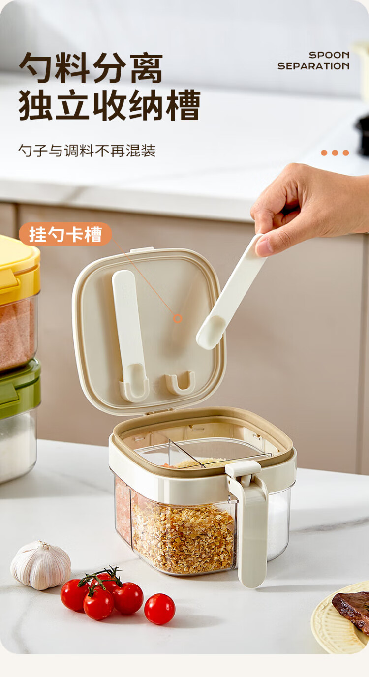TREEJACK multi-compartment seasoning jar kitchen household salt, sugar, MSG condiment storage square box with lid and spoon moisture-proof seasoning bottle