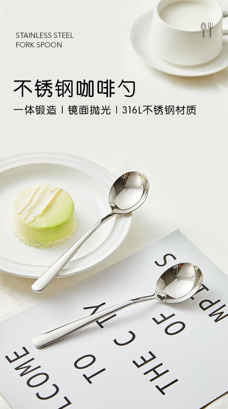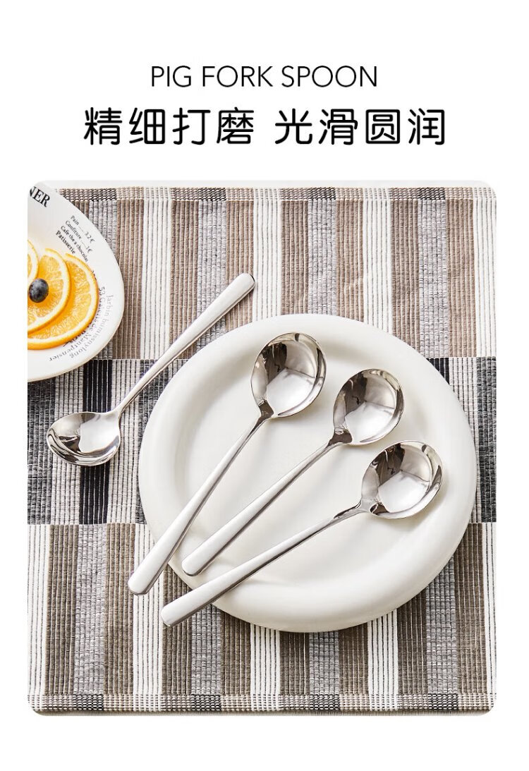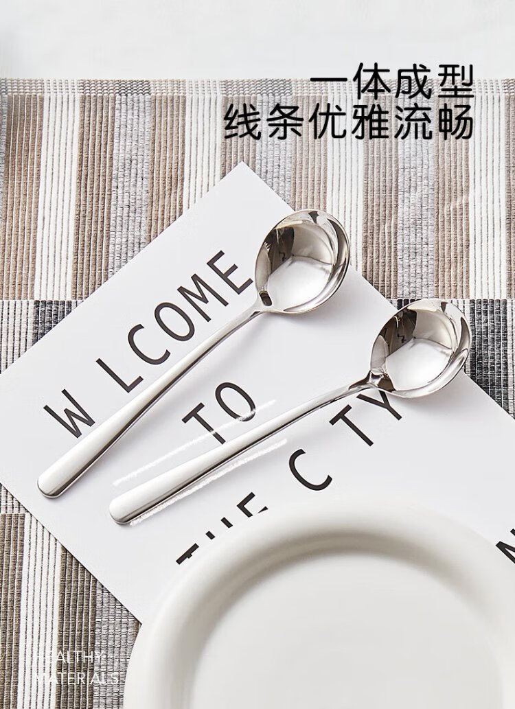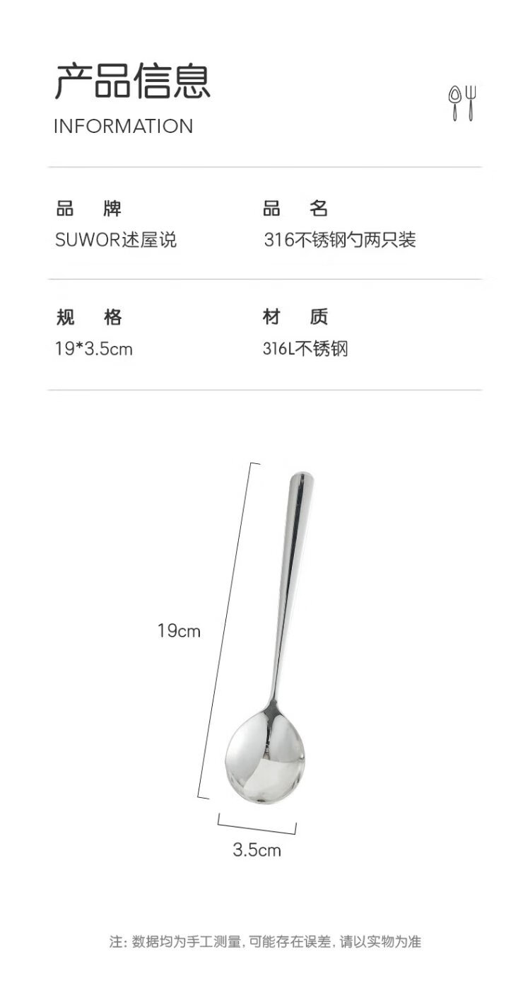 Shuwushuo 316L stainless steel spoon, food-grade soup spoon, enlarged and thickened round bottom table spoon, two pairs