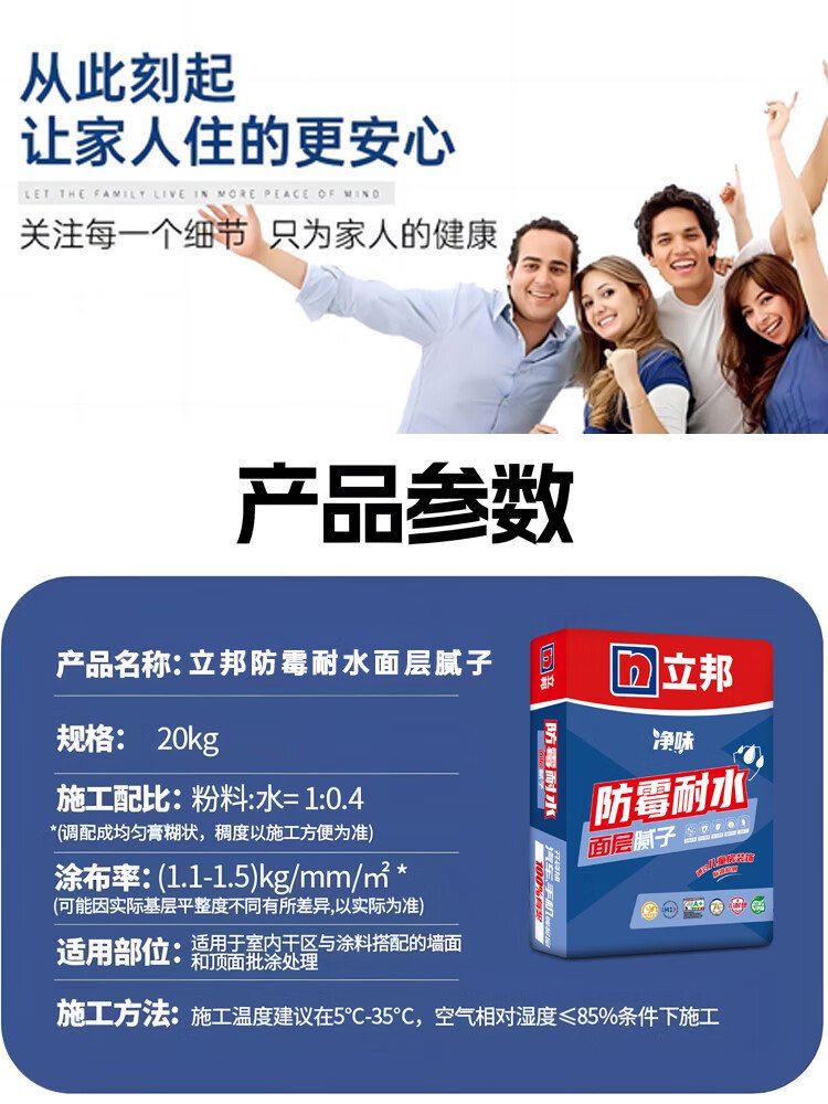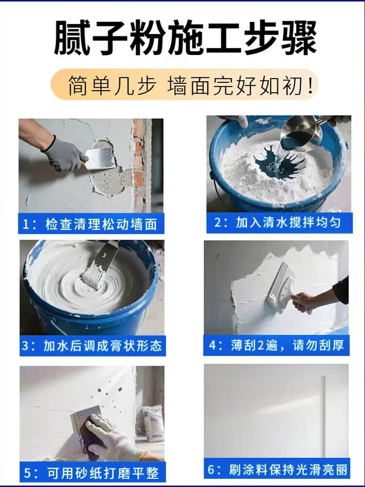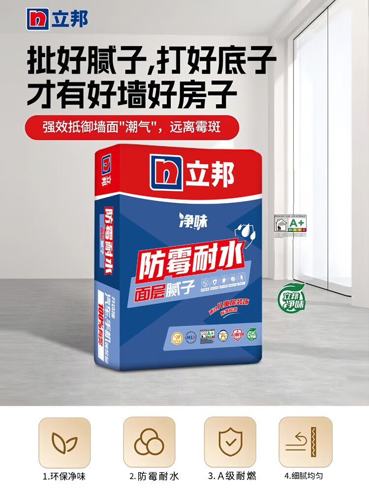 Nippon Paint's odor-free, mildew-proof, water-resistant putty powder has high bonding strength, alkali resistance, and is also suitable for humid environments. Indoor wall putty powder (20kg/pack)