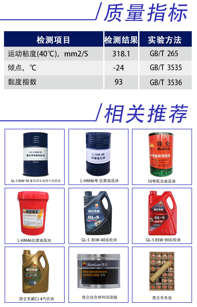 Kunlun L-CKC320 industrial closed gear oil medium load lubricant 170kg/200L