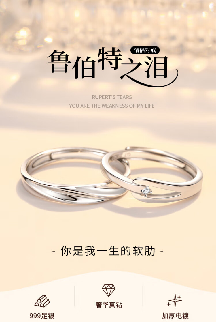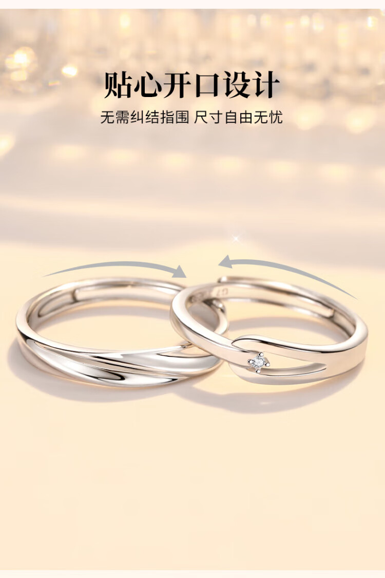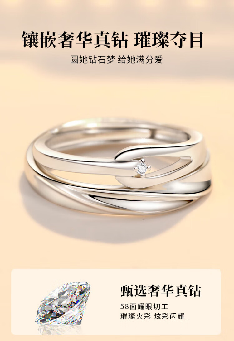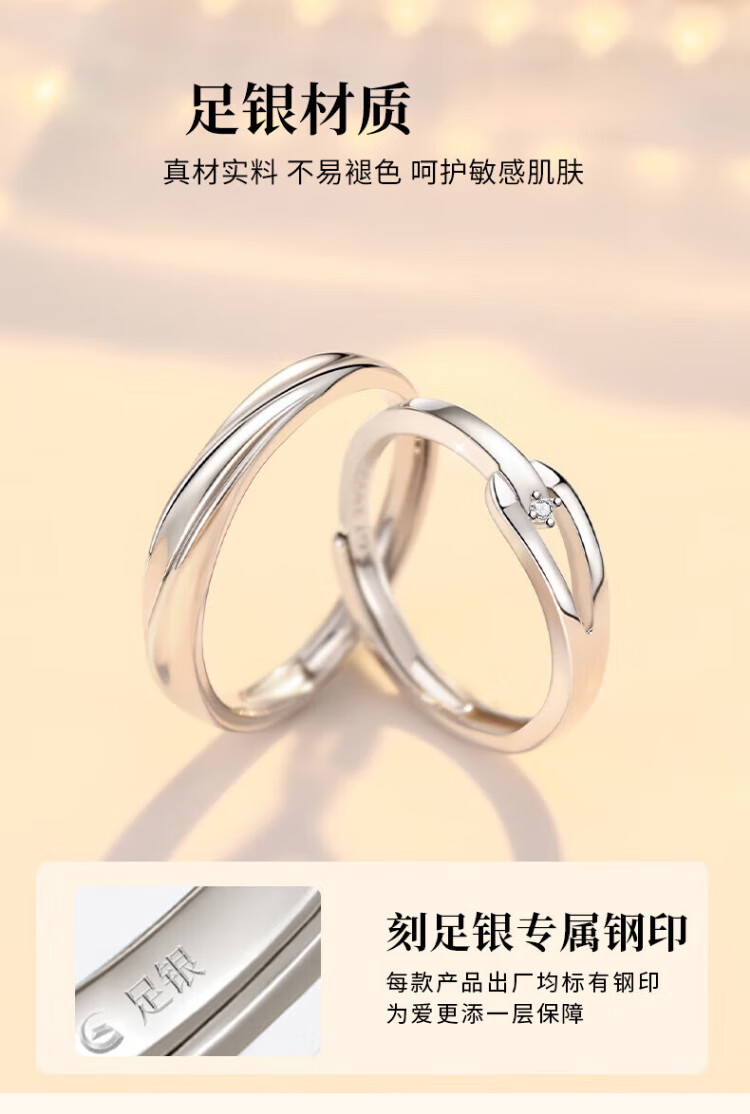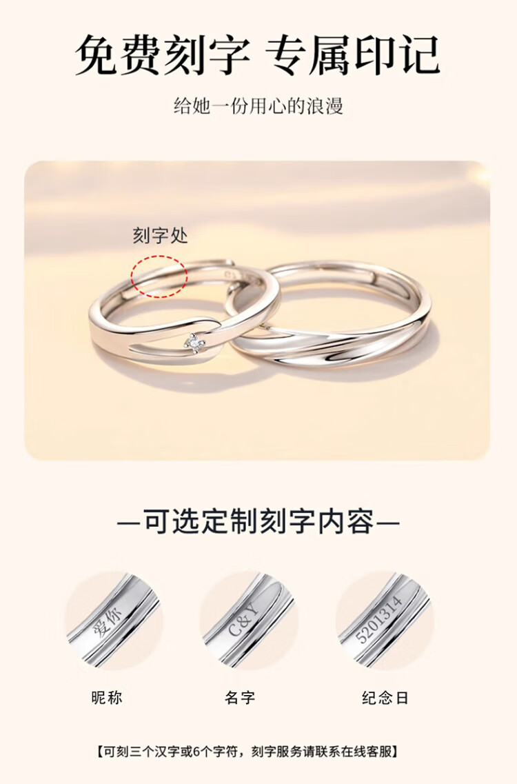 Chinese gold diamond couple ring female pair ring pure silver 999 male ring female ring proposal birthday gift for girlfriend girlfriend