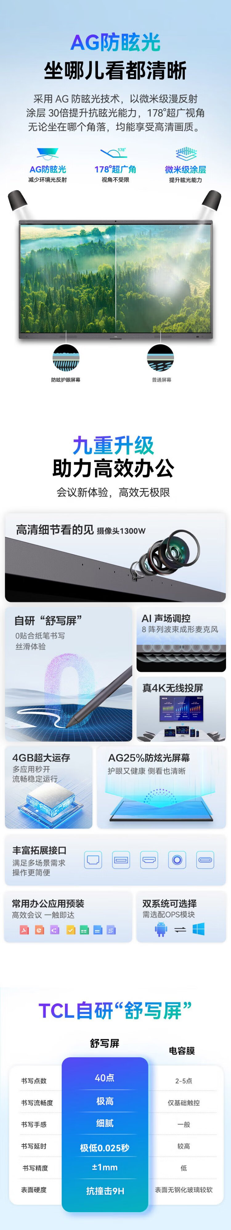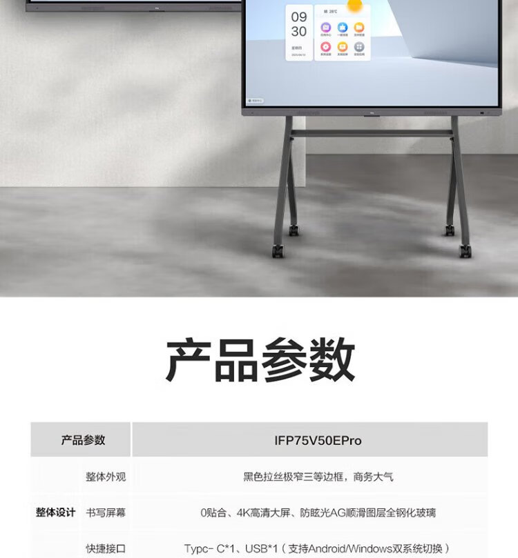 TCL conference tablet all-in-one 75-inch touch TV whiteboard wireless screen projection teaching training smart TV commercial office IFP75V50Epro