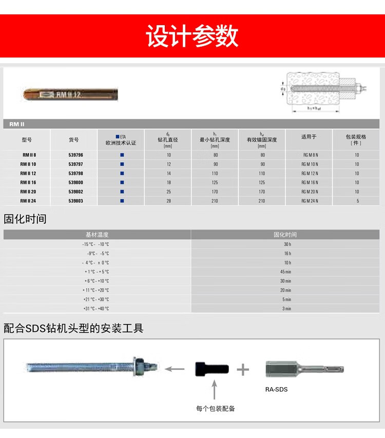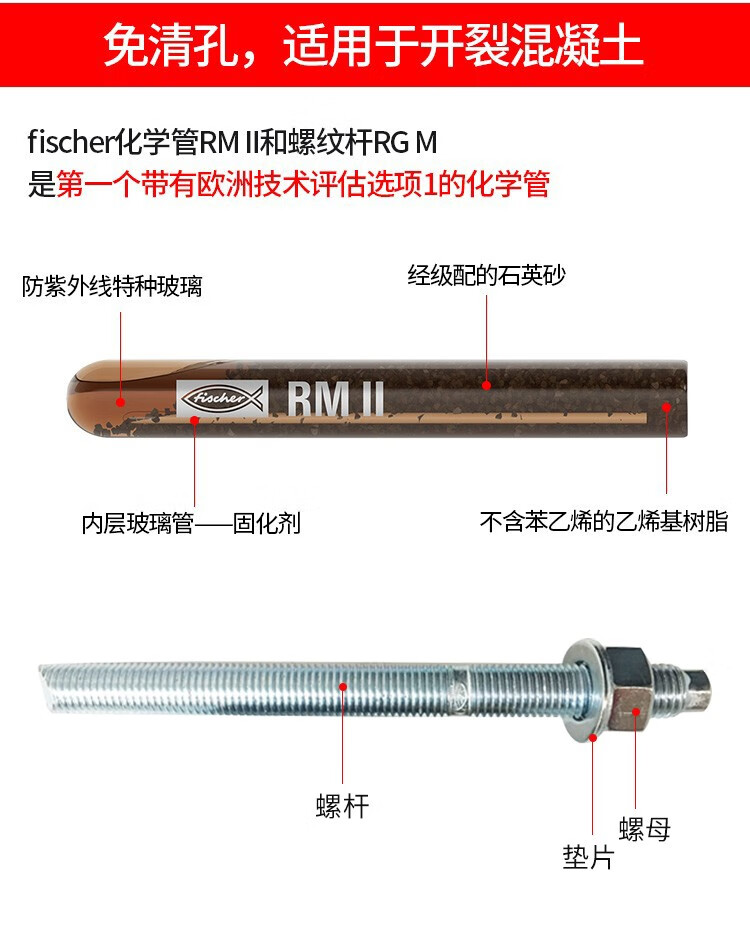 Ruilishi Fischer chemical anchor bolt imported from Germany stainless steel carbon steel chemical bolt screw M12M16M20 steel anchor M16*125/190 agent + screw (carbon steel)