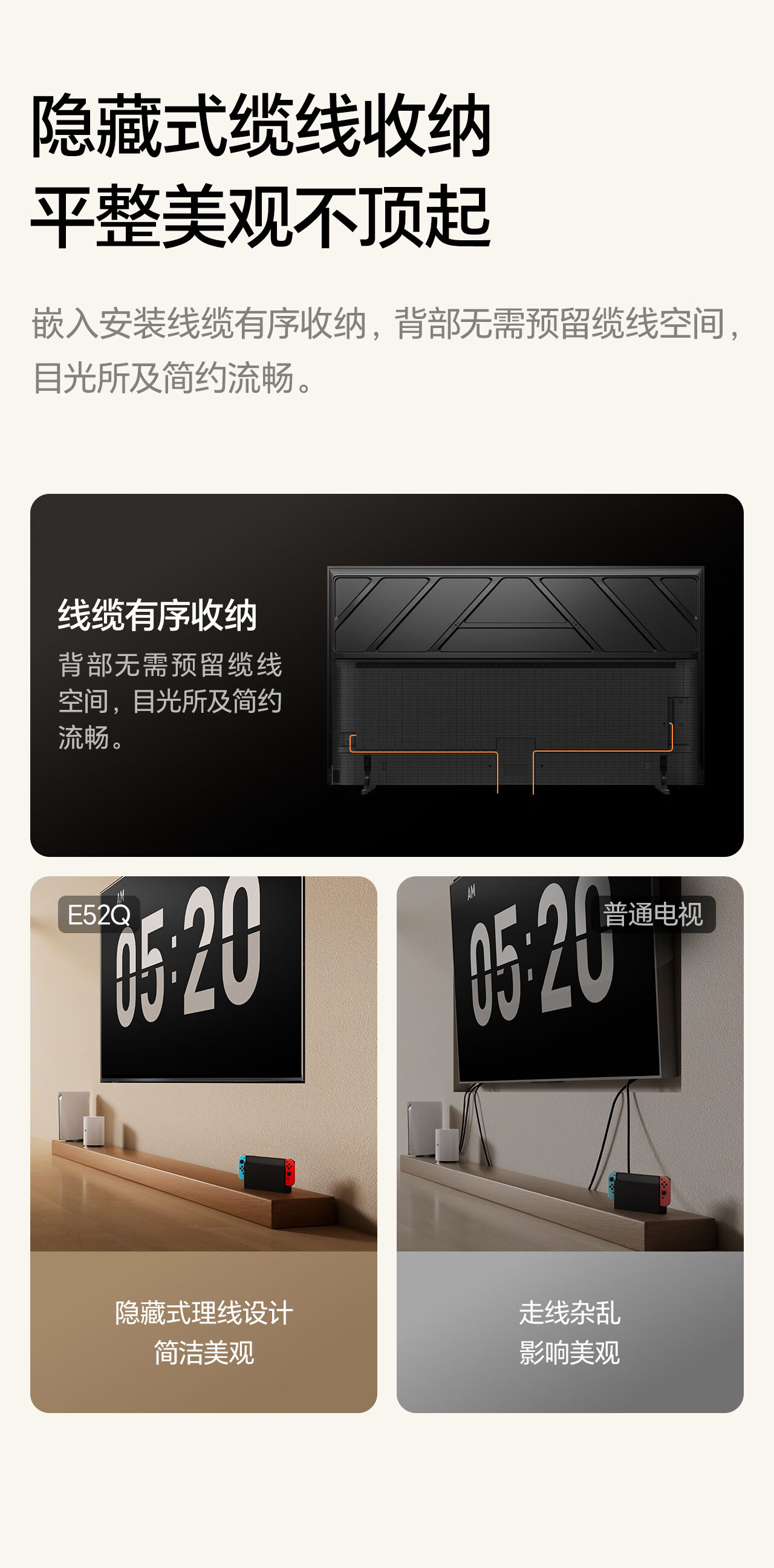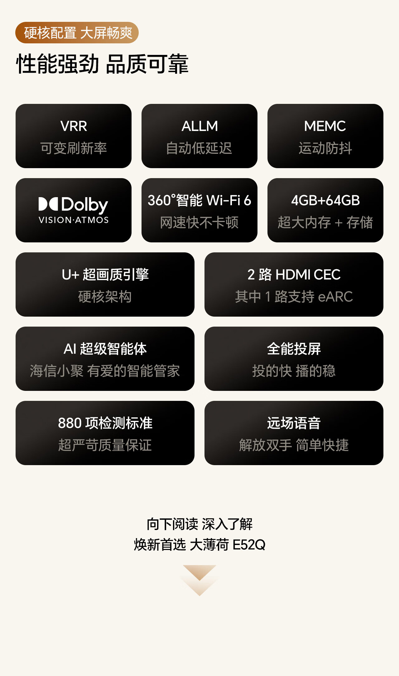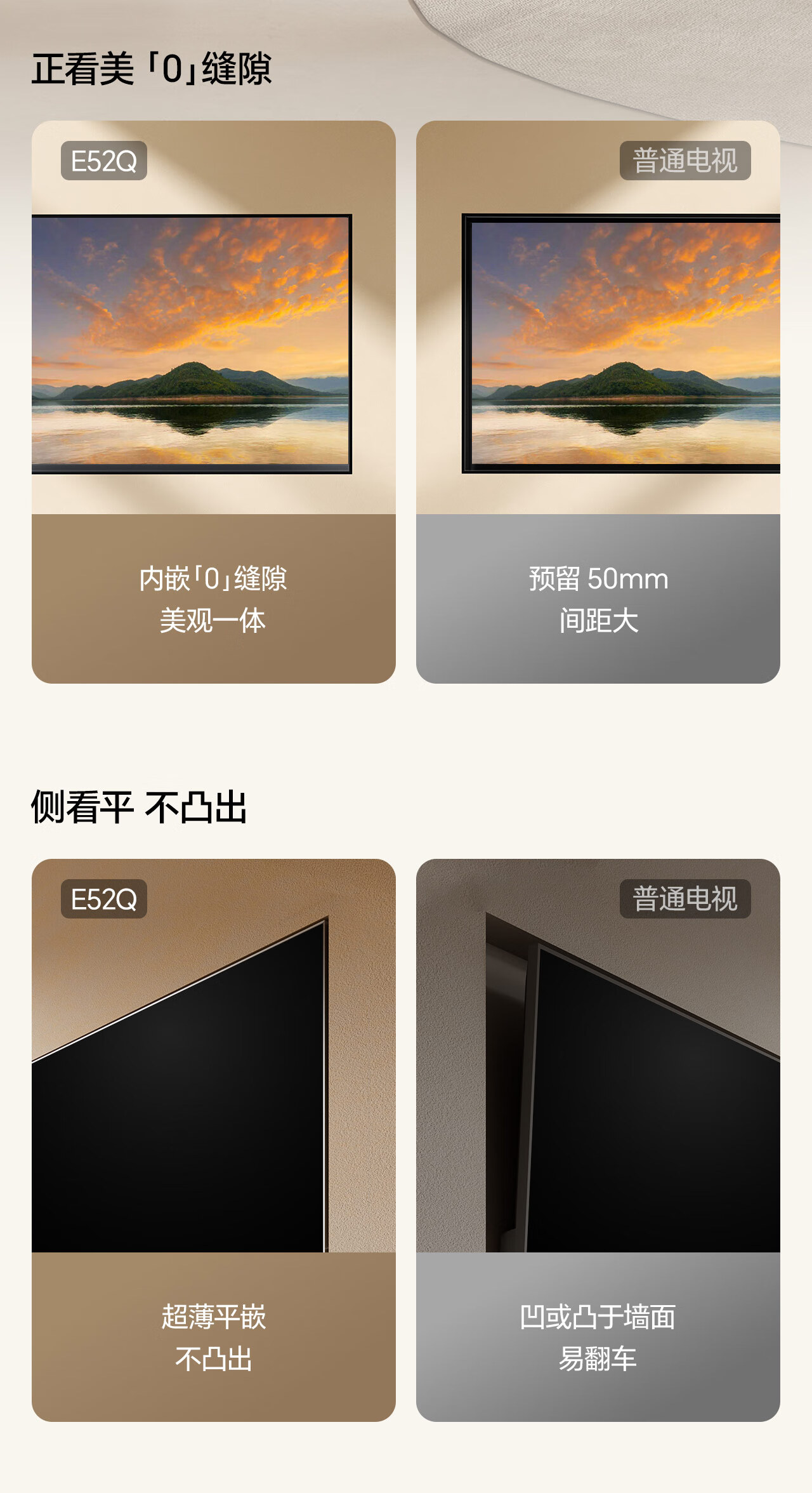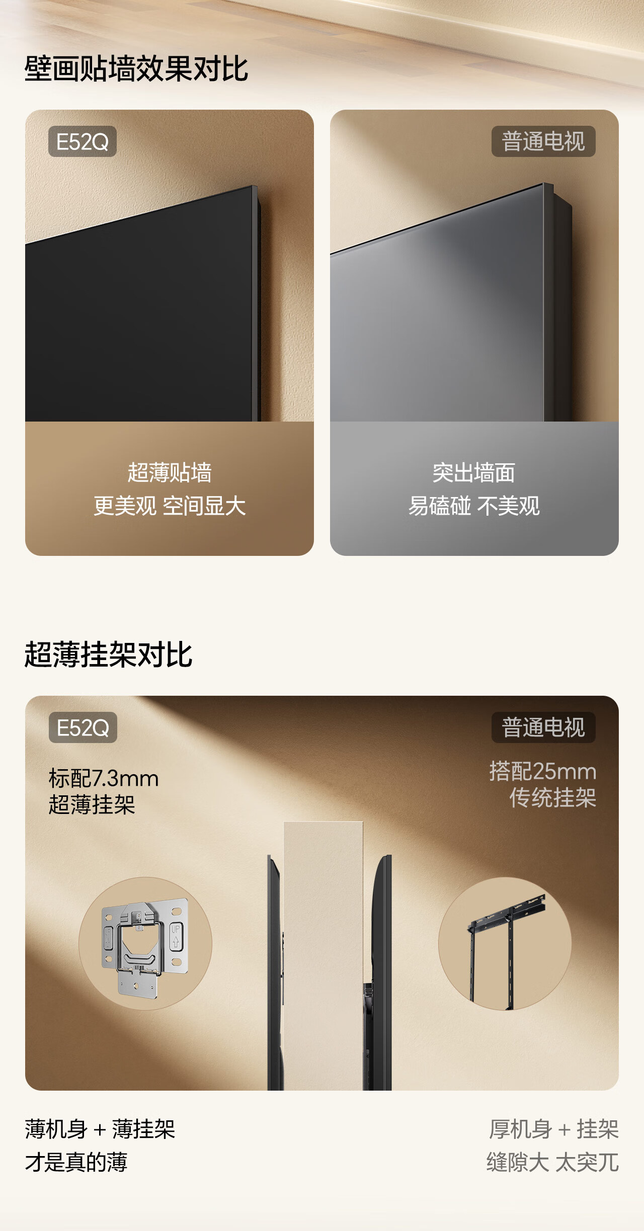 Hisense TV Big Mint E52Q 65 inches, ultra-thin wall-mounted, no reflection, low reflection screen, front sound bar, super picture quality U+MiniLED state-subsidized wallpaper TV 65E52Q