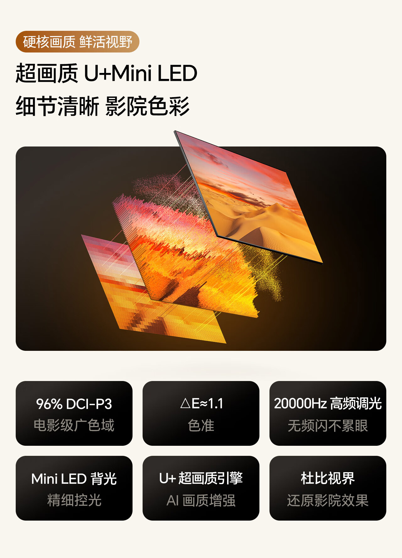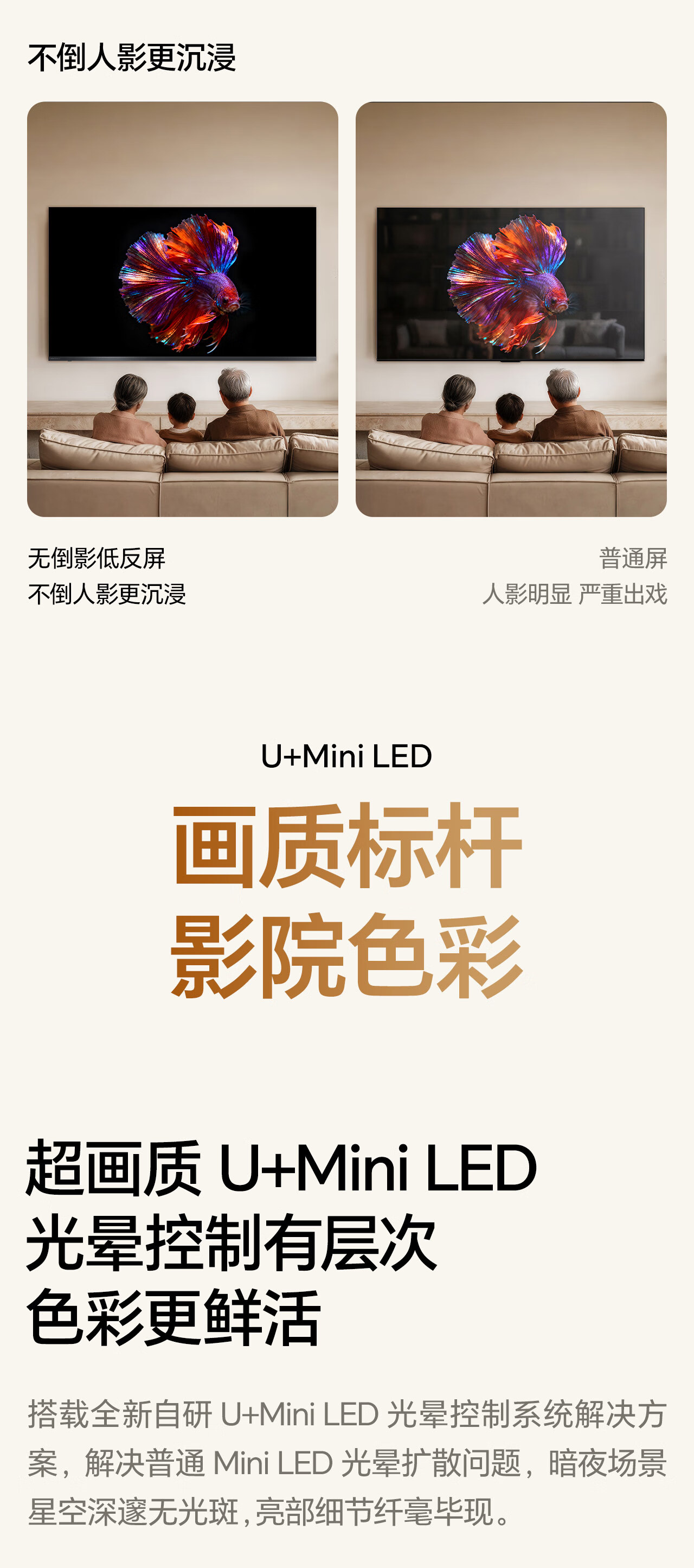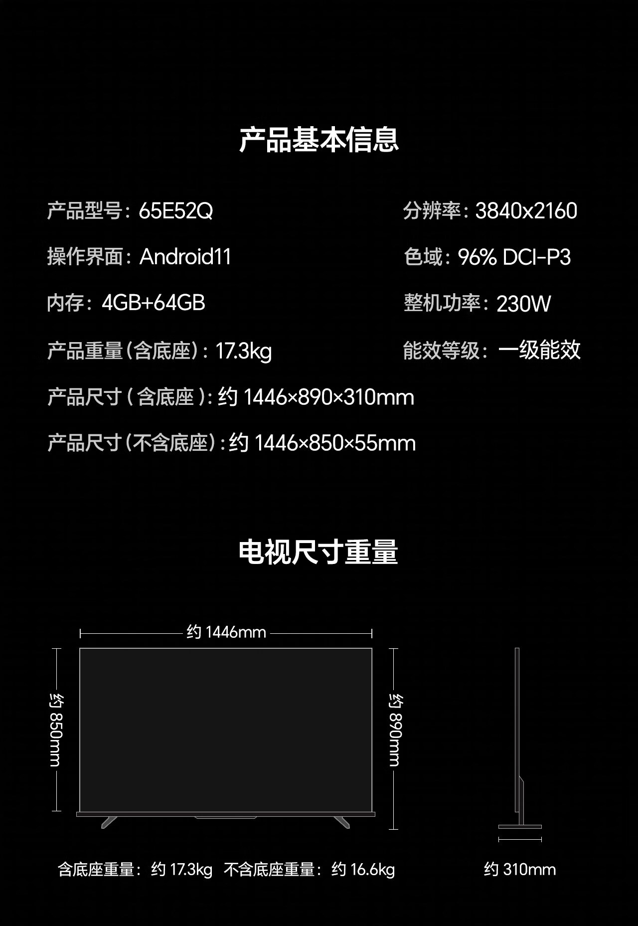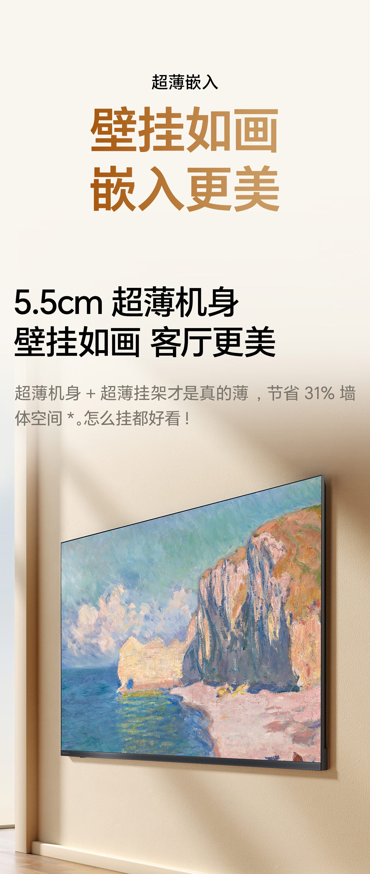 Hisense TV Big Mint E52Q 65 inches, ultra-thin wall-mounted, no reflection, low reflection screen, front sound bar, super picture quality U+MiniLED state-subsidized wallpaper TV 65E52Q