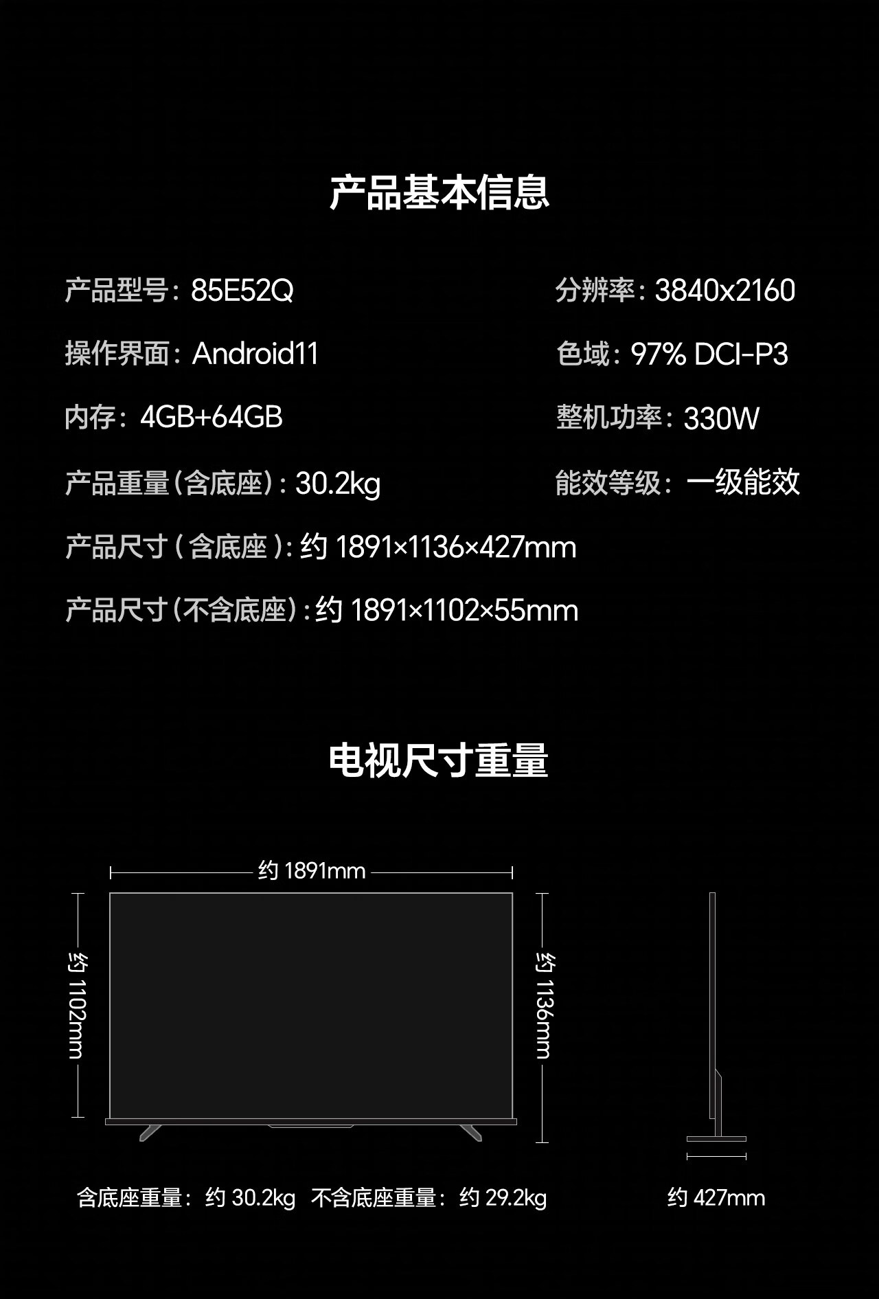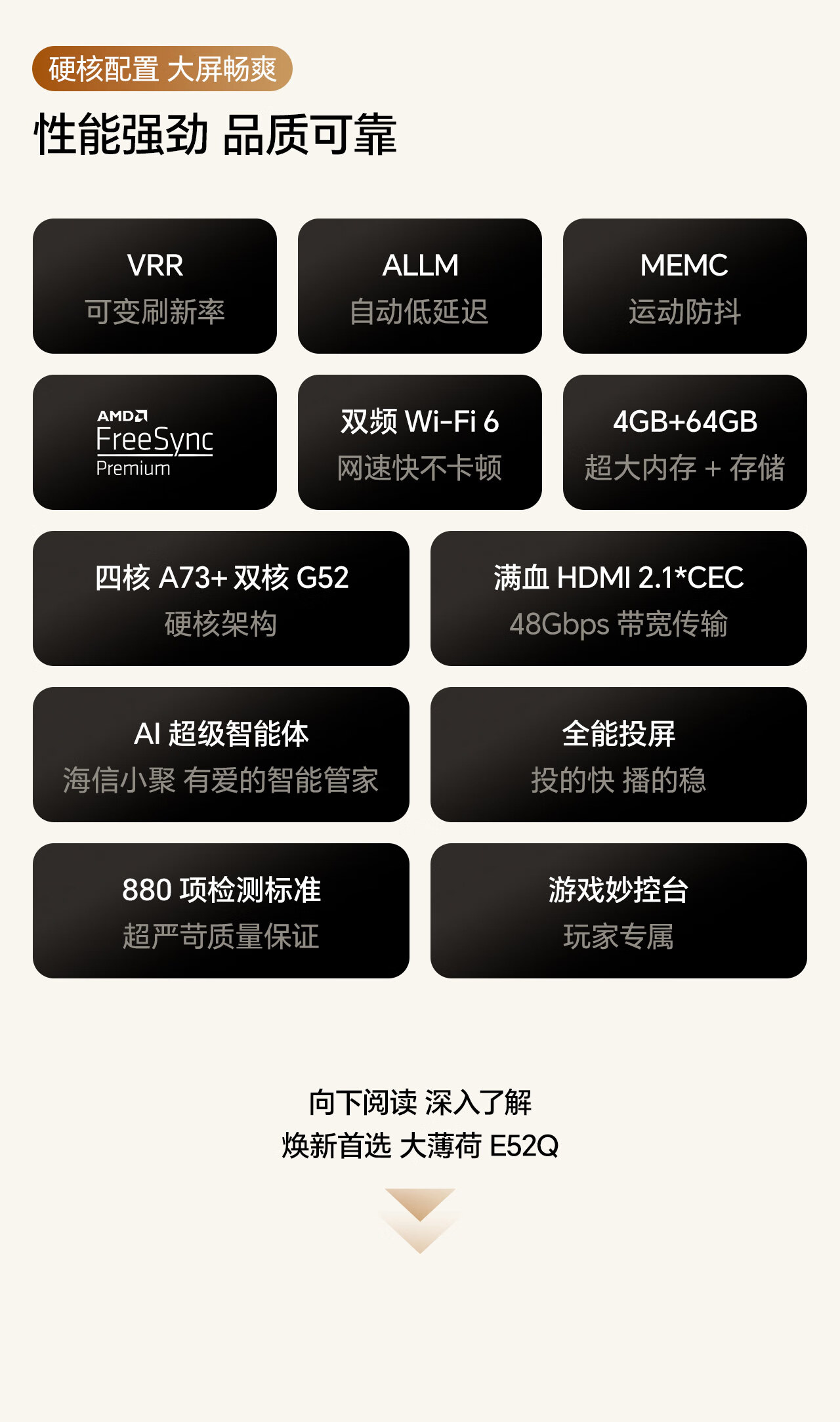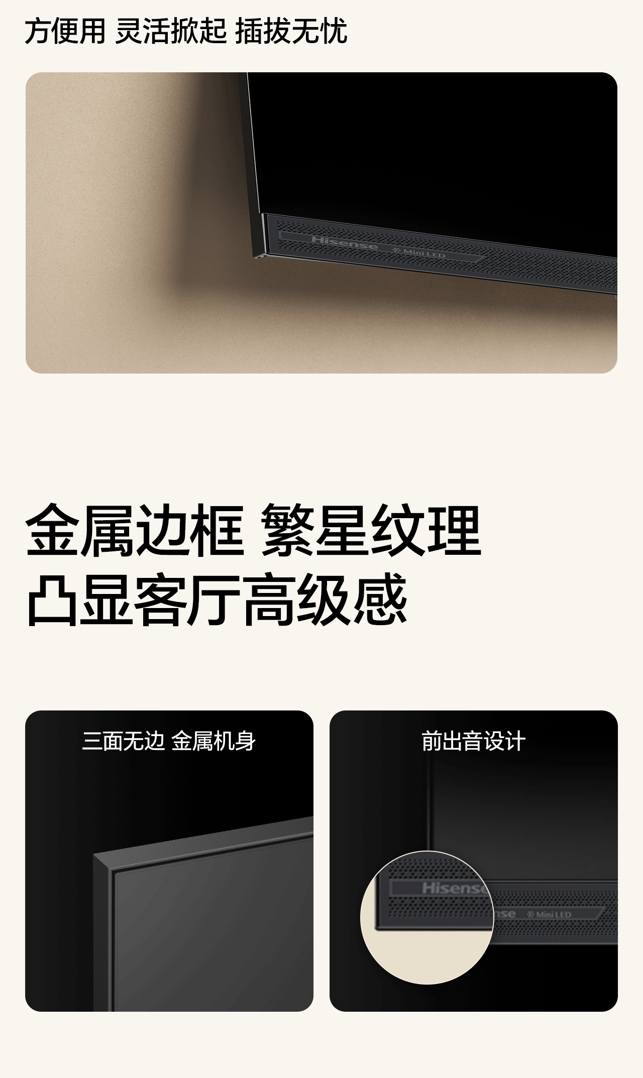 Hisense TV Big Mint E52Q 85 inches, ultra-thin wall-mounted, no reflection, low reflection screen, front sound bar, super picture quality U+MiniLED state-subsidized wallpaper TV 85E52Q