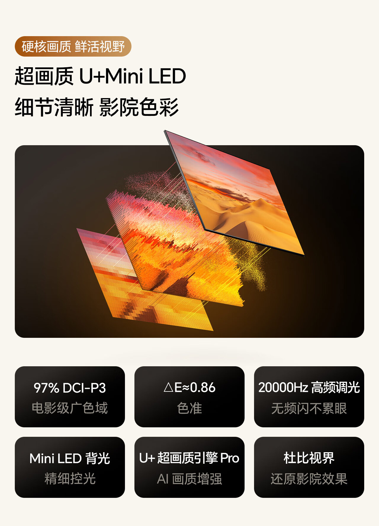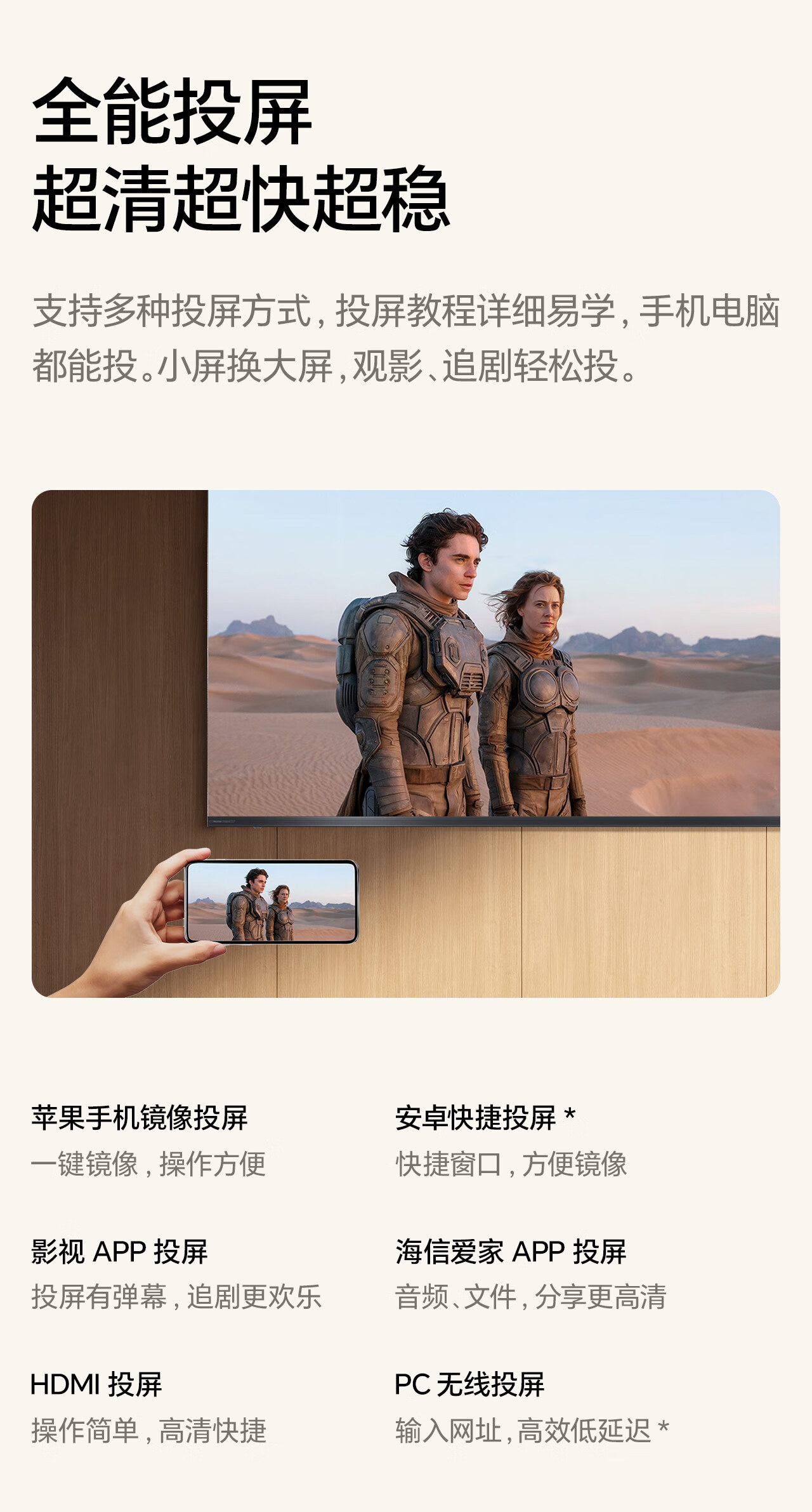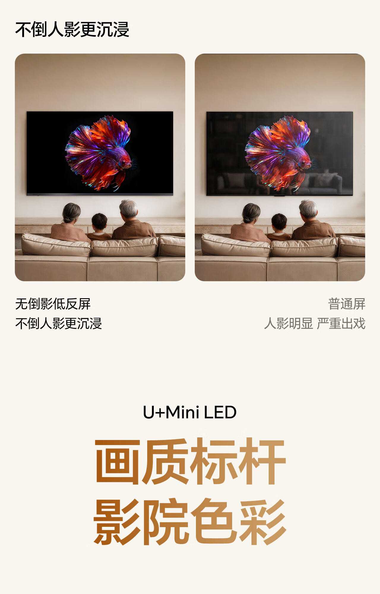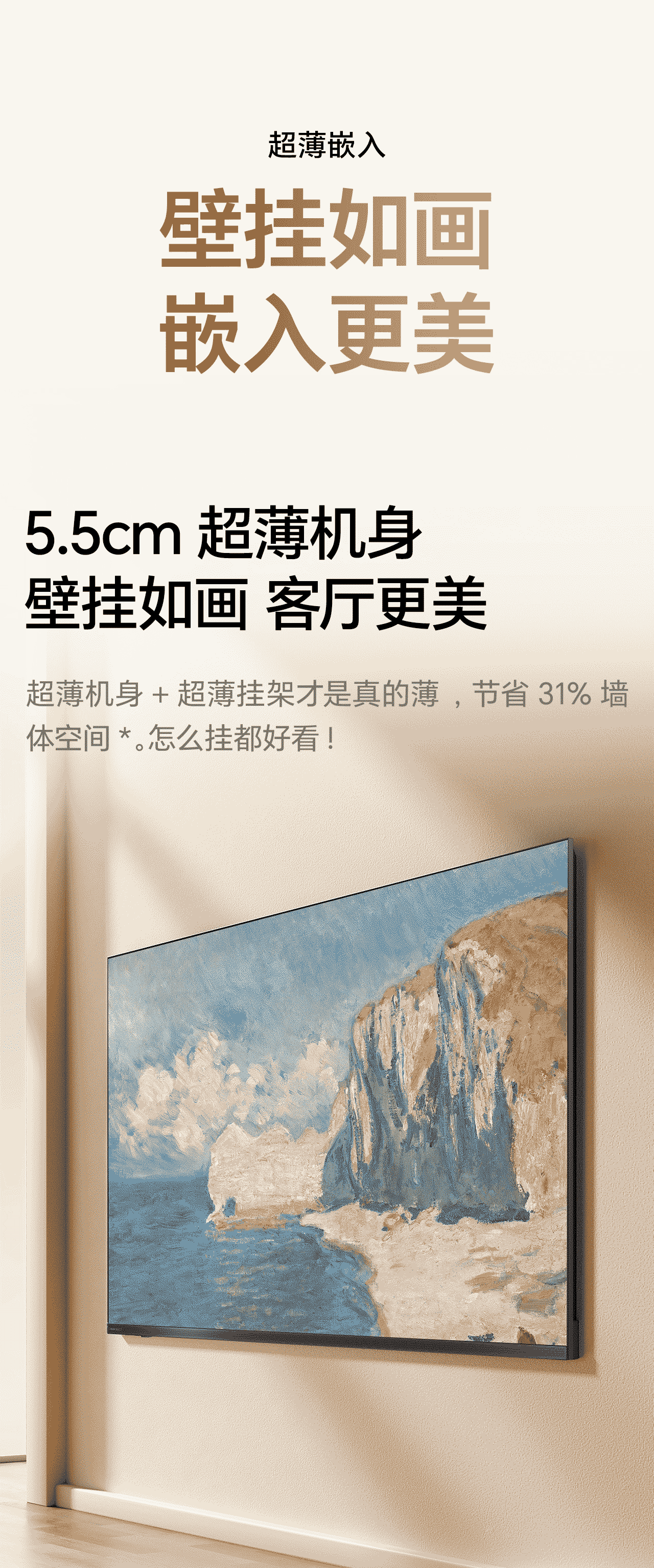 Hisense TV Big Mint E52Q 85 inches, ultra-thin wall-mounted, no reflection, low reflection screen, front sound bar, super picture quality U+MiniLED state-subsidized wallpaper TV 85E52Q