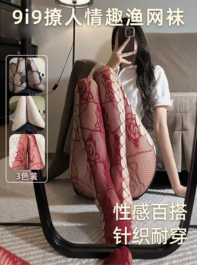 9I9 stockings sultry fishnet stockings black side grid retro rose sexy hollow pantyhose 3 pieces S27