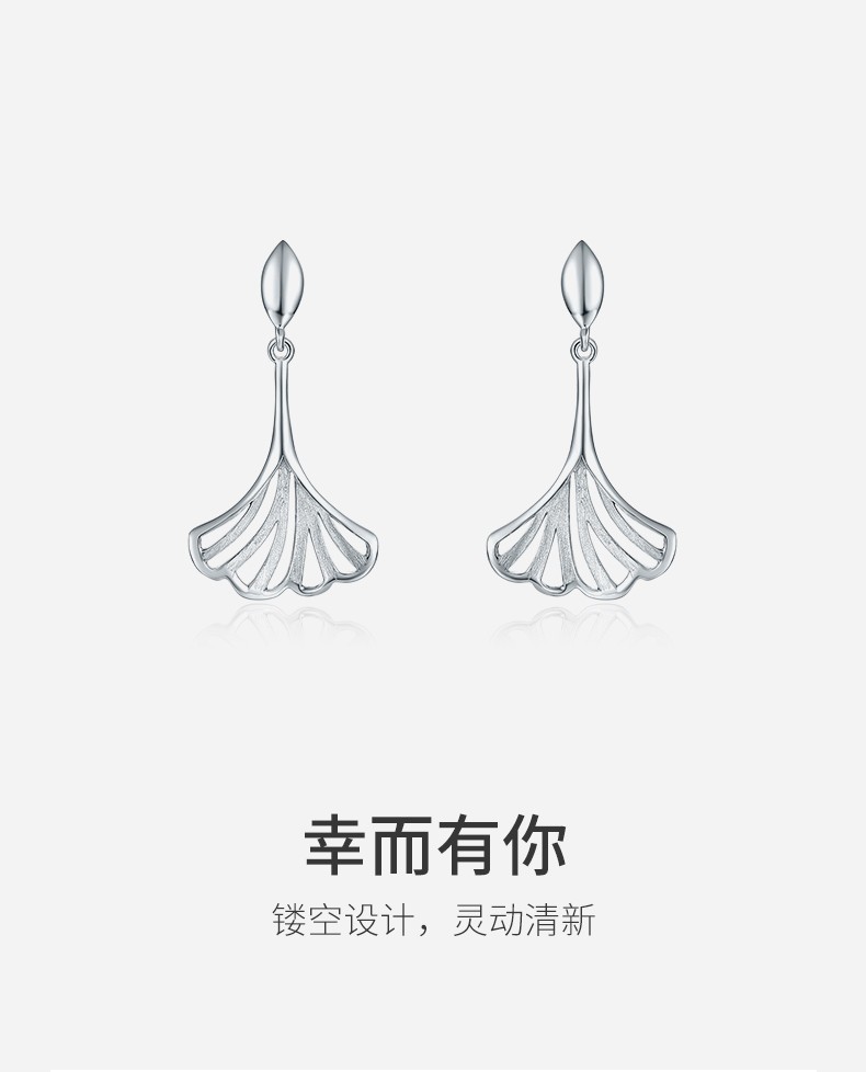 ZLF platinum earrings for women PT950 platinum ginkgo lucky to have you earrings 2.20g